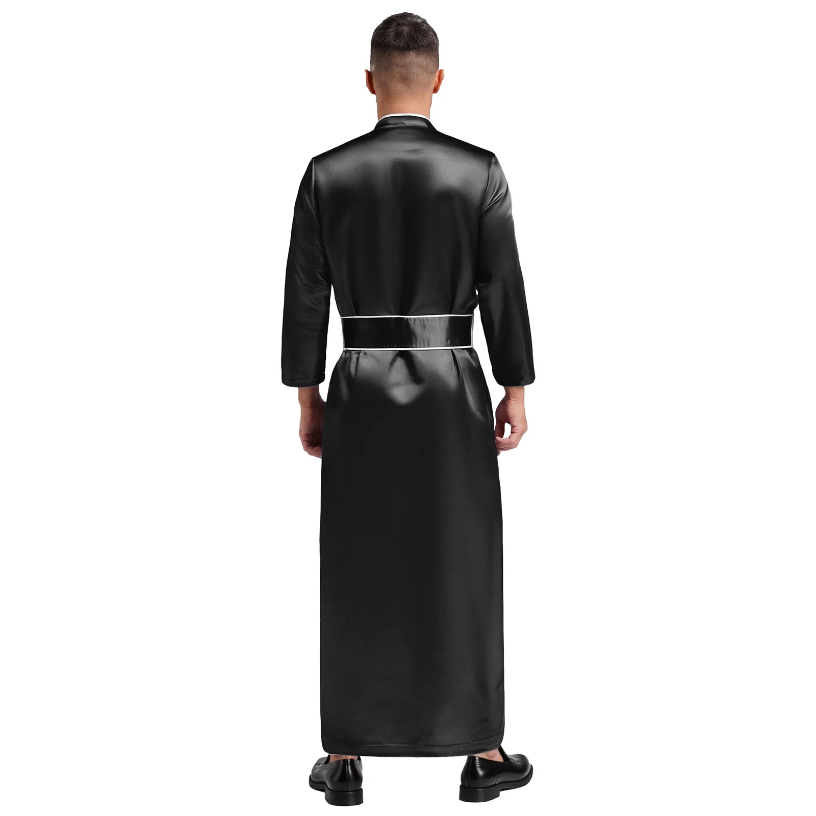 Men Priest Clergy Church Minister Robe Thobe Long Sleeve Vestments Catholic Priest Dress Halloween Party Cosplay Pastor Costumes