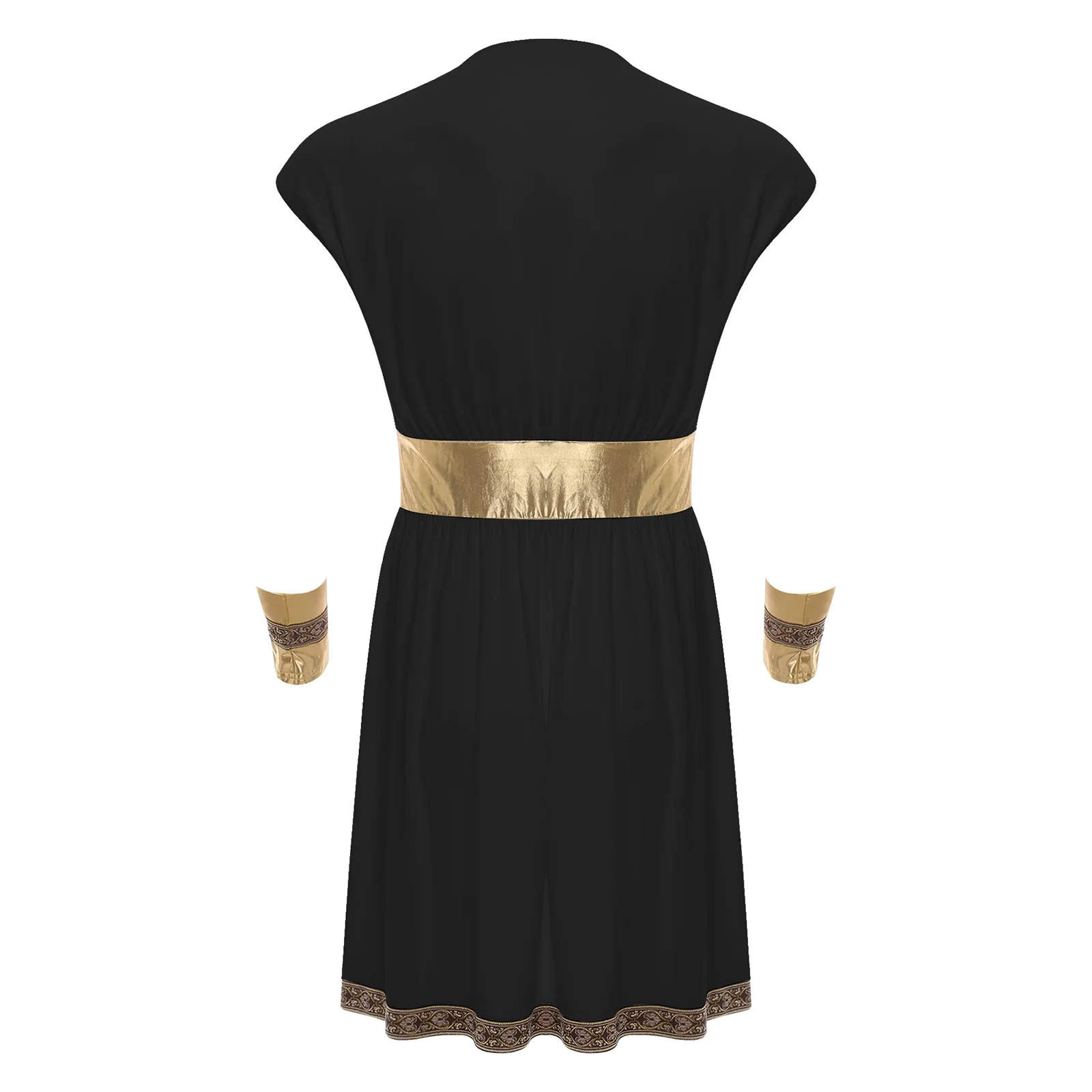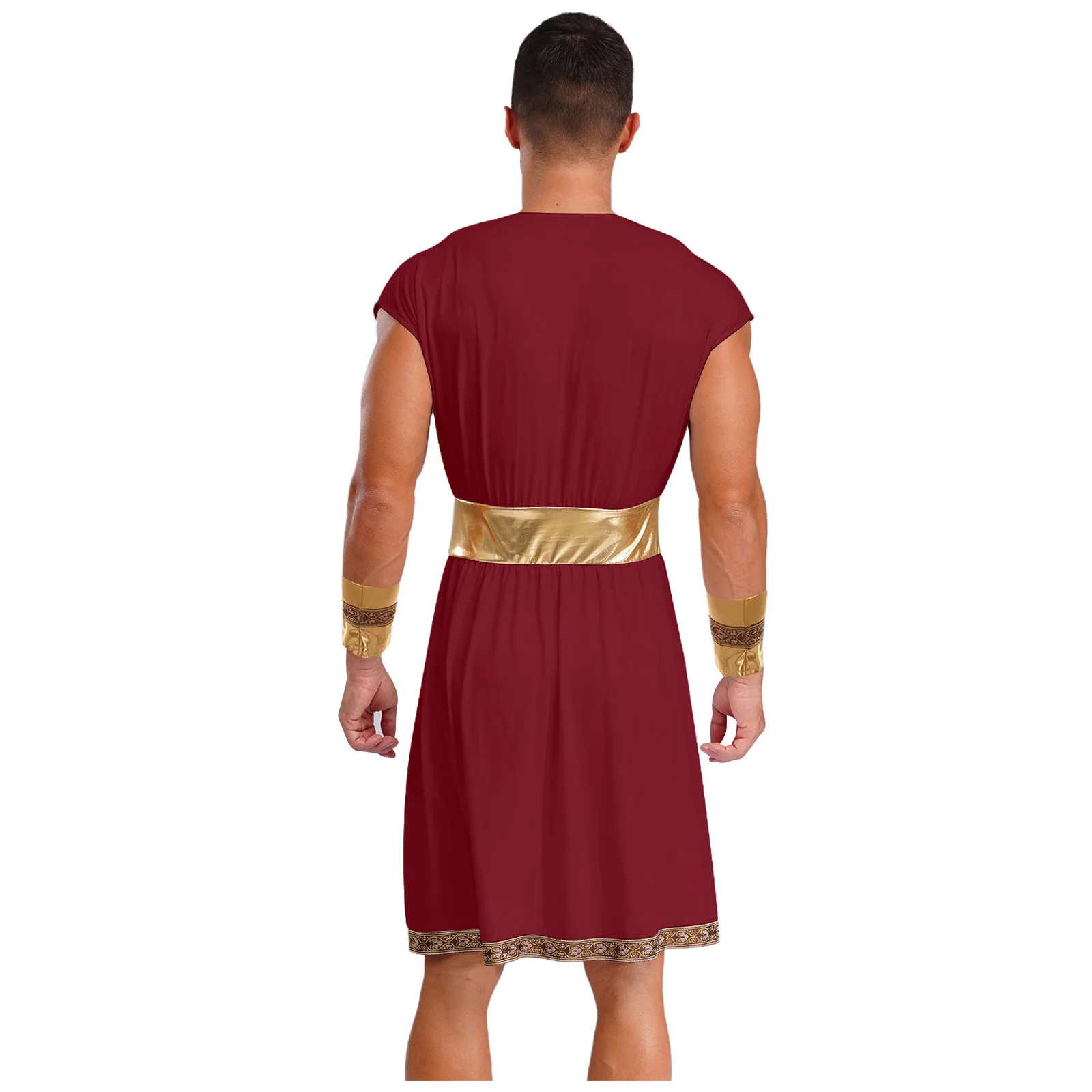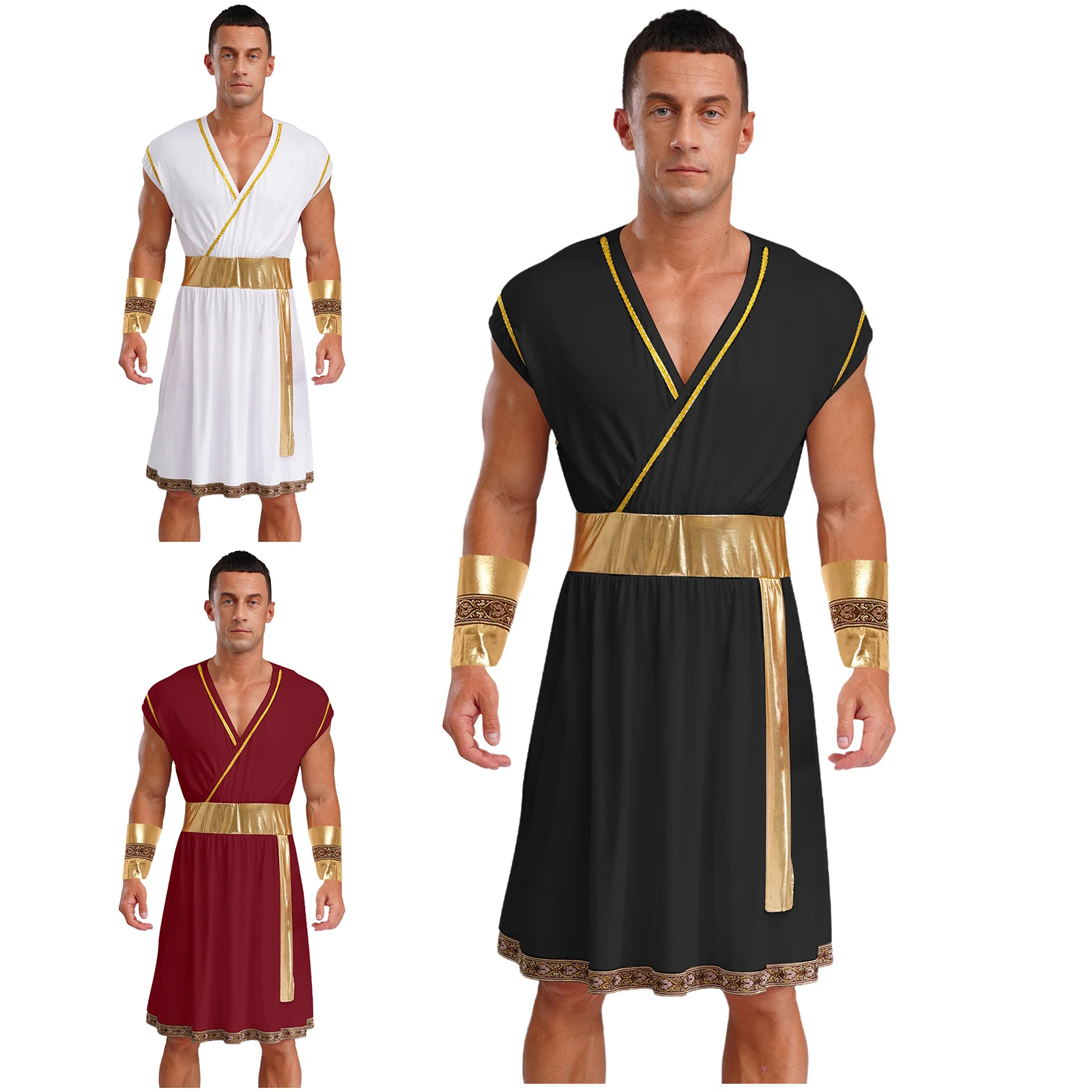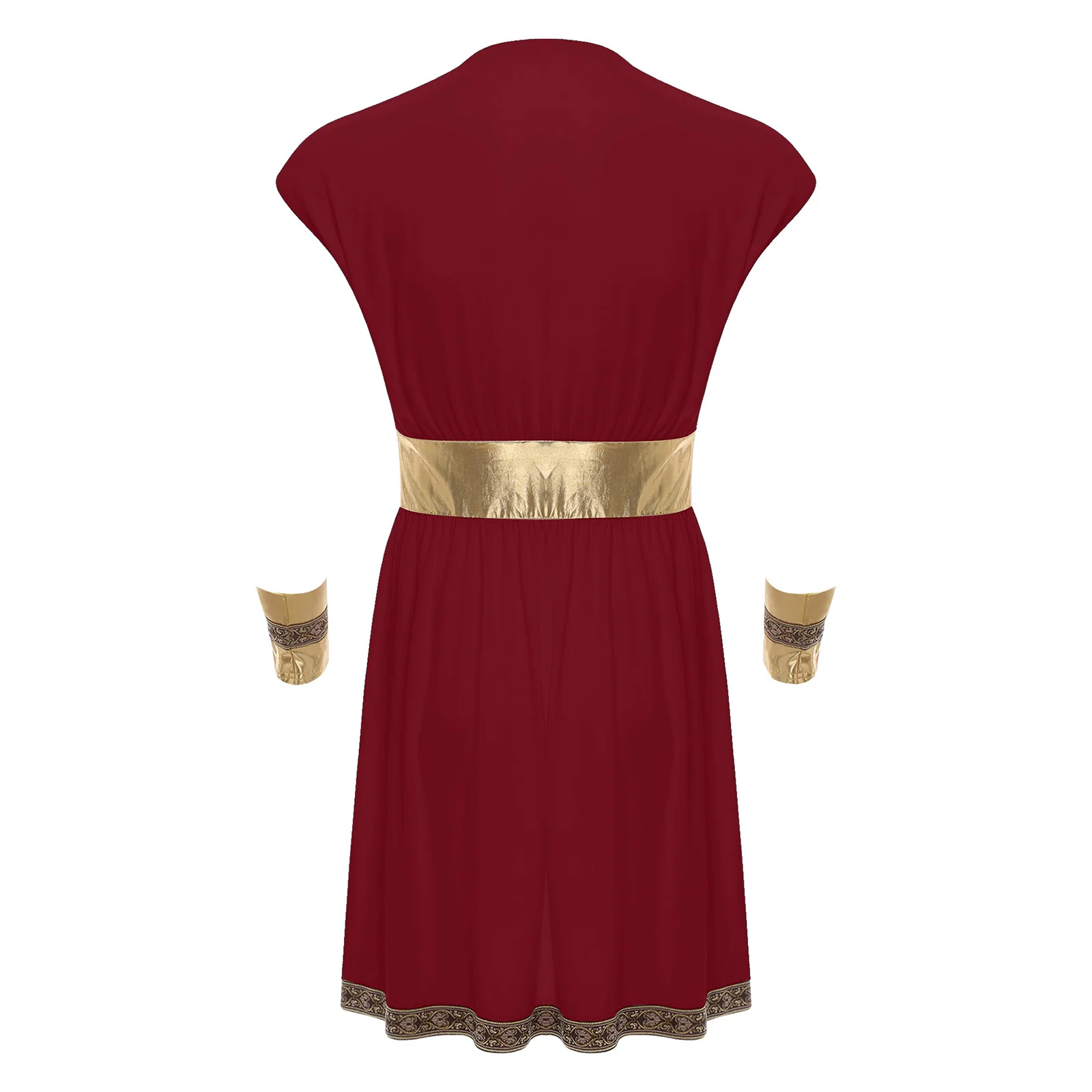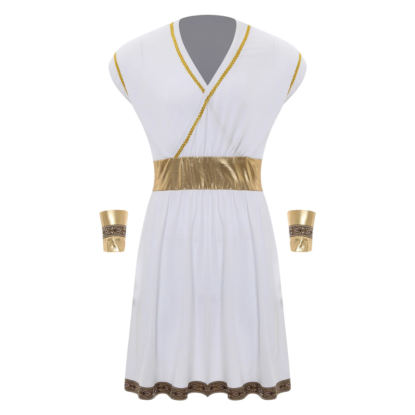 Mens Ancient Greek Roman King Prince Cosplay Performance Costume V Neck Golden Braided Trimming Metallic Dress Robe with Cuffs