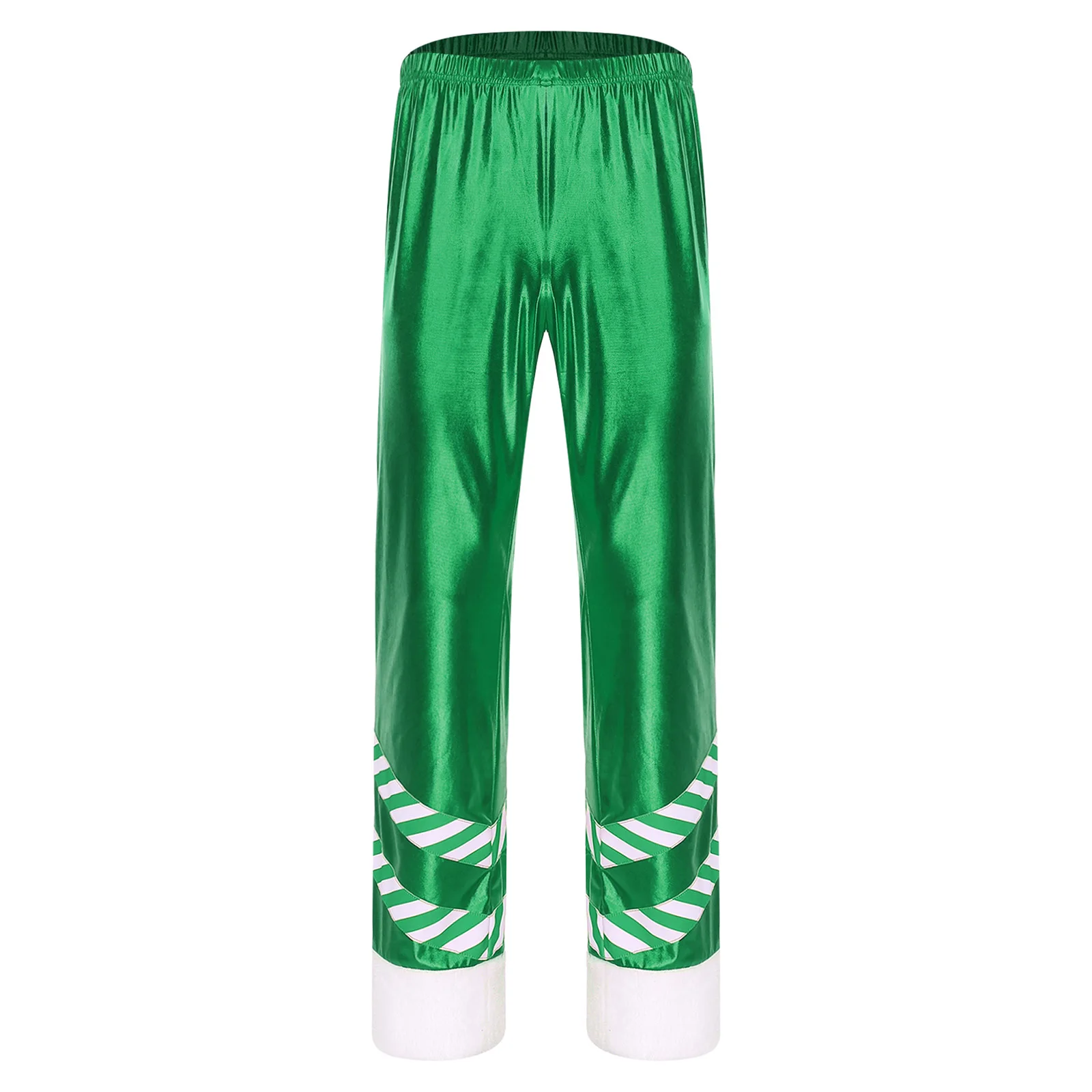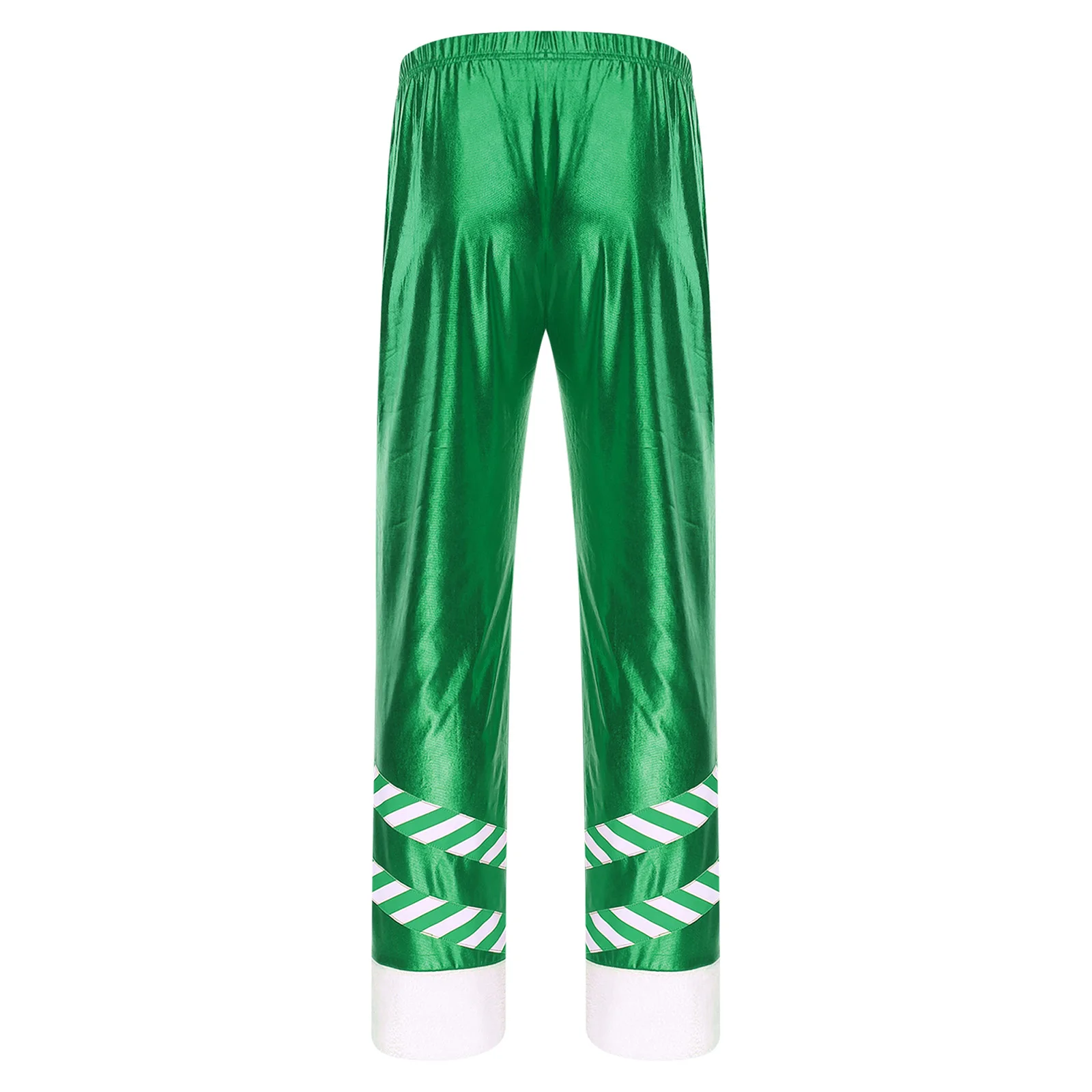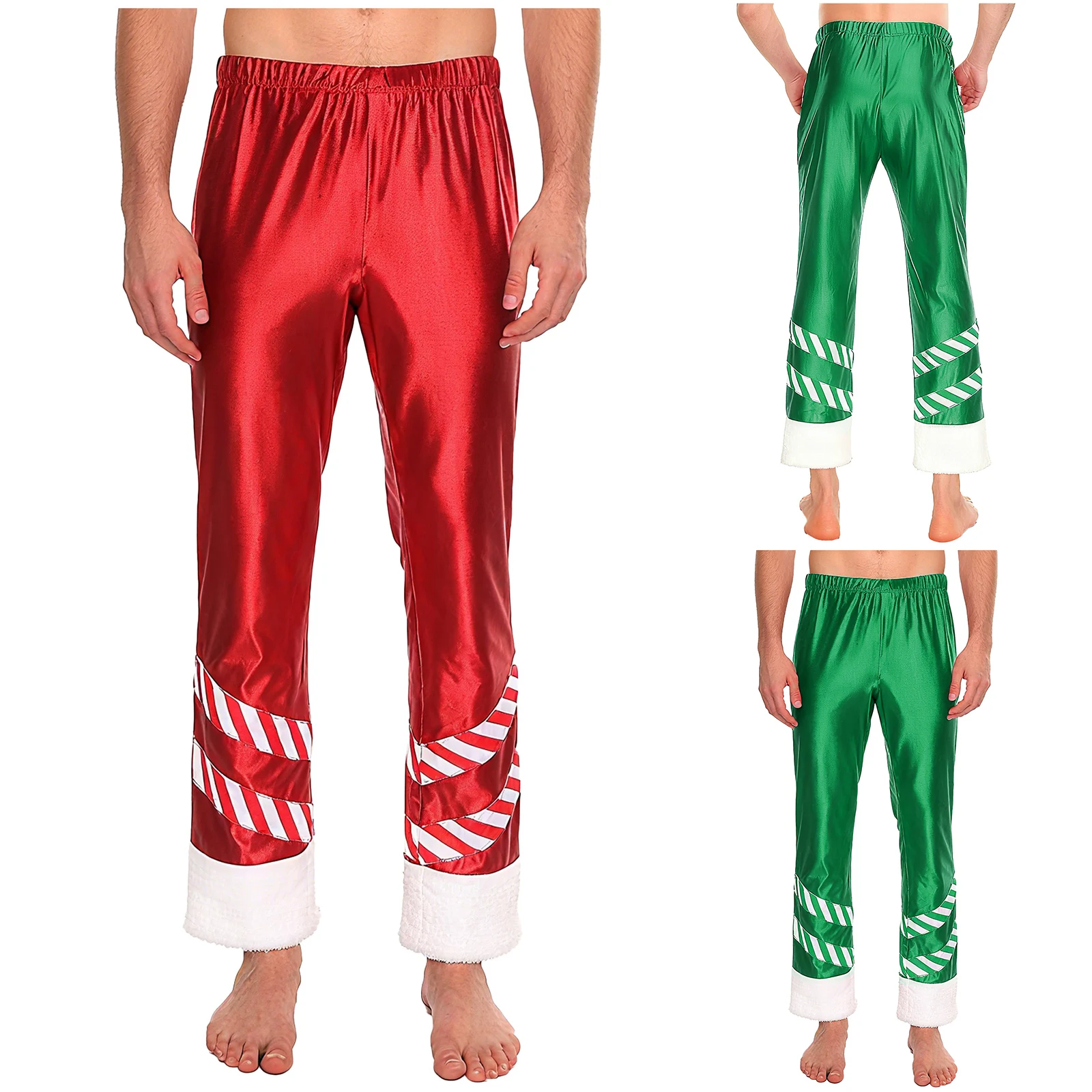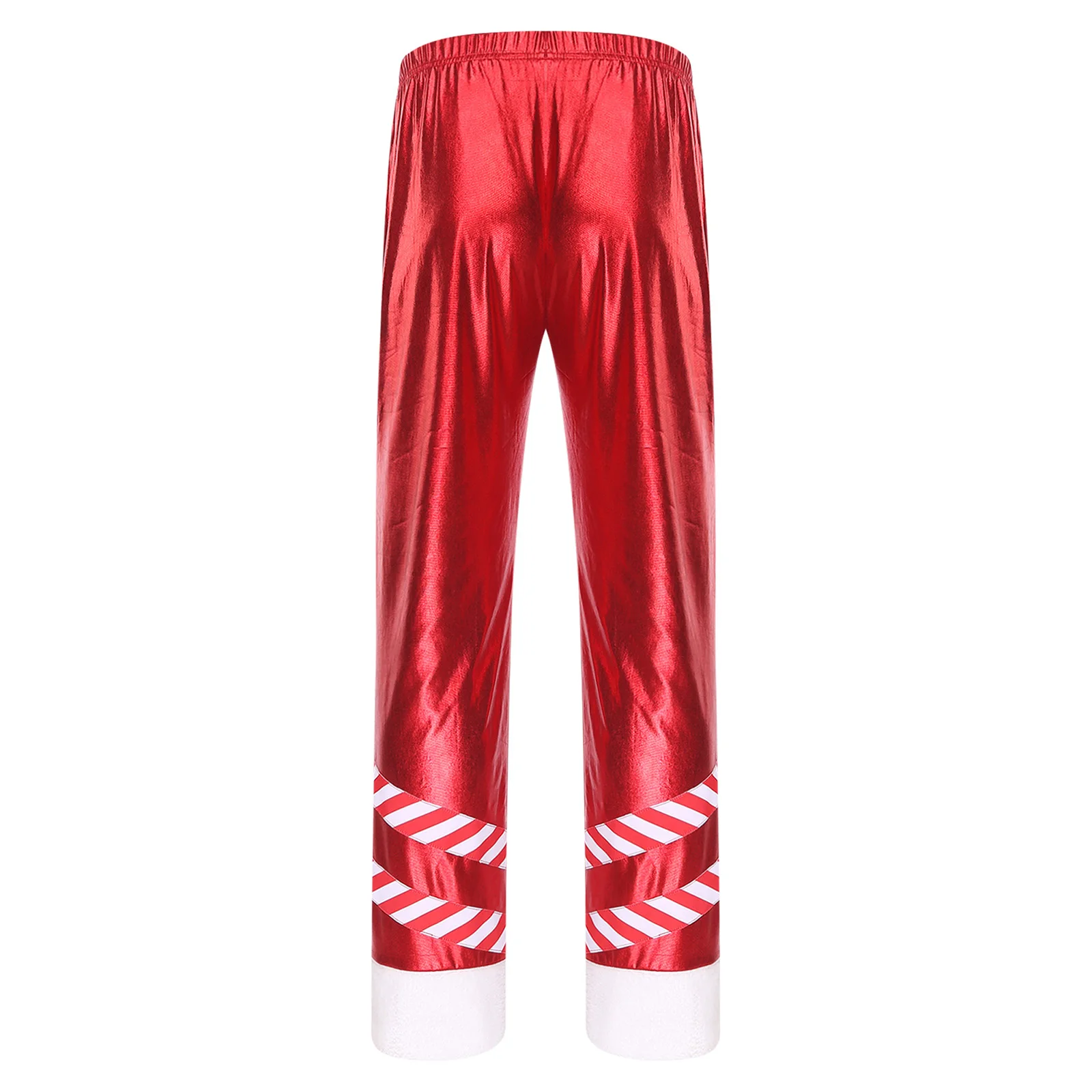 Mens Christmas Santa Claus Cosplay Party Costume Metallic Shiny Wide Red Leg Pants Striped Plush Leg Openings Loose Long Pants