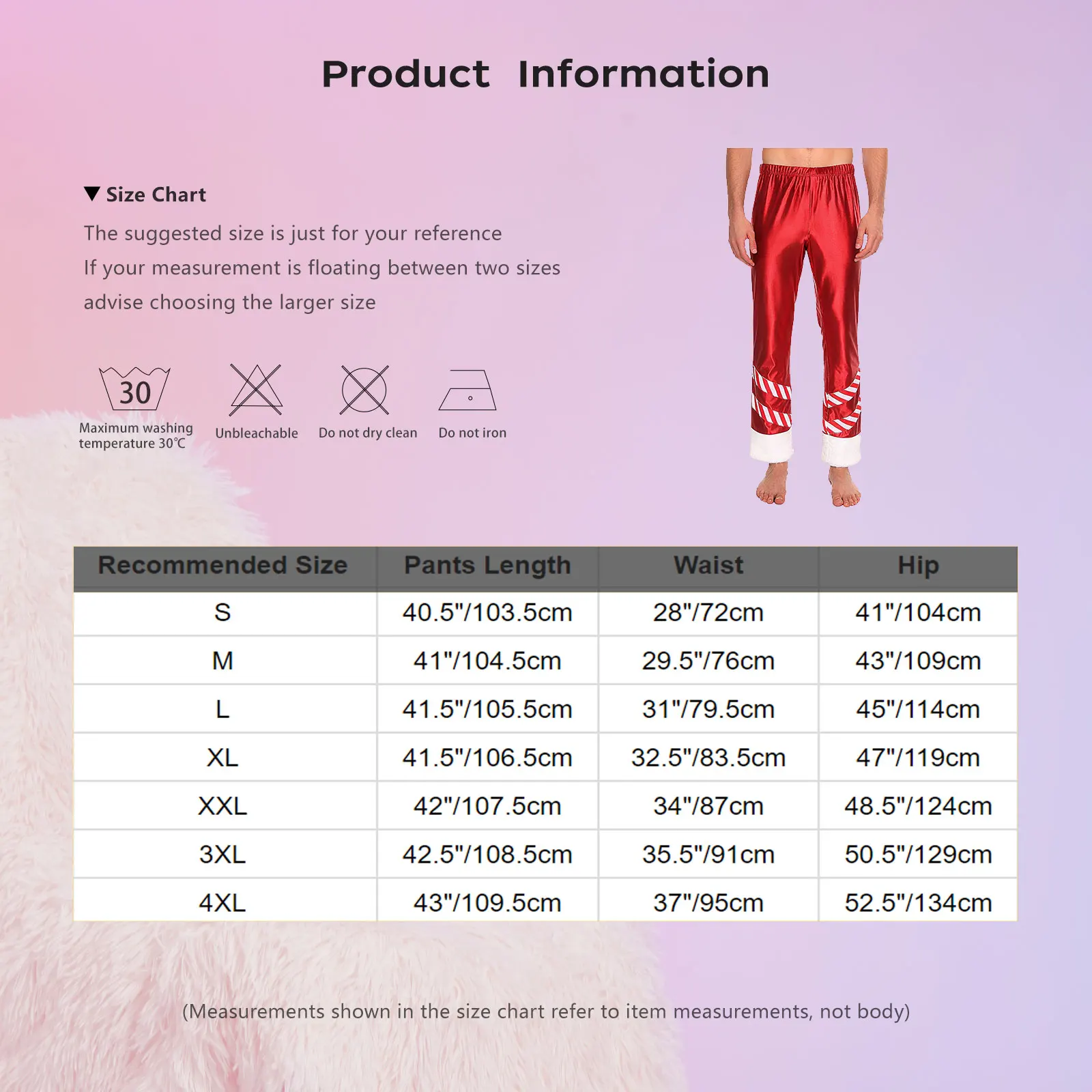 Size Chart: The suggested size is just for your reference. If your measurement is floating between two sizes, advise choosing the larger size. (Measurements shown in the size chart refer to item measurements, not body)