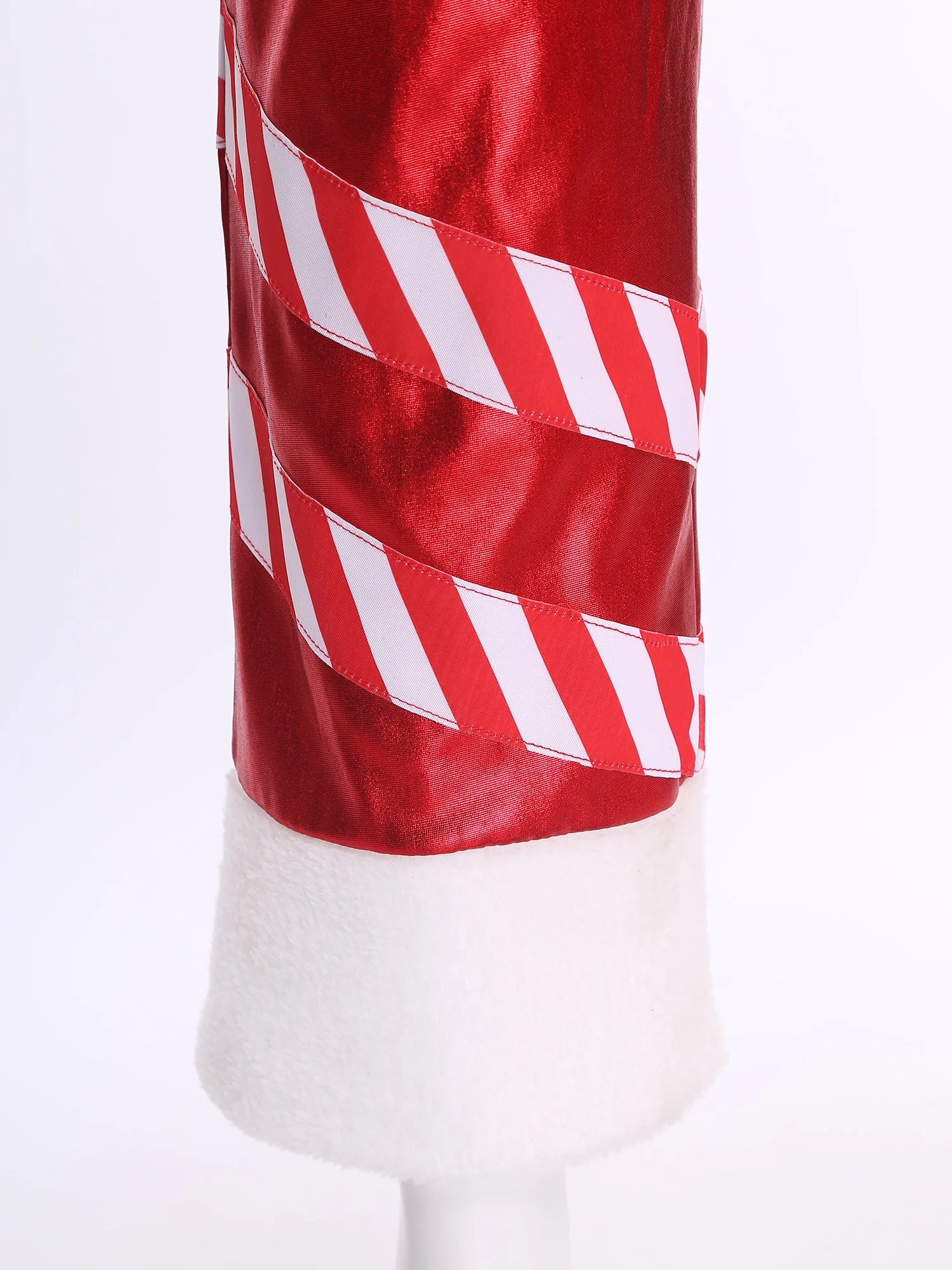 The striped patchwork and plush leg openings add unique details, making these pants perfect for Santa cosplay parties, Christmas events, or other festive gatherings.