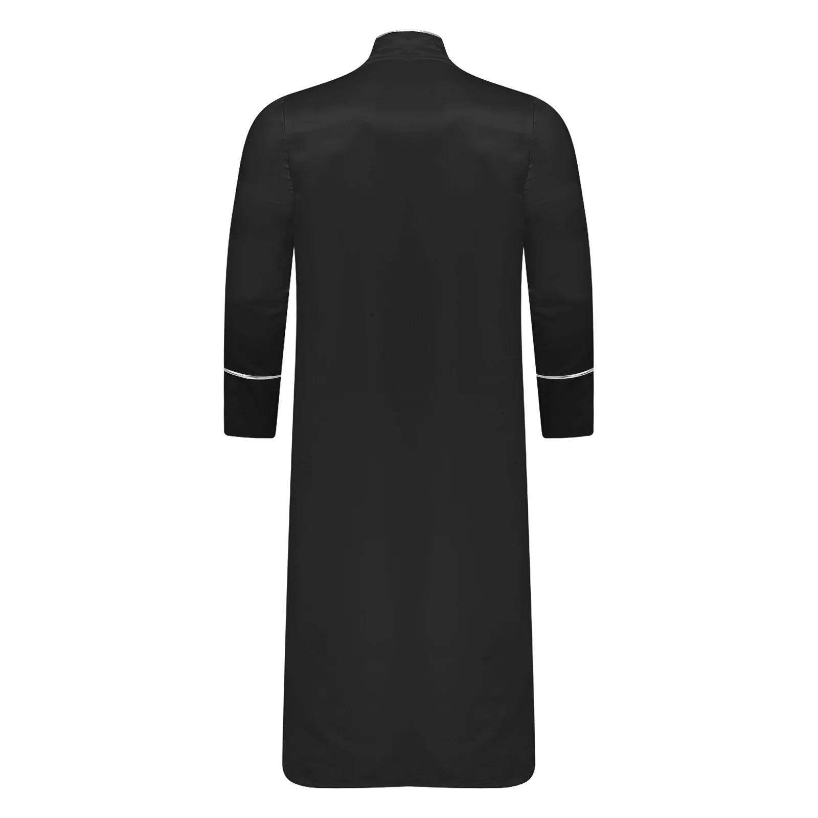 Mens Church Priest Clergy Robe Halloween Cosplay Costume Long Sleeve with Cross Embroidery Metallic Shiny Trim Cassock Jackets