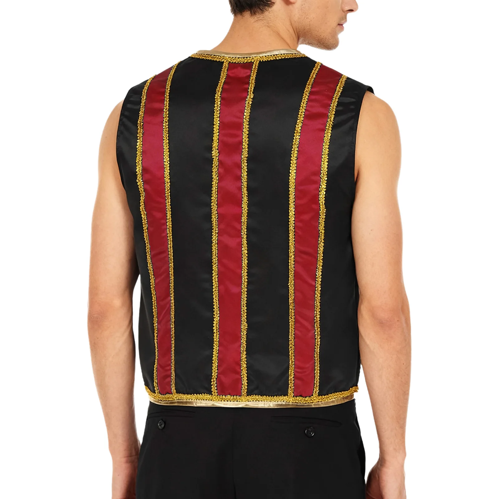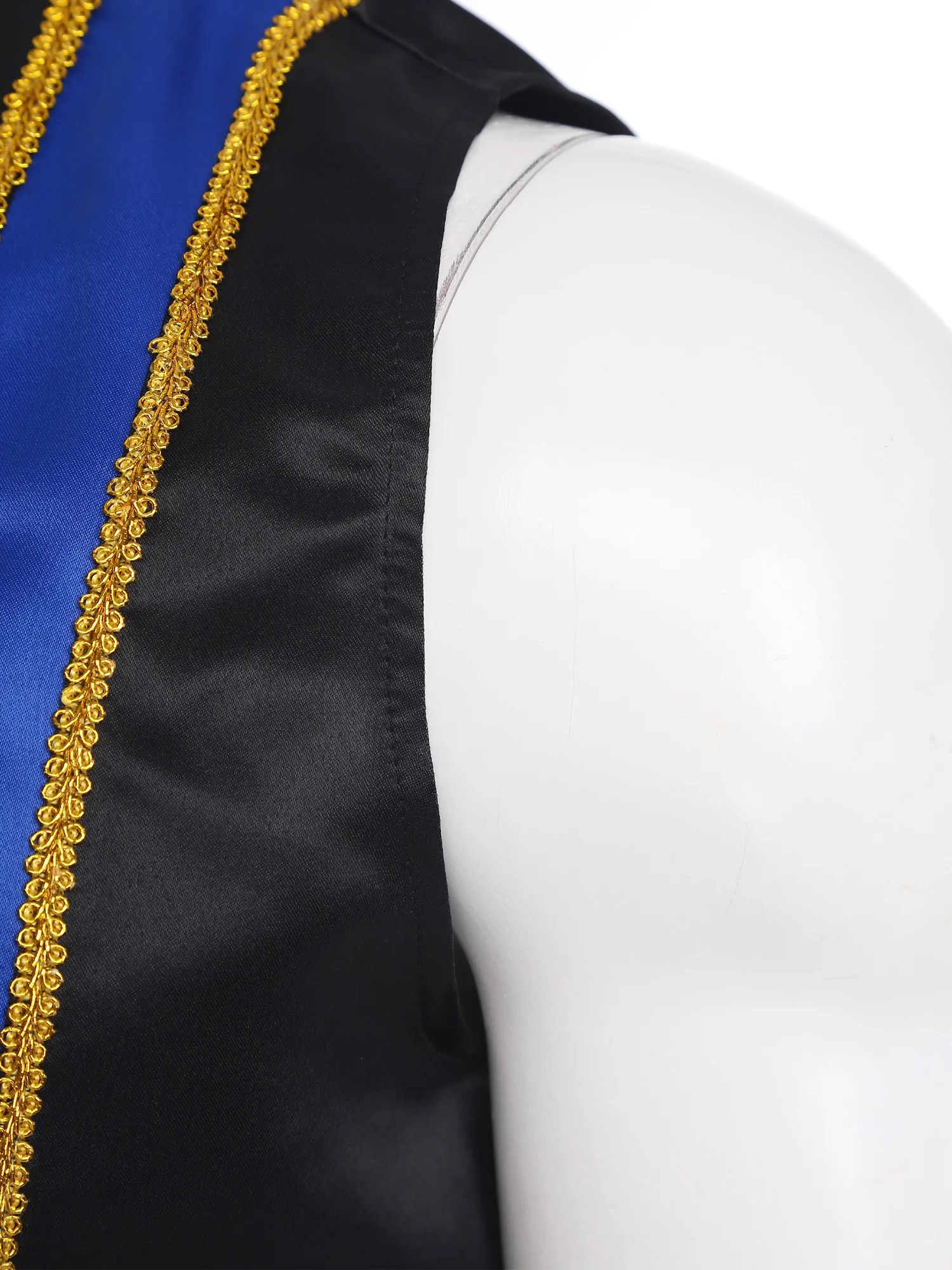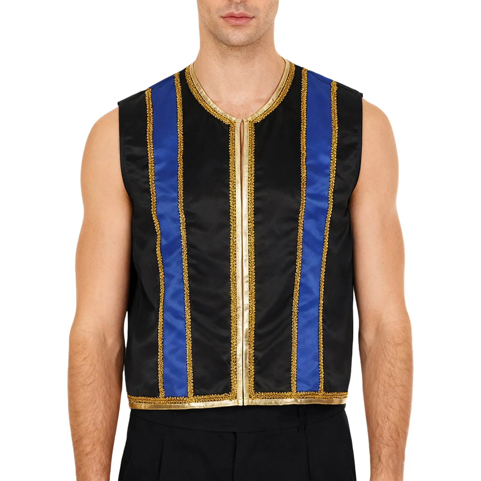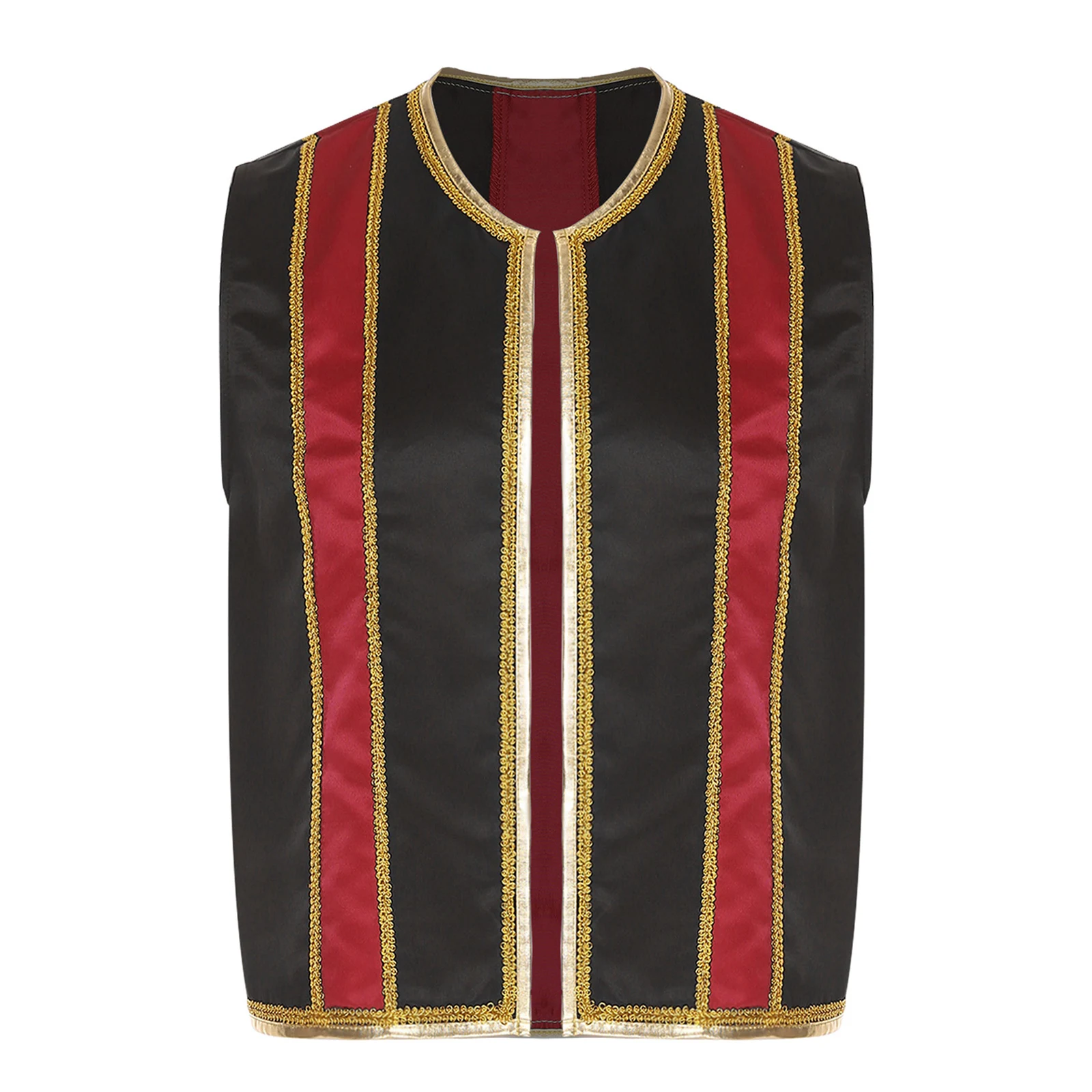 Mens Spanish Matador Arabian Prince Steampunk Vest Tops Cosplay Theme Party Costume Sleeveless Open Front Gold Trim Waistcoat