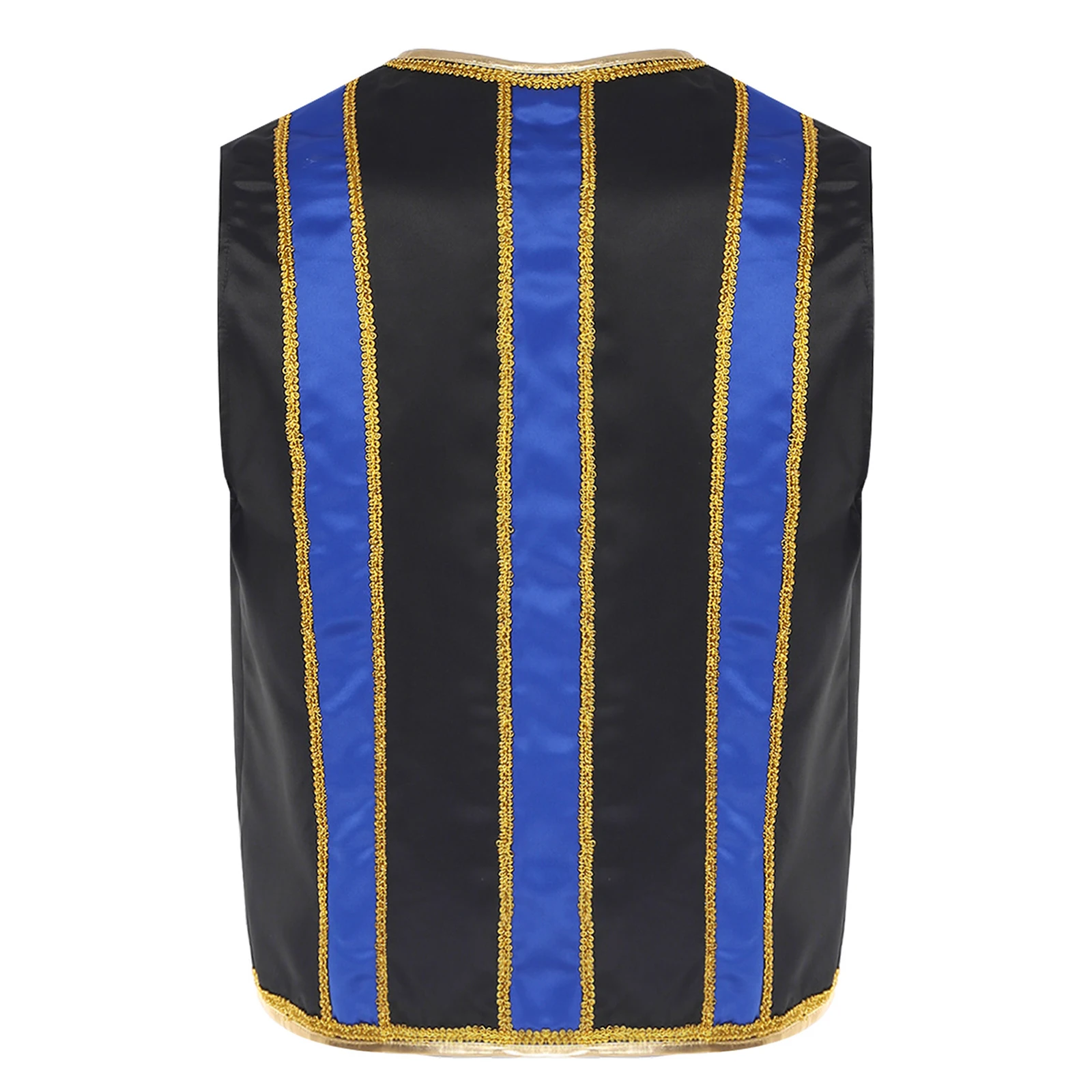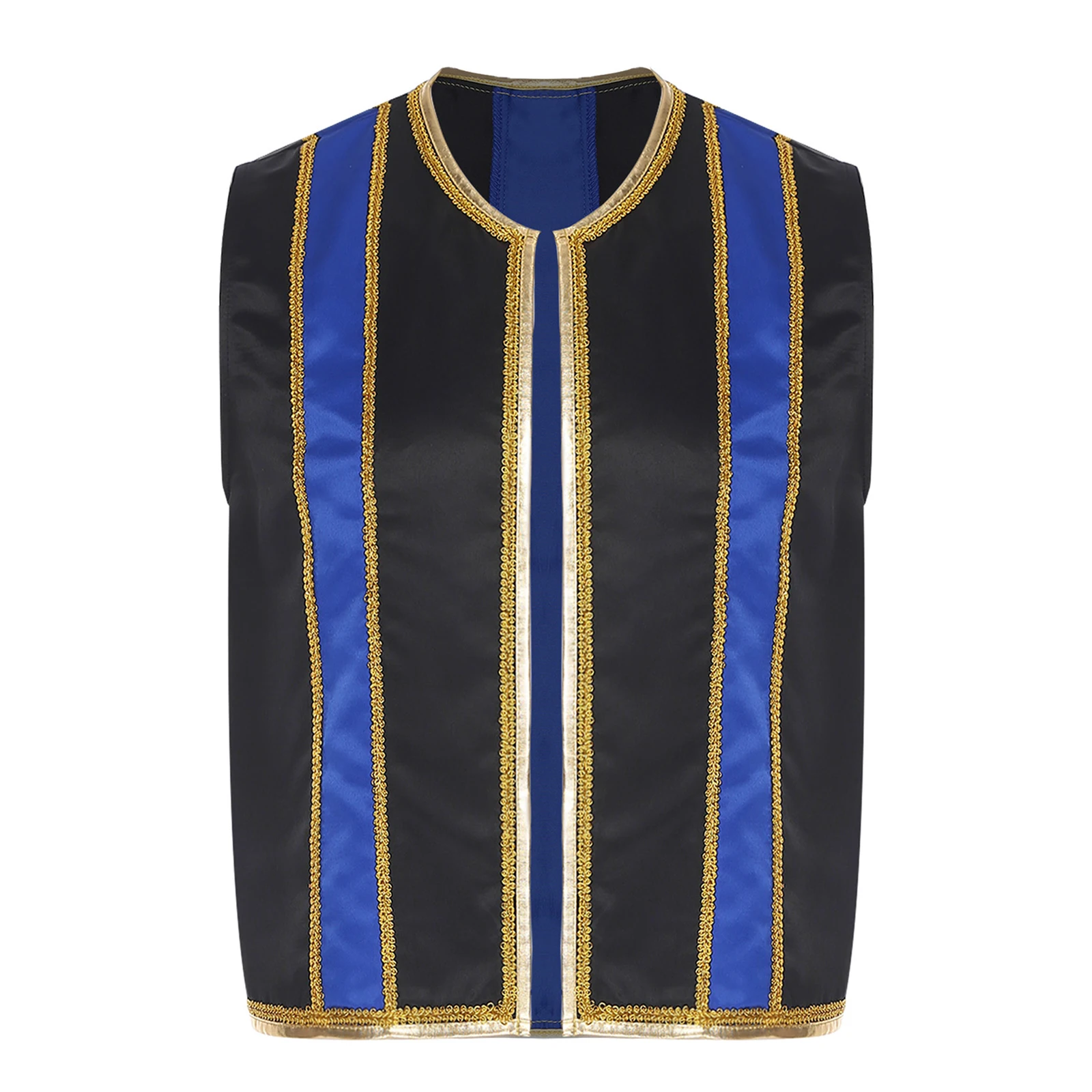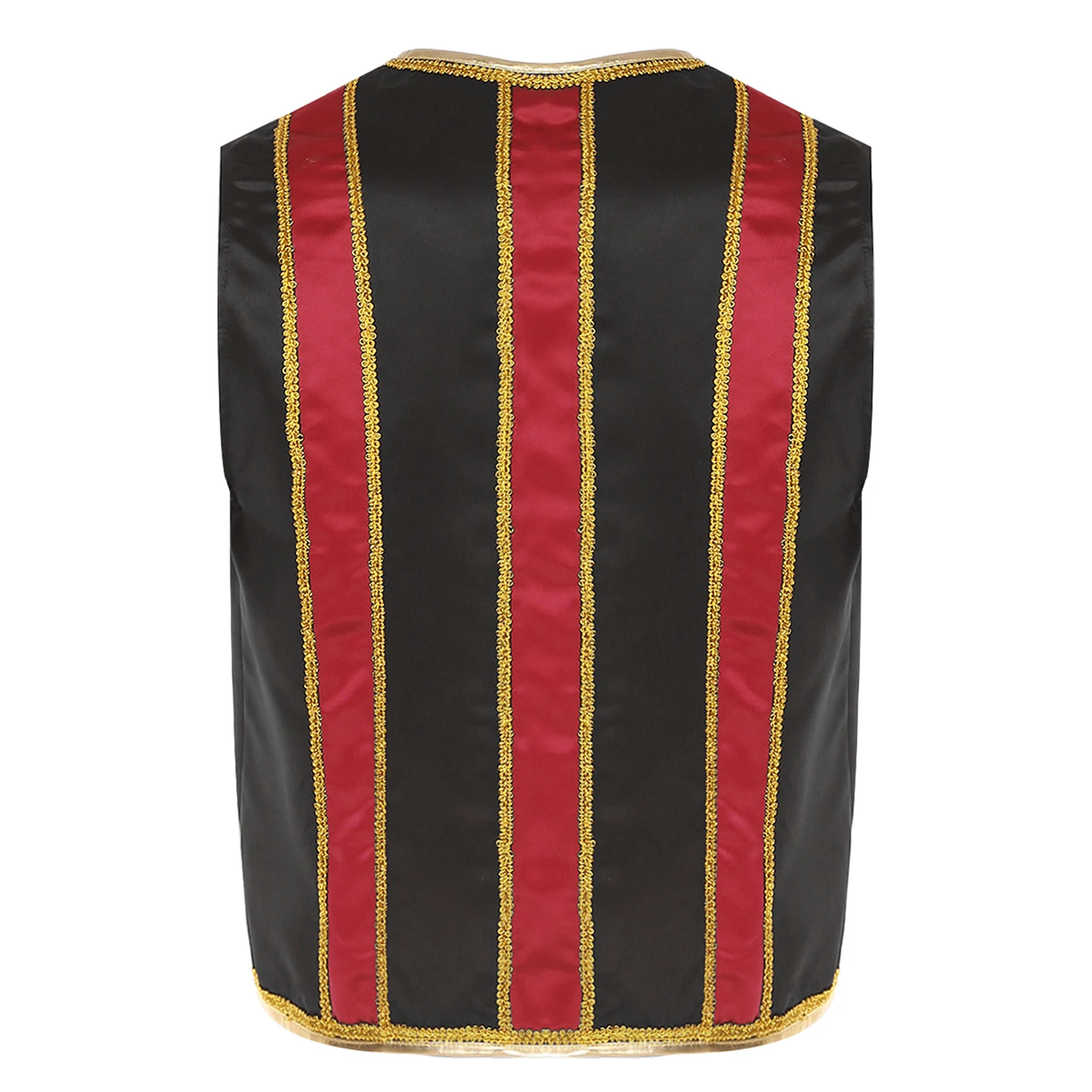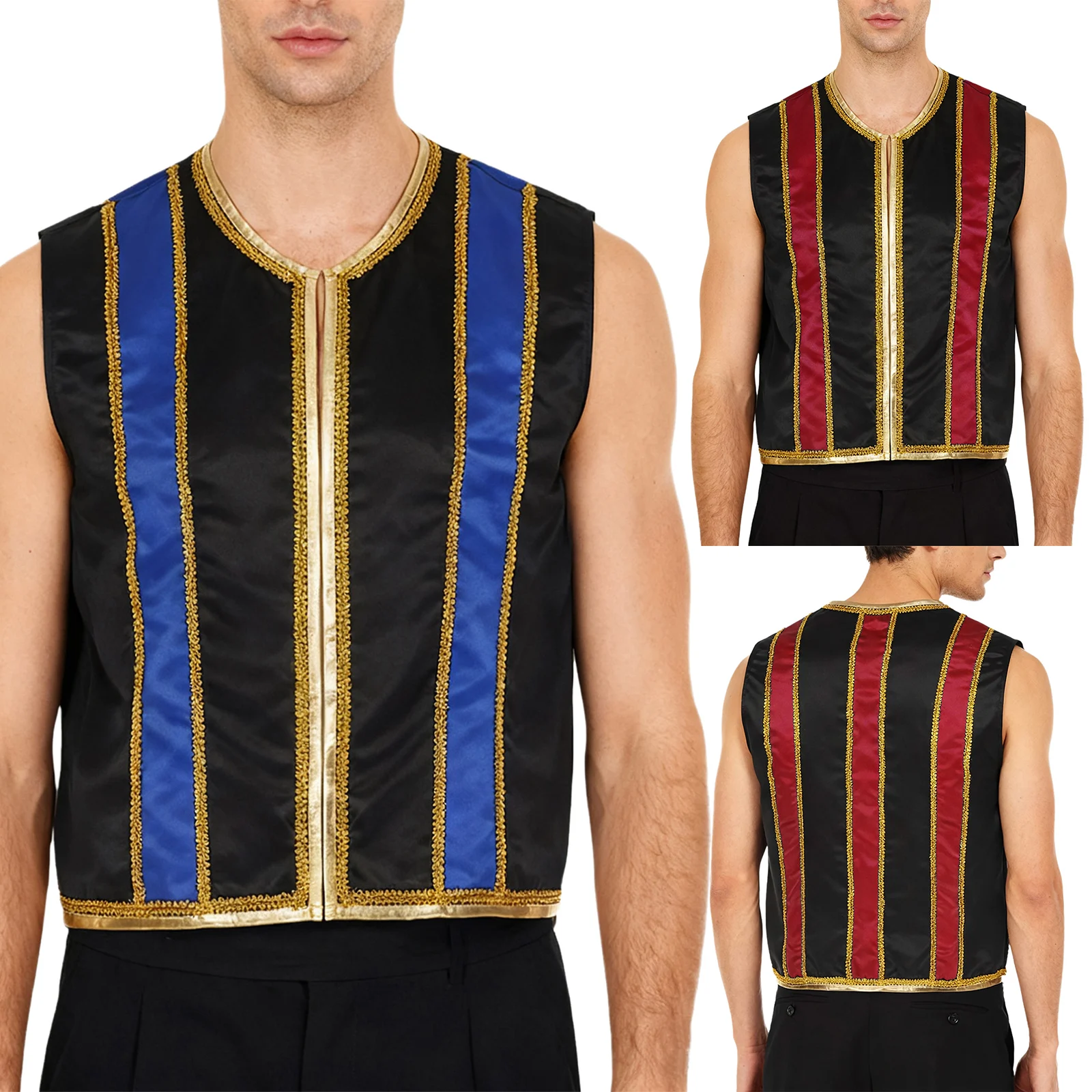 Mens Spanish Matador Arabian Prince Steampunk Vest Tops Cosplay Theme Party Costume Sleeveless Open Front Gold Trim Waistcoat
