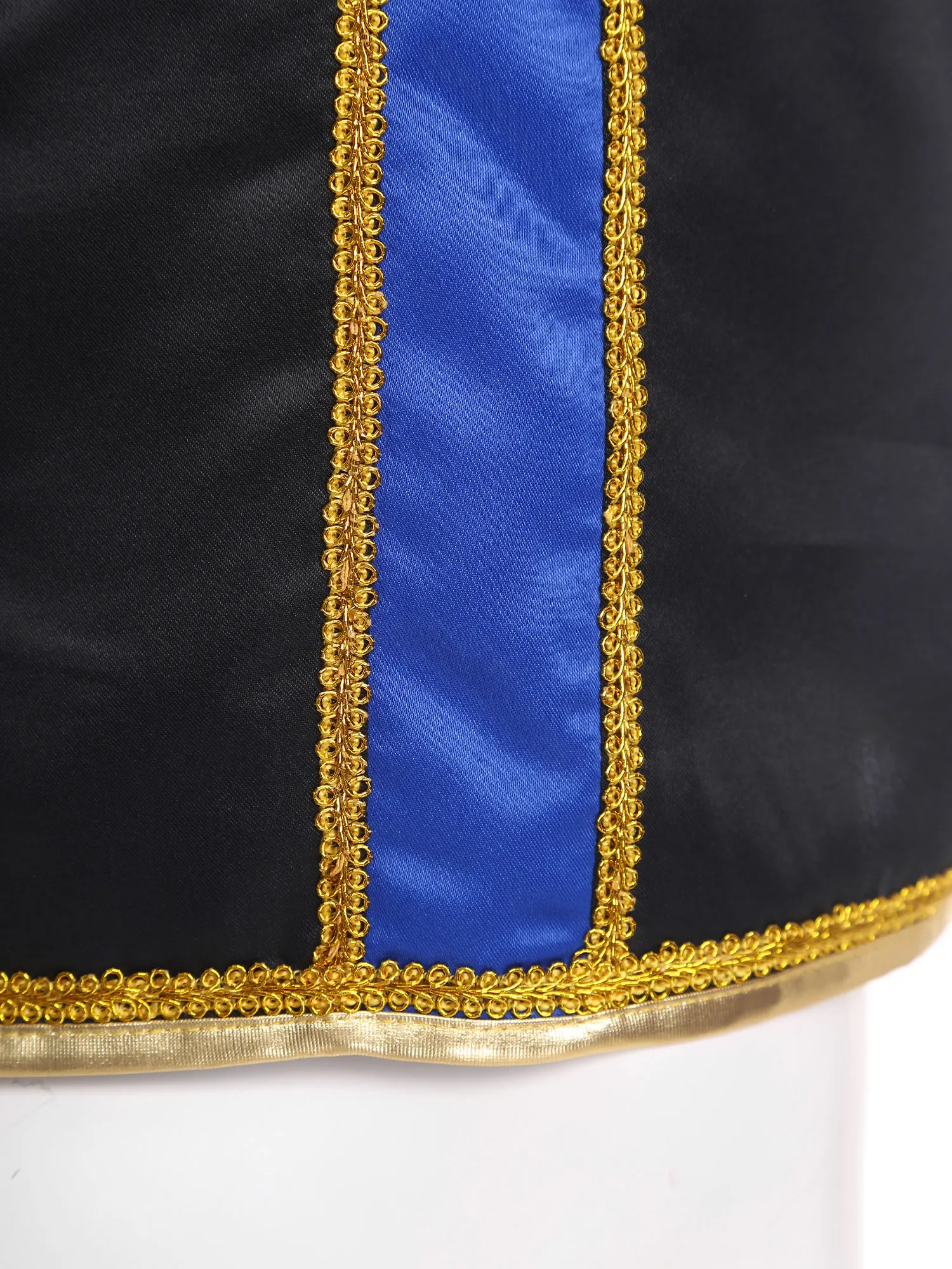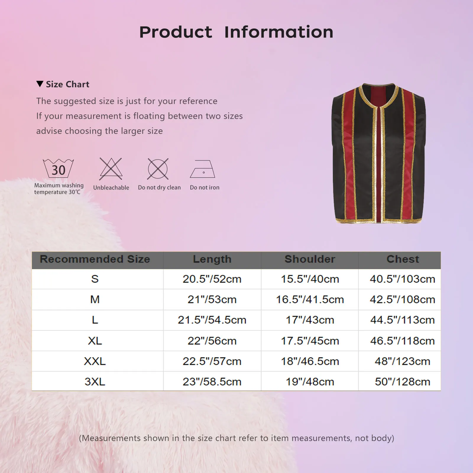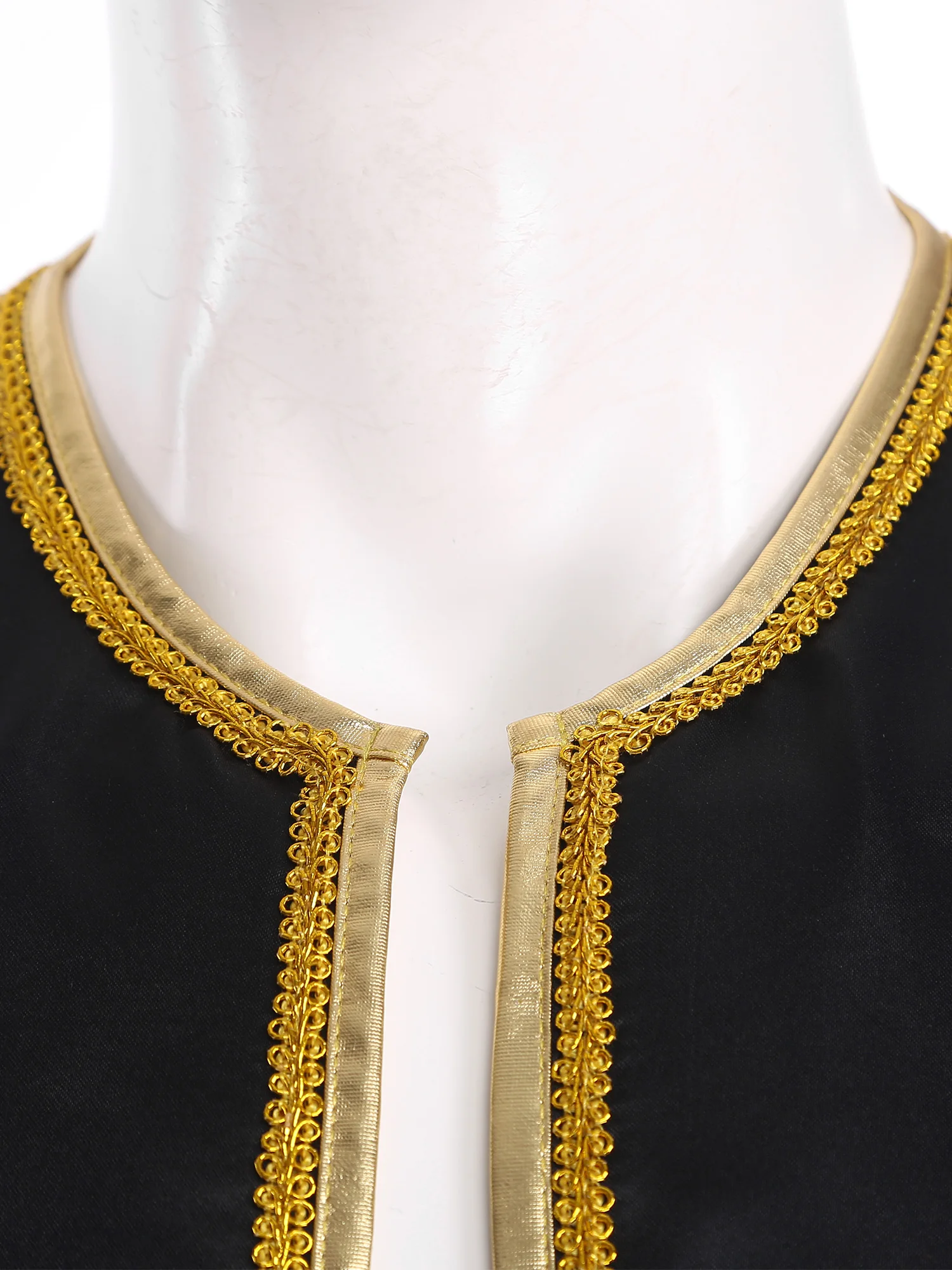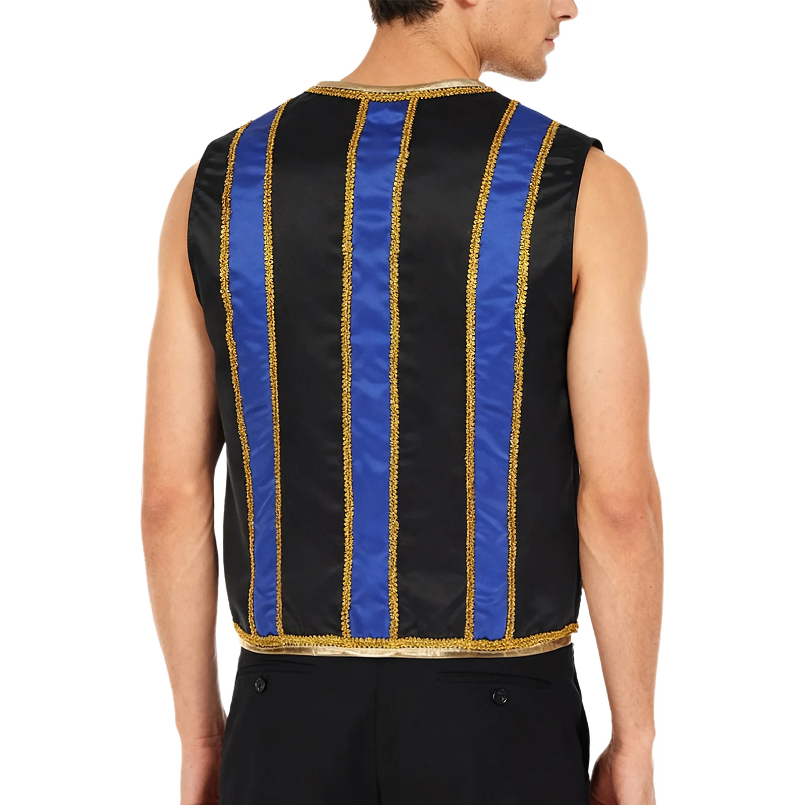Mens Spanish Matador Arabian Prince Steampunk Vest Tops Cosplay Theme Party Costume Sleeveless Open Front Gold Trim Waistcoat