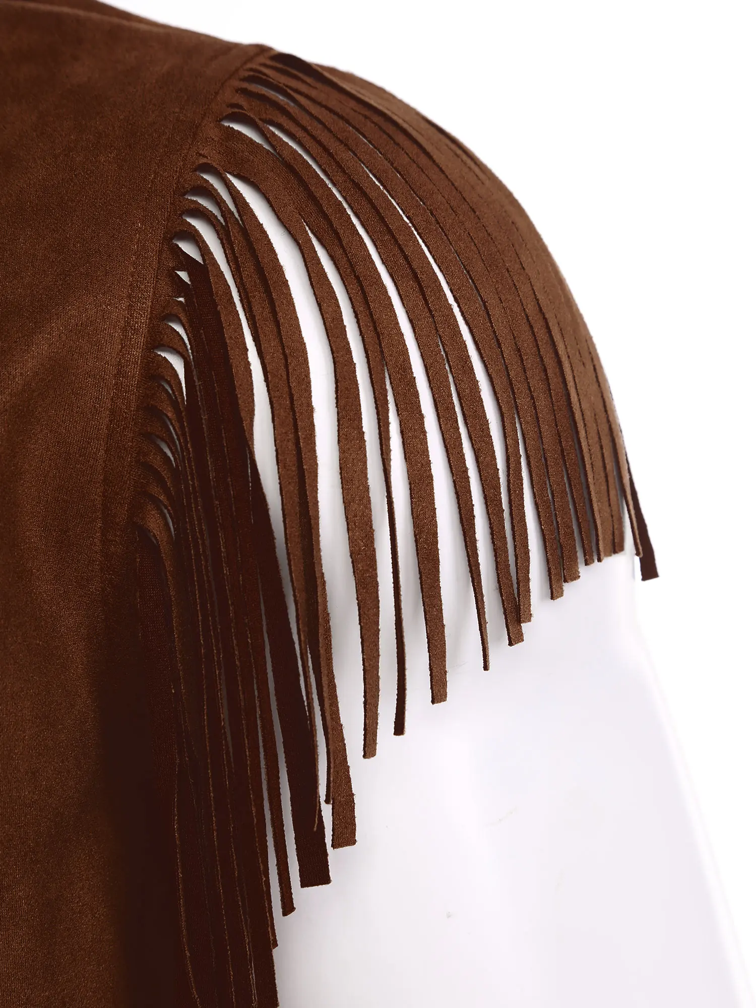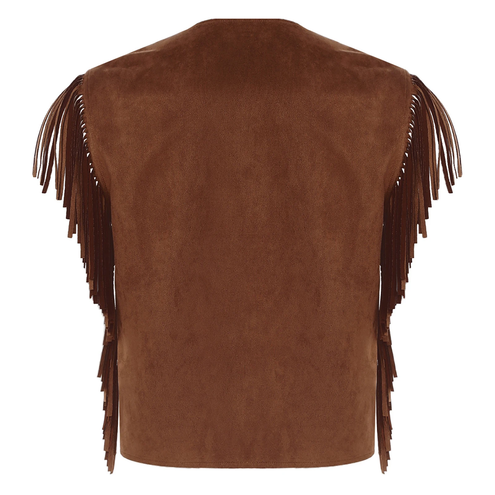 Tassels adorn the vest, adding a playful and dynamic element that catches the eye and enhances the overall Western cowboy aesthetic.