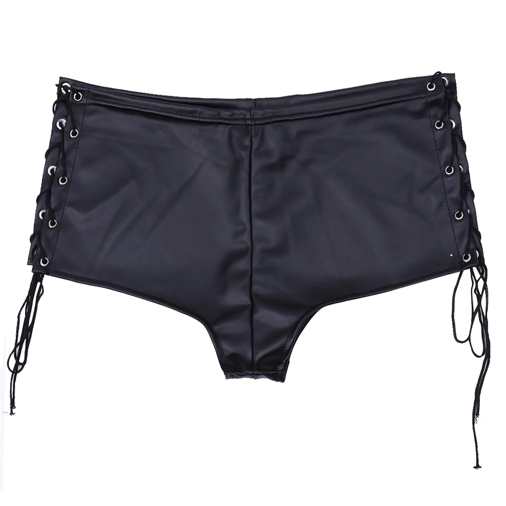 Hot Fashion Womens Patent Leather Sexy Panties Lace Up Bandage Performance Hot Shorts Rave Party Clubwear for Pole Dancing