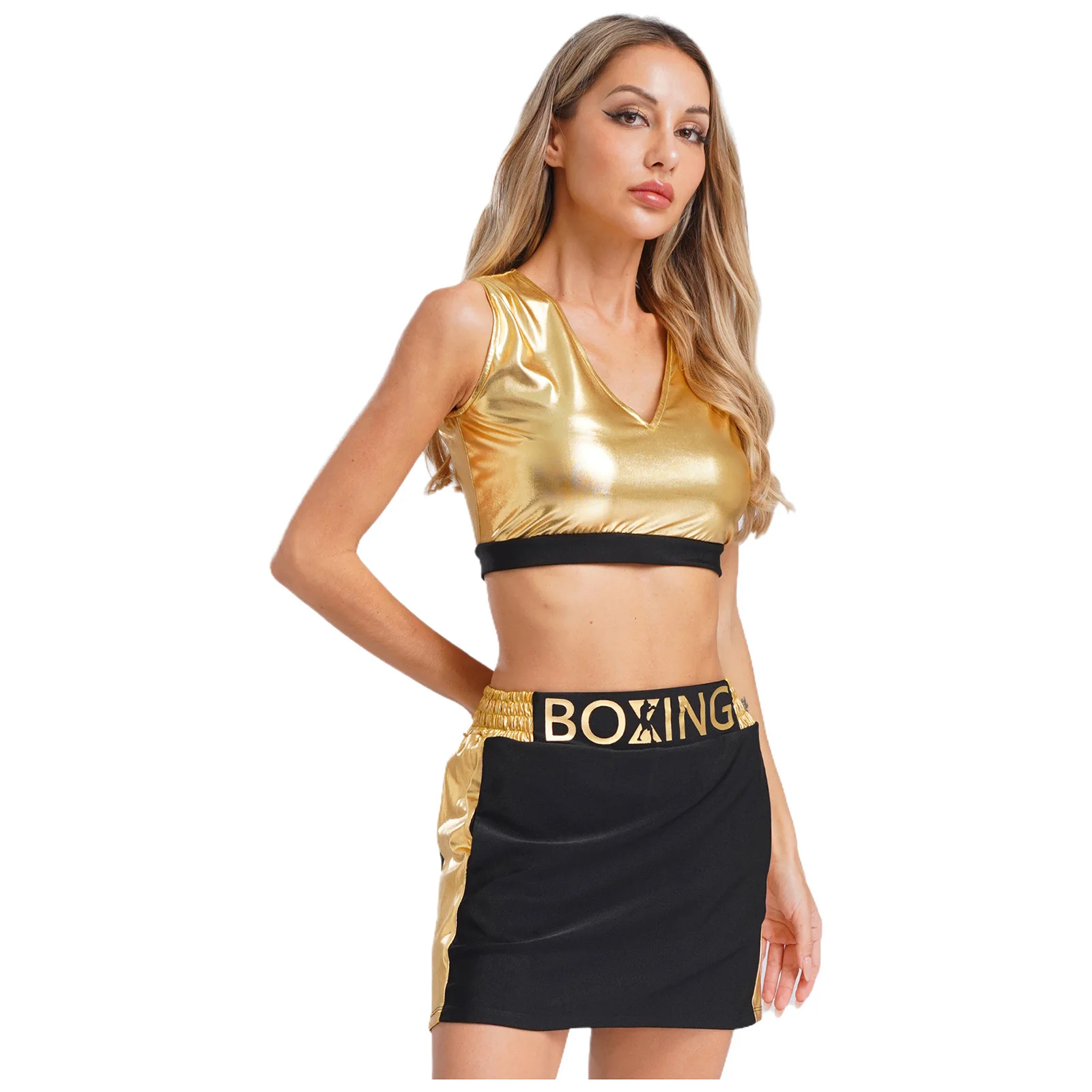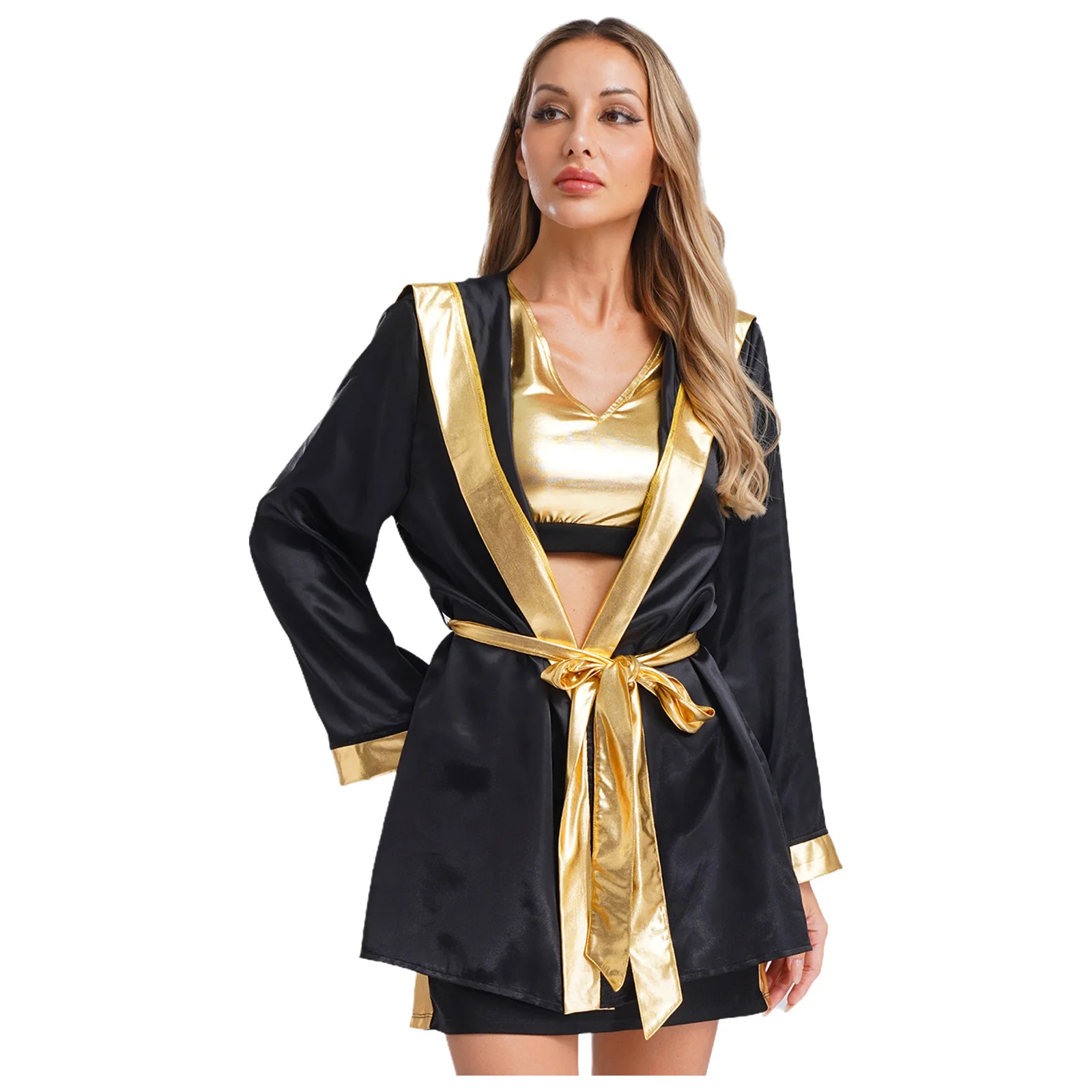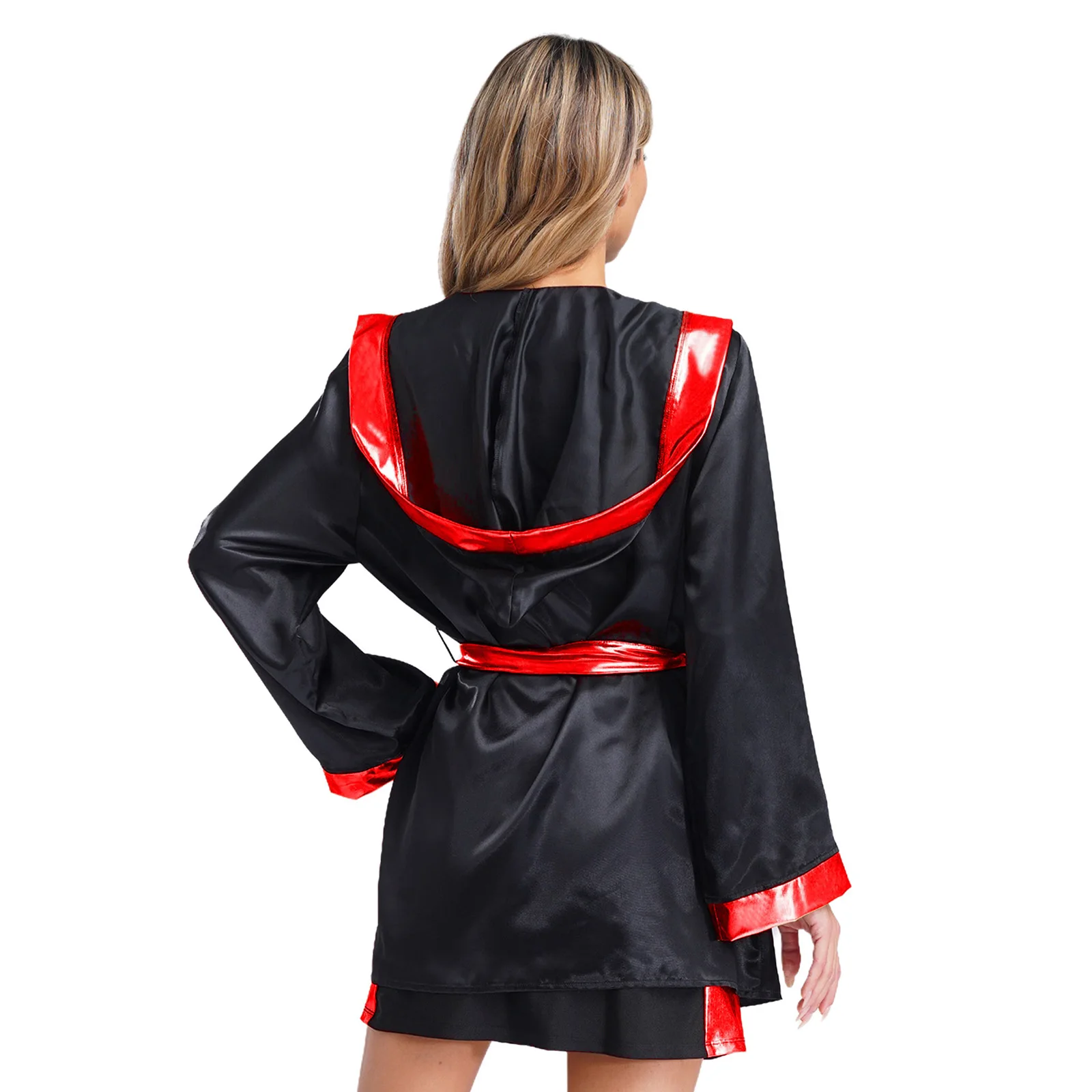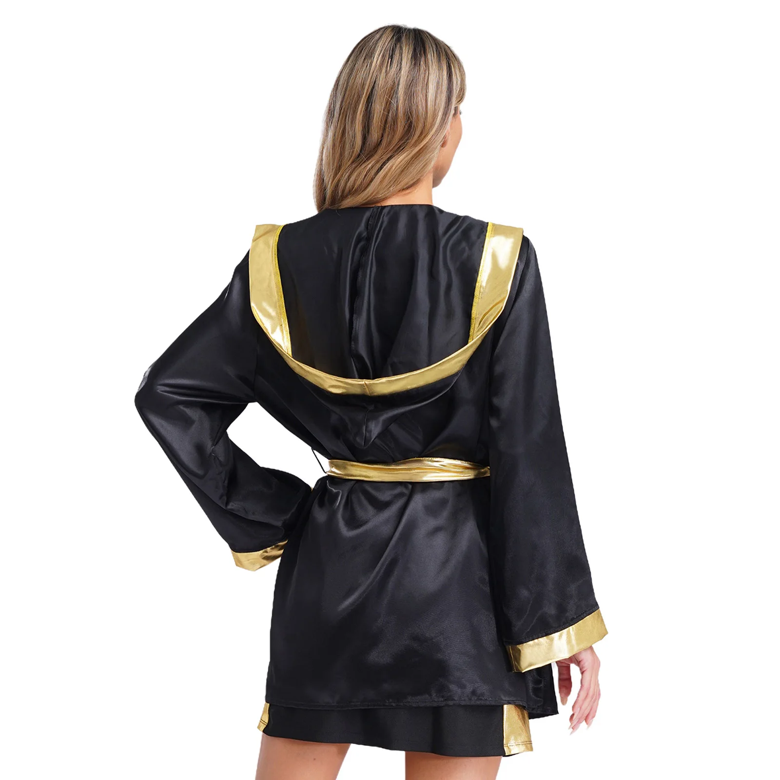 4Pcs Women Boxing Training Clothes Halloween Cosplay Costume Tank Tops with Skirt Hooded Coverup Robe And Belt Set Boxer Outfit