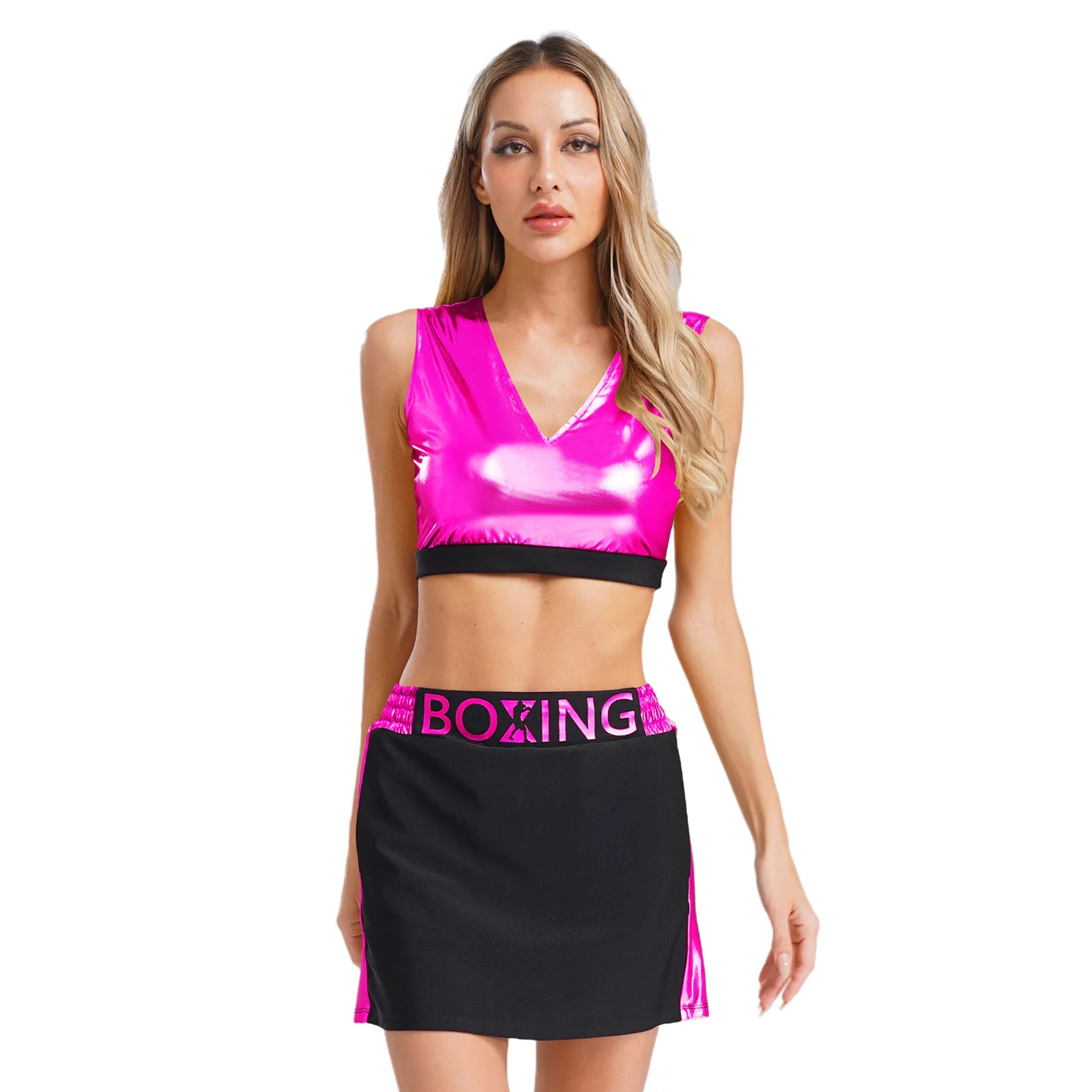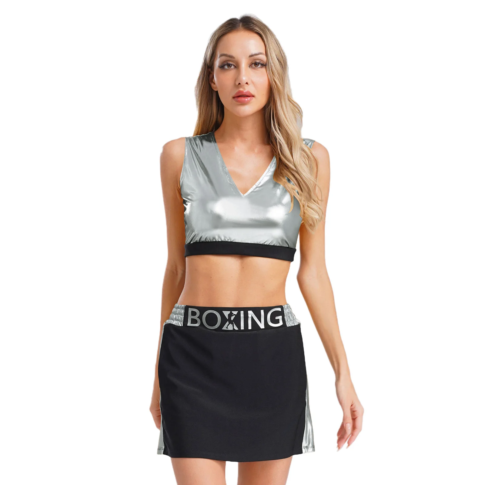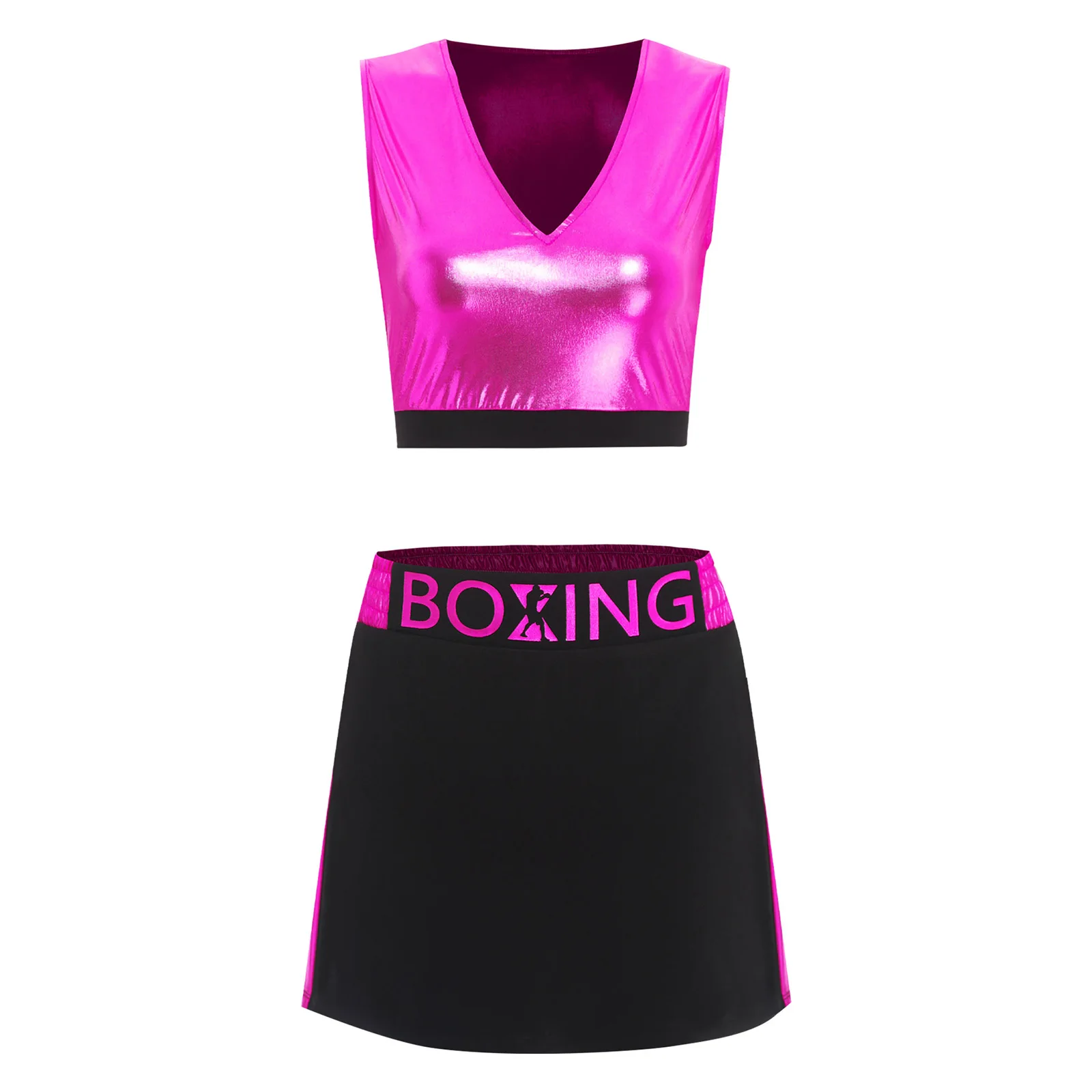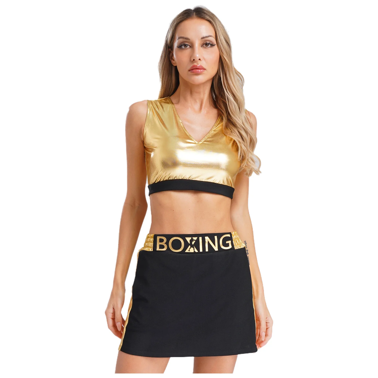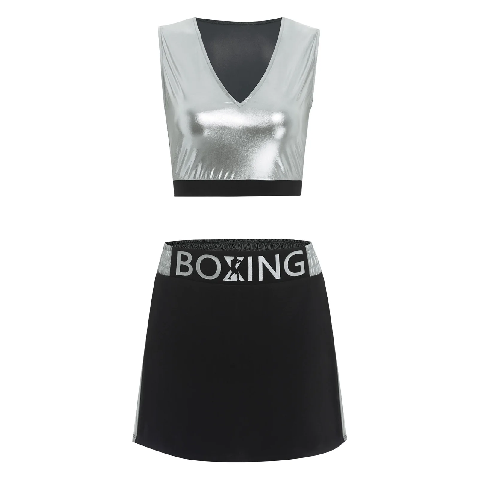 4Pcs Women Boxing Training Clothes Halloween Cosplay Costume Tank Tops with Skirt Hooded Coverup Robe And Belt Set Boxer Outfit