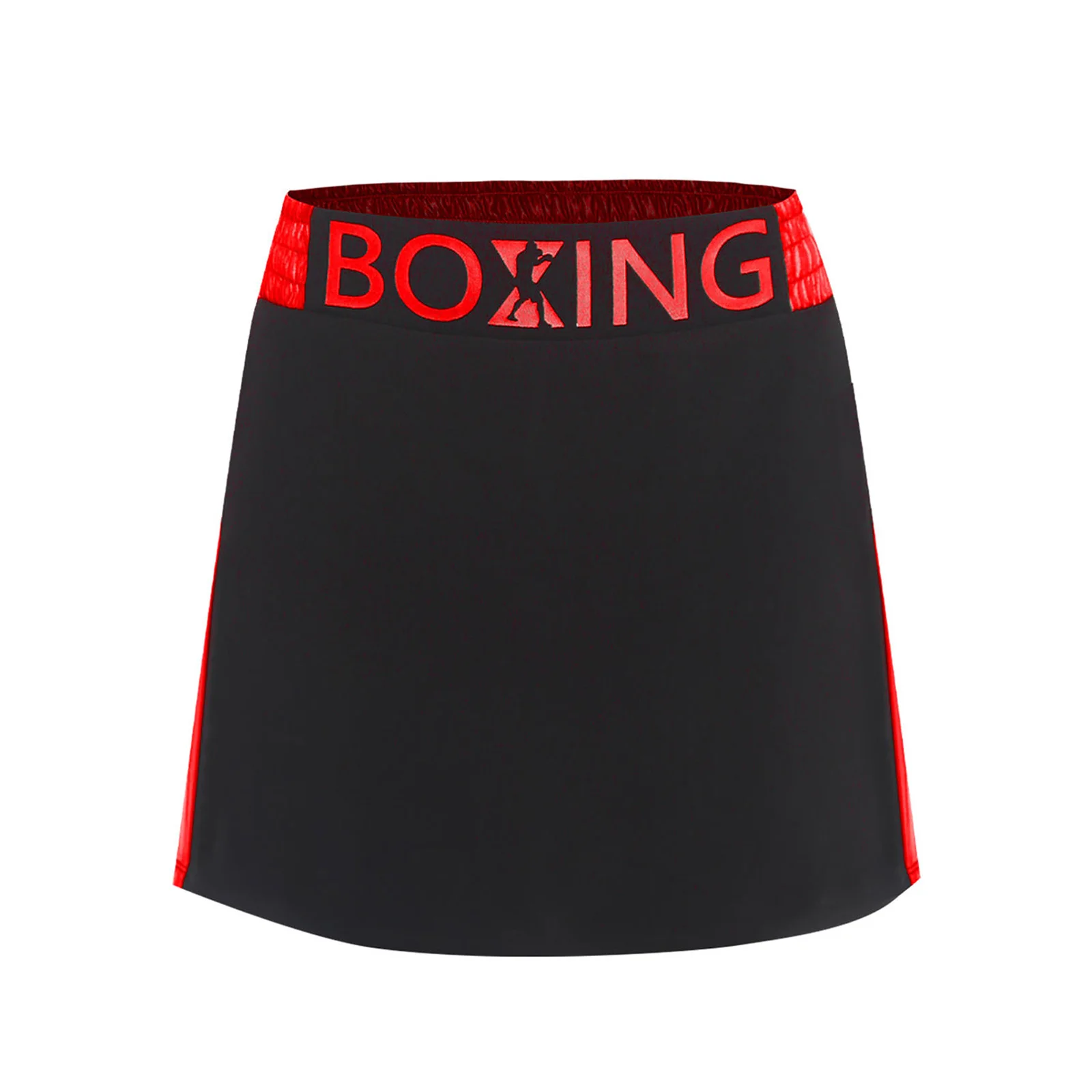 4 pieces boxer outfit for women, includes a sport tank top, a skirt, a coverup coat and a belt, are complete and fashionable.
