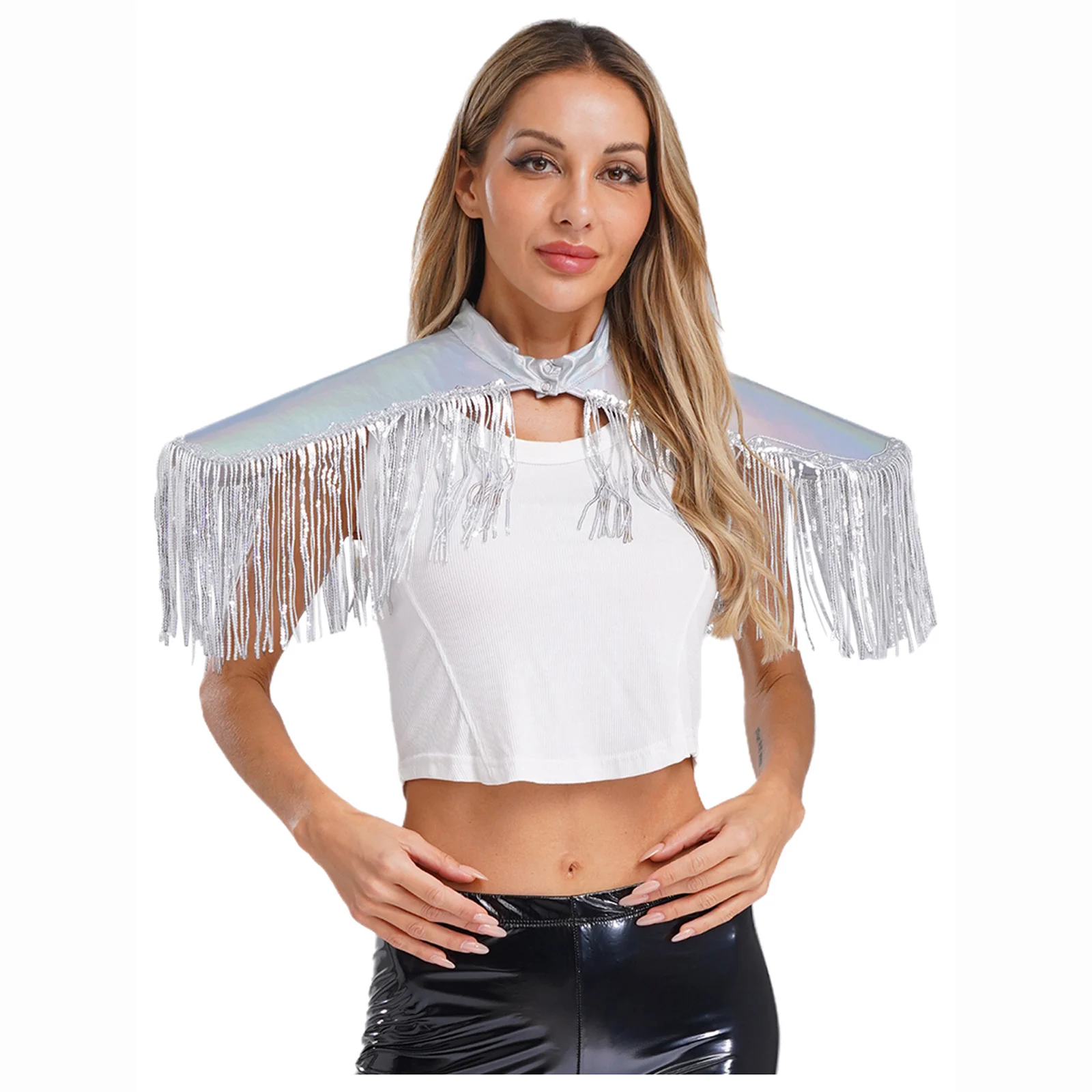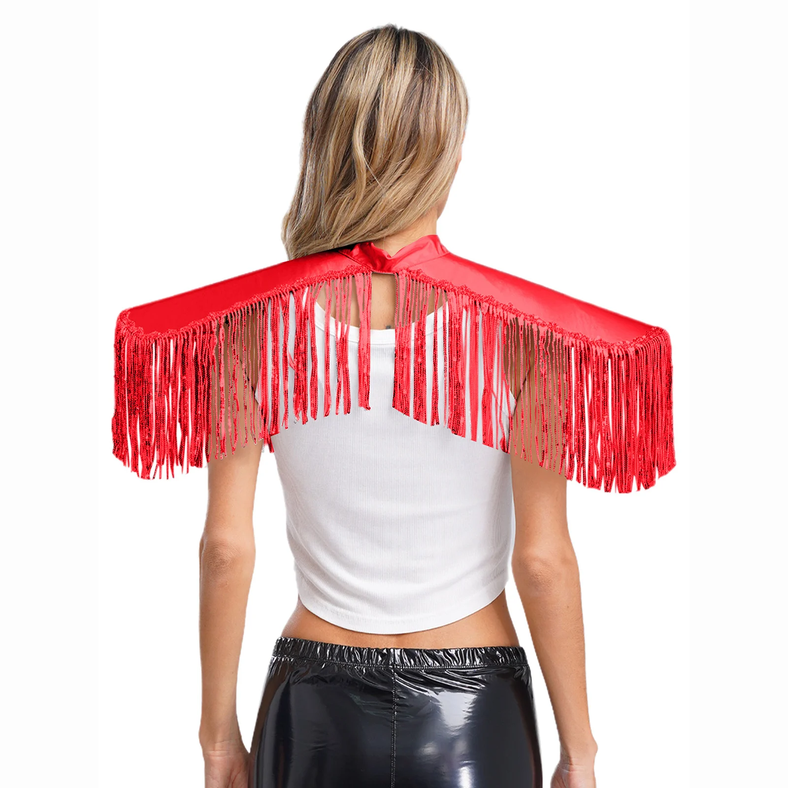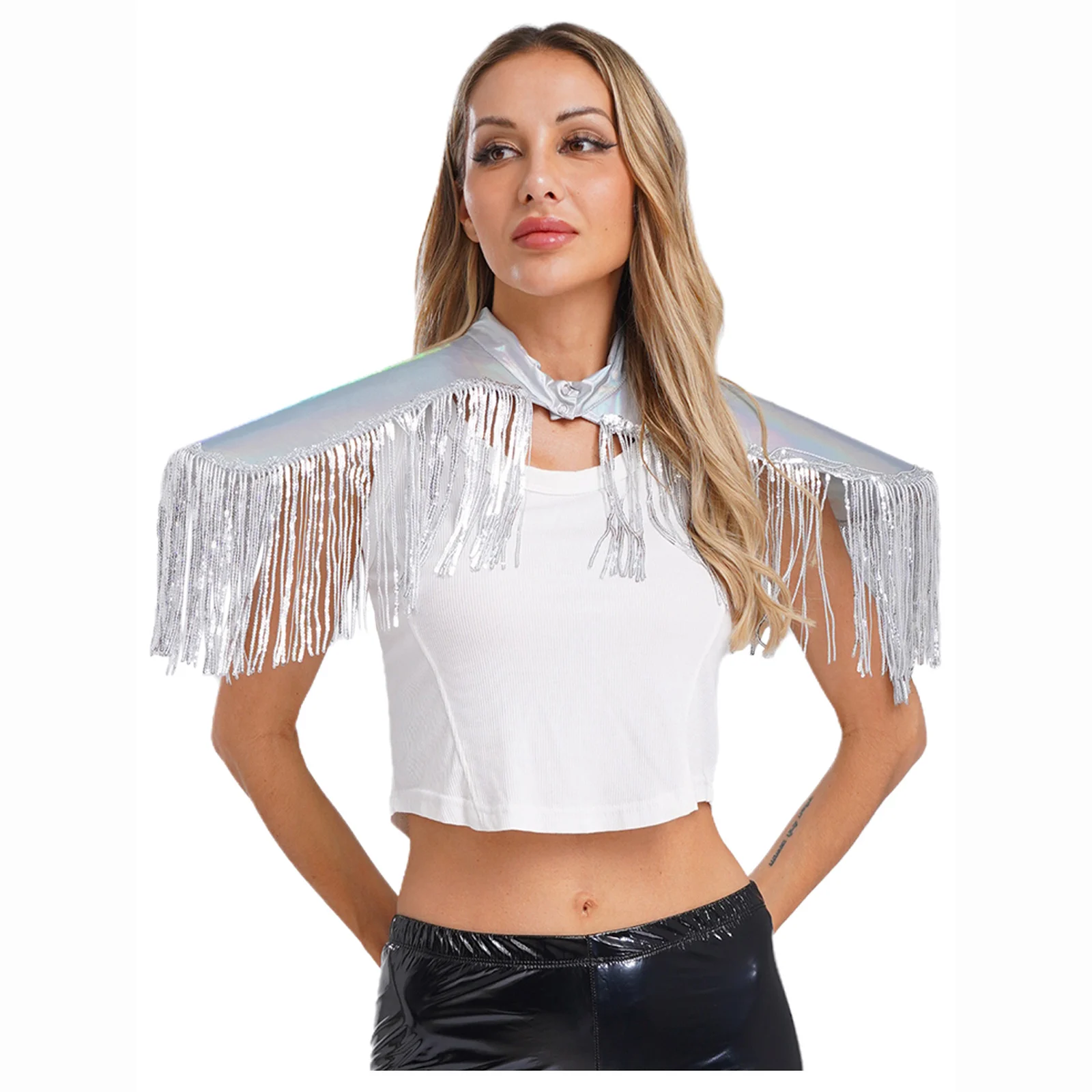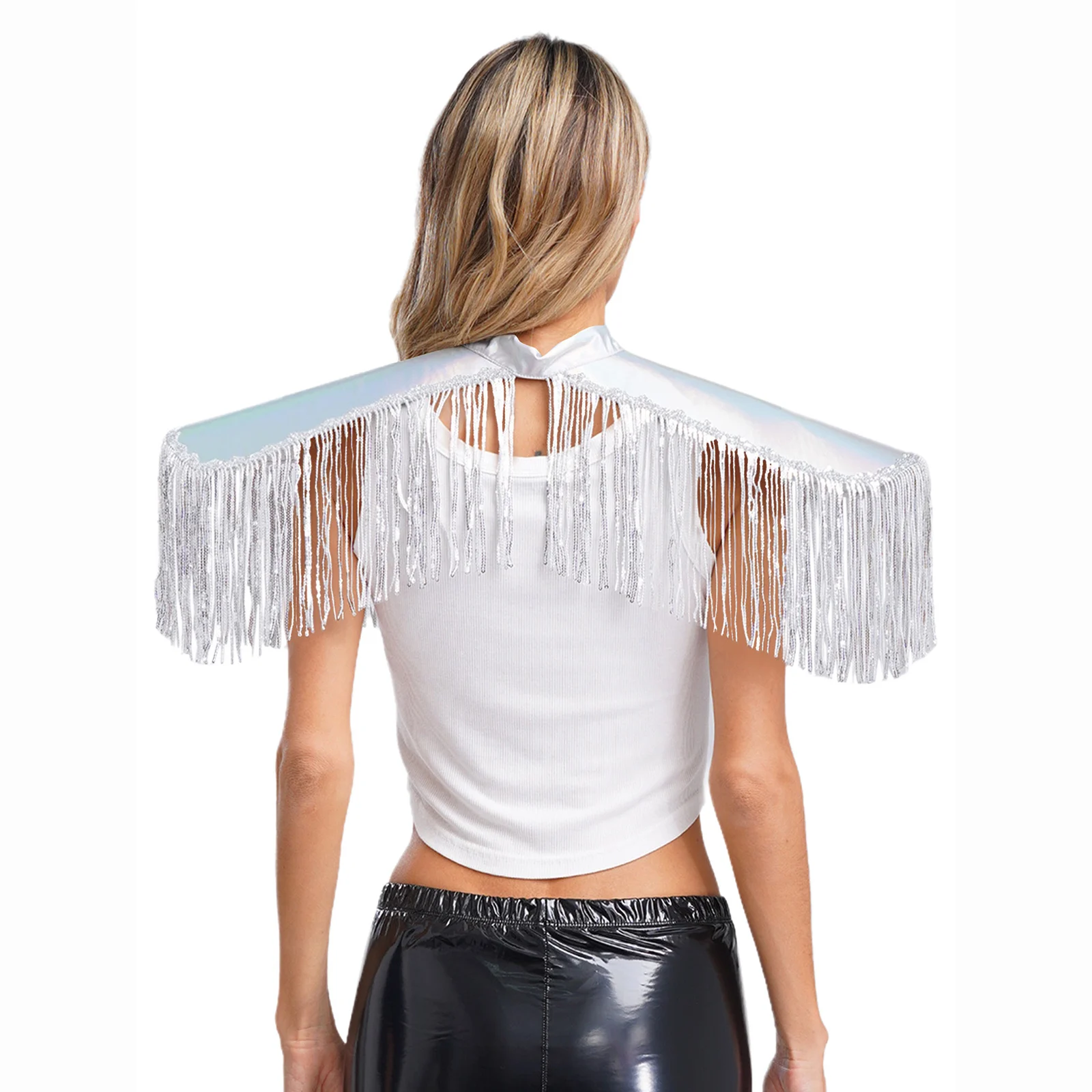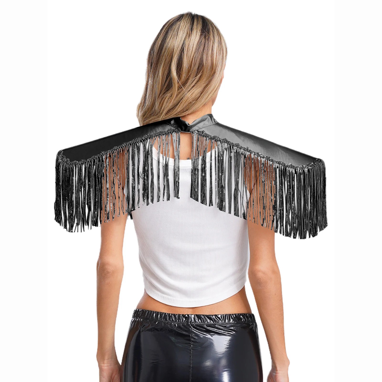 Adult Mens Womens Shiny Metallic Sequins Fringe Shoulder Pads Tassels Armor Vest Singer Costume Performance Costume Accessories