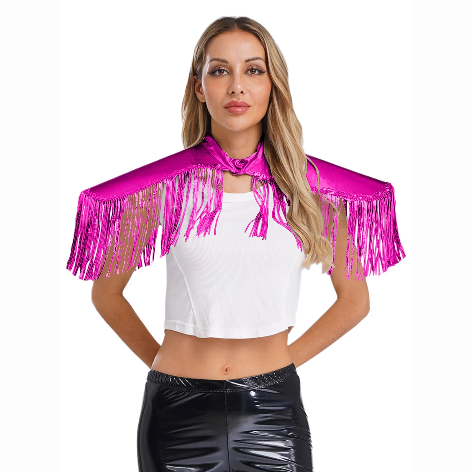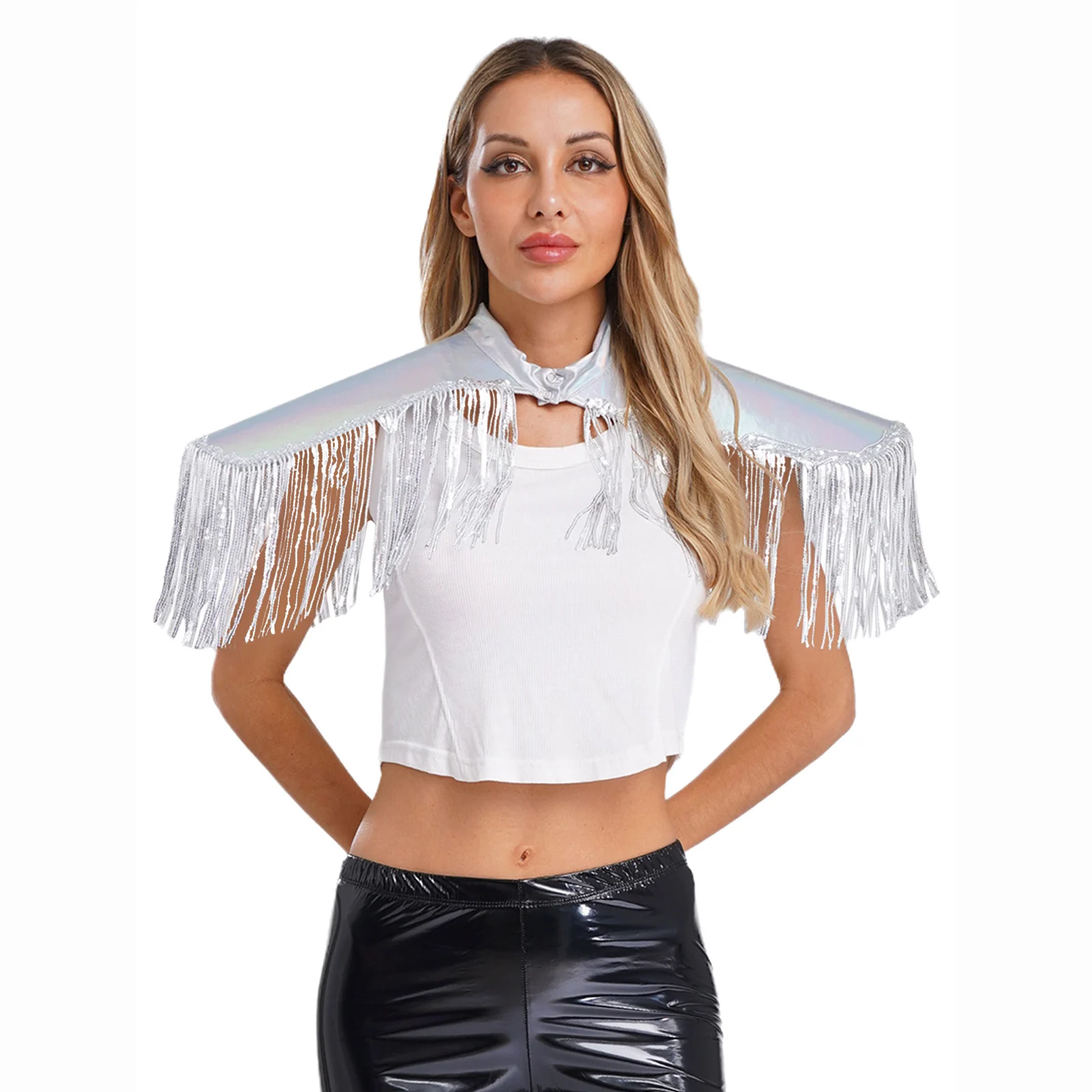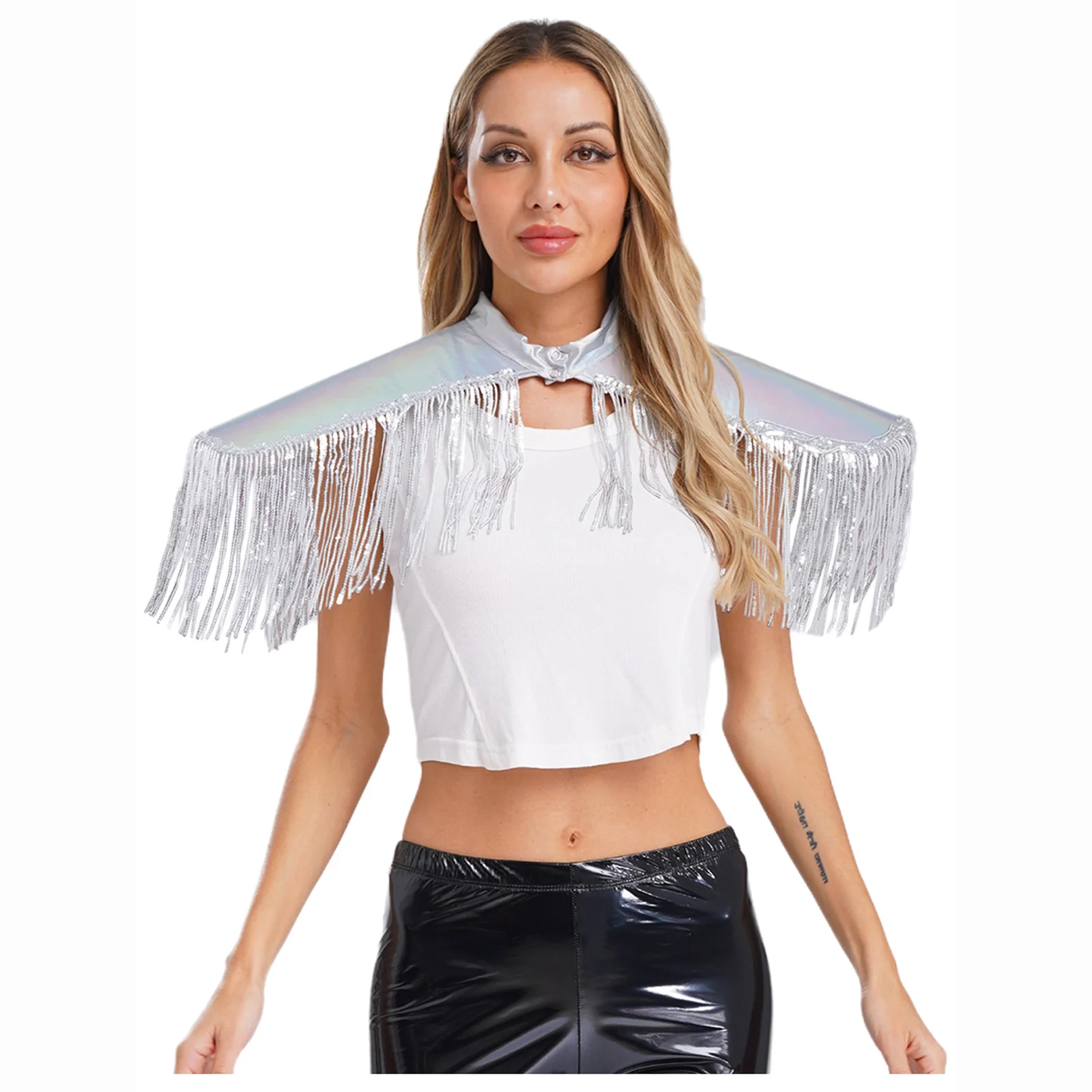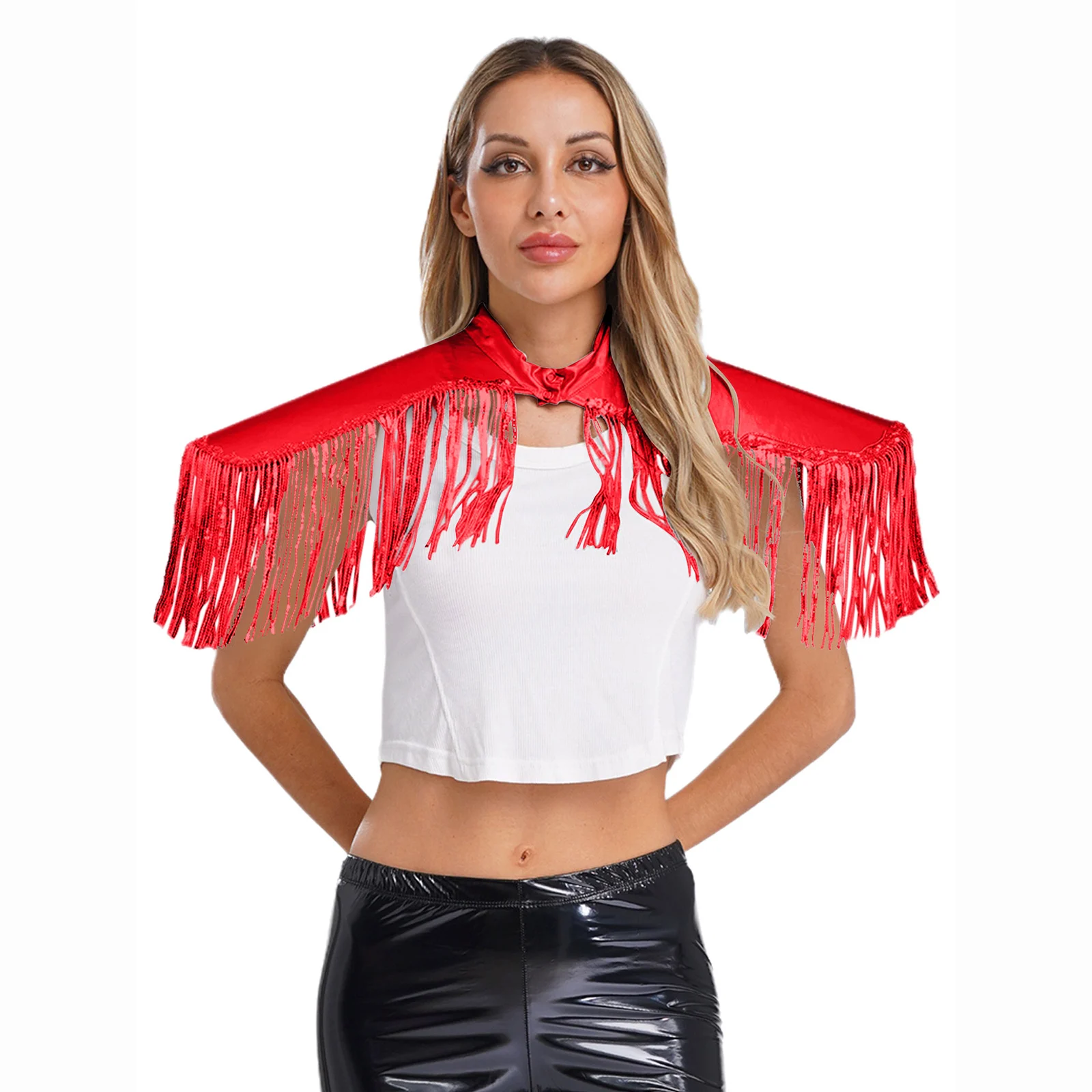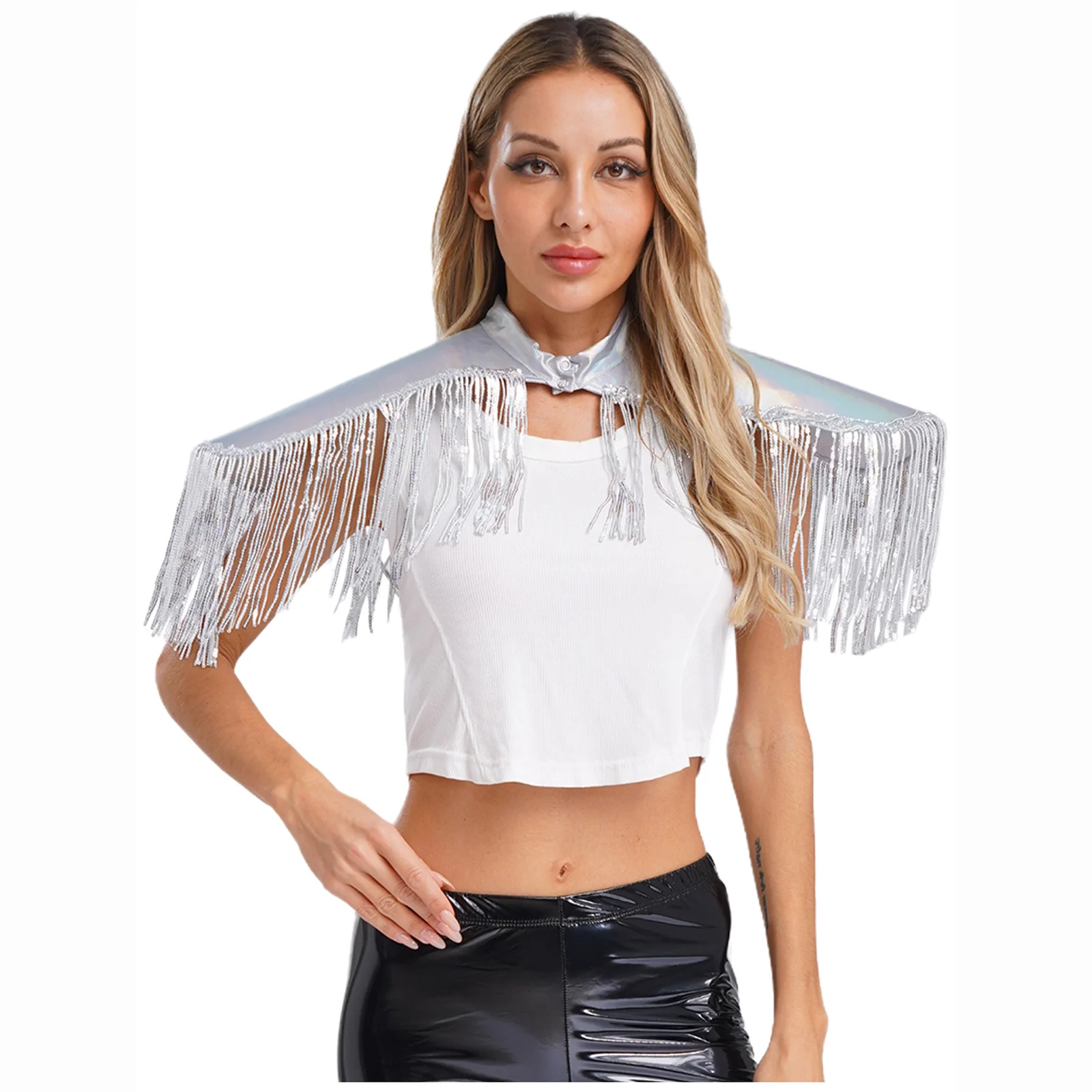 Adult Mens Womens Shiny Metallic Sequins Fringe Shoulder Pads Tassels Armor Vest Singer Costume Performance Costume Accessories