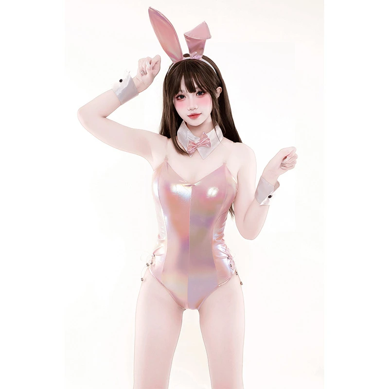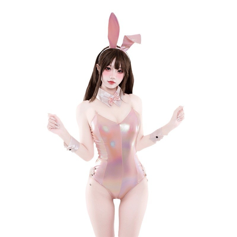 Amine Bunny Girl Lingerie Sexy Pink Laser Bodysuit Women Halloween Costume Rabbit Cosplay Uniform Bunny Outfits Game Role Play