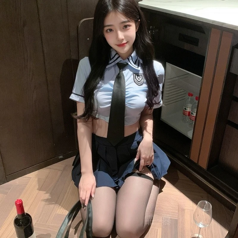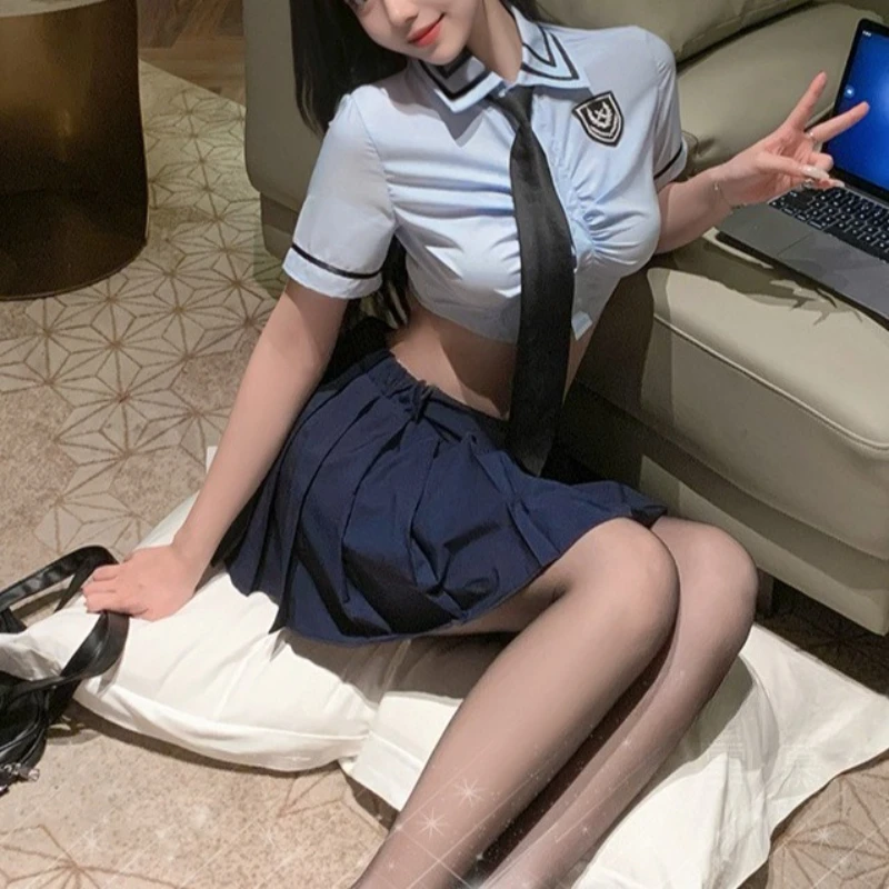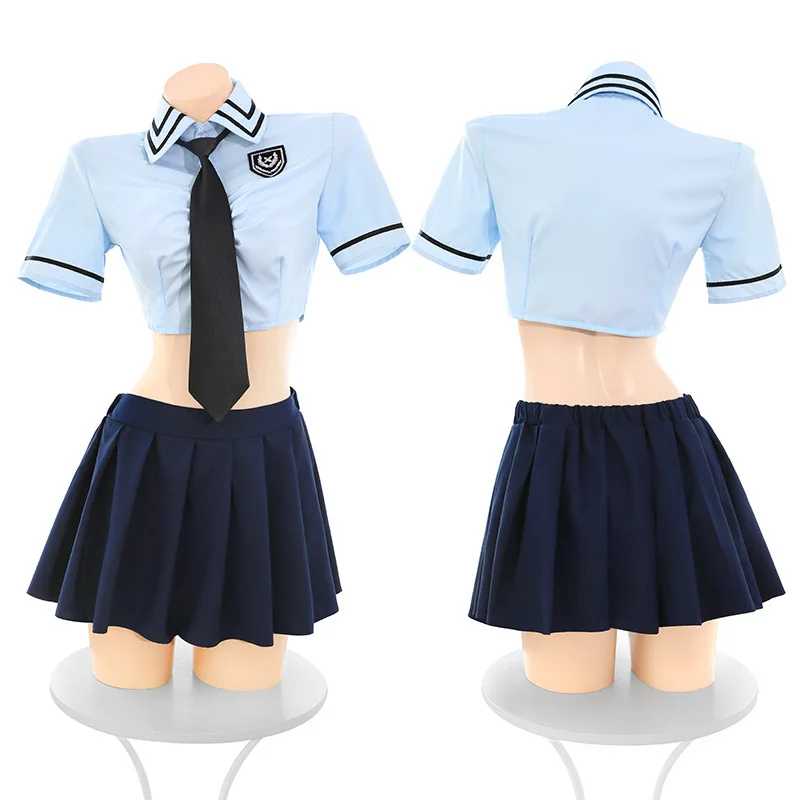 Anime Blue College Style Uniform Cosplay Costume Bunny Police Outfits Role Play Suit Women Nightwear Lingerie Cute Girl Pajamas