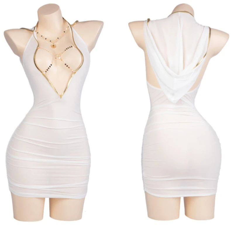 Anime Egypt Queen Uniform Cosplay Costume Sexy Deep V Backless See Through Chain Hoodie Dress History Roleplay Outfits Nightwear