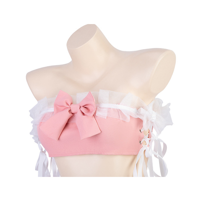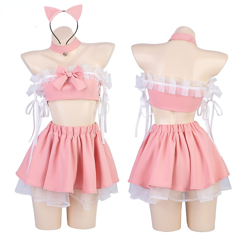 Anime Lolita Girl Cute Pink Cat Maid Unifrom Women Off Shoulder Tops Cake Skirt Outfits Costumes Cosplay Sexy Lingerie Underwear