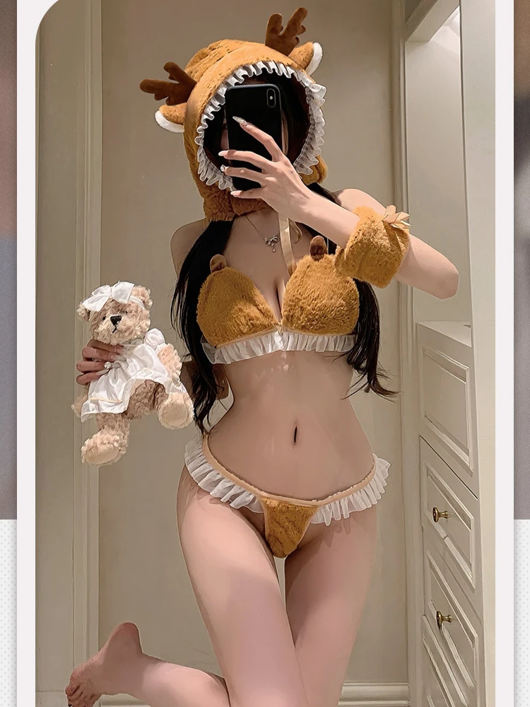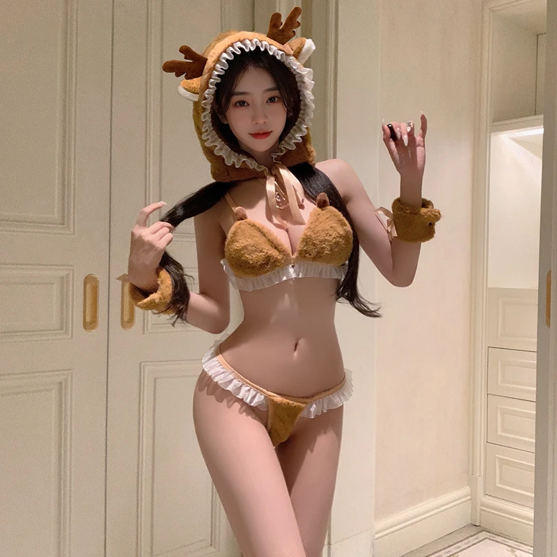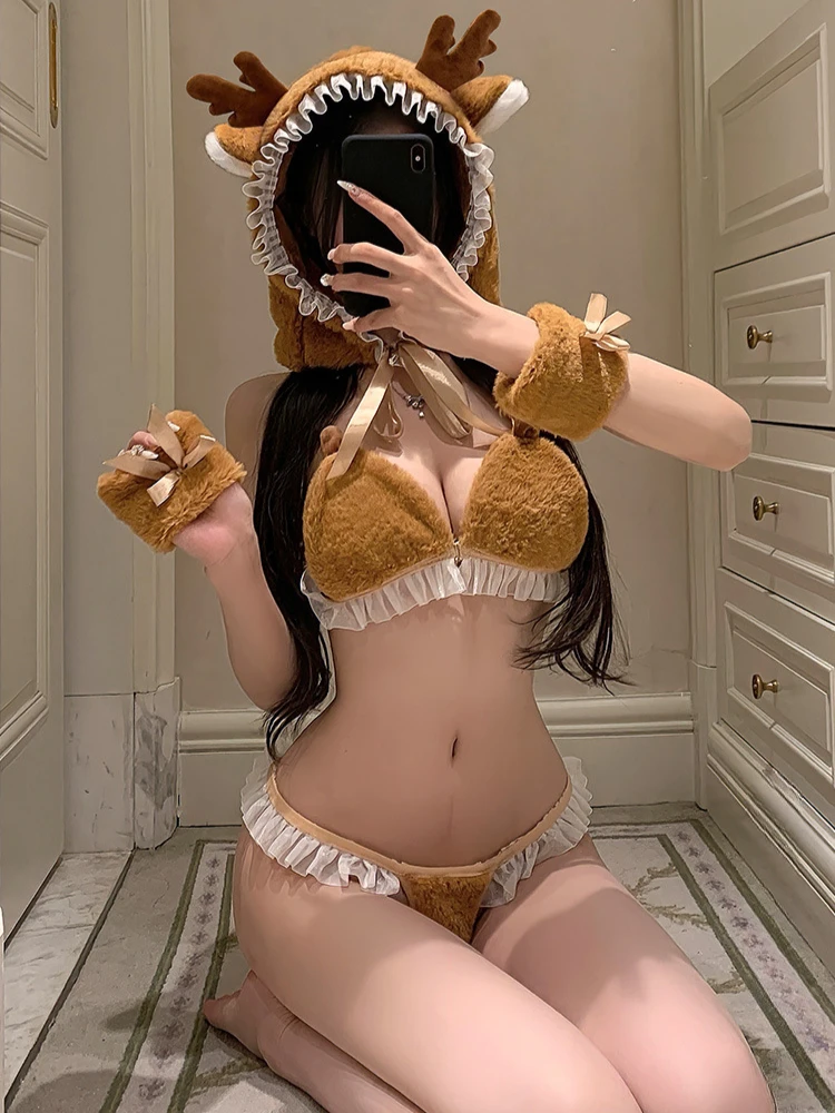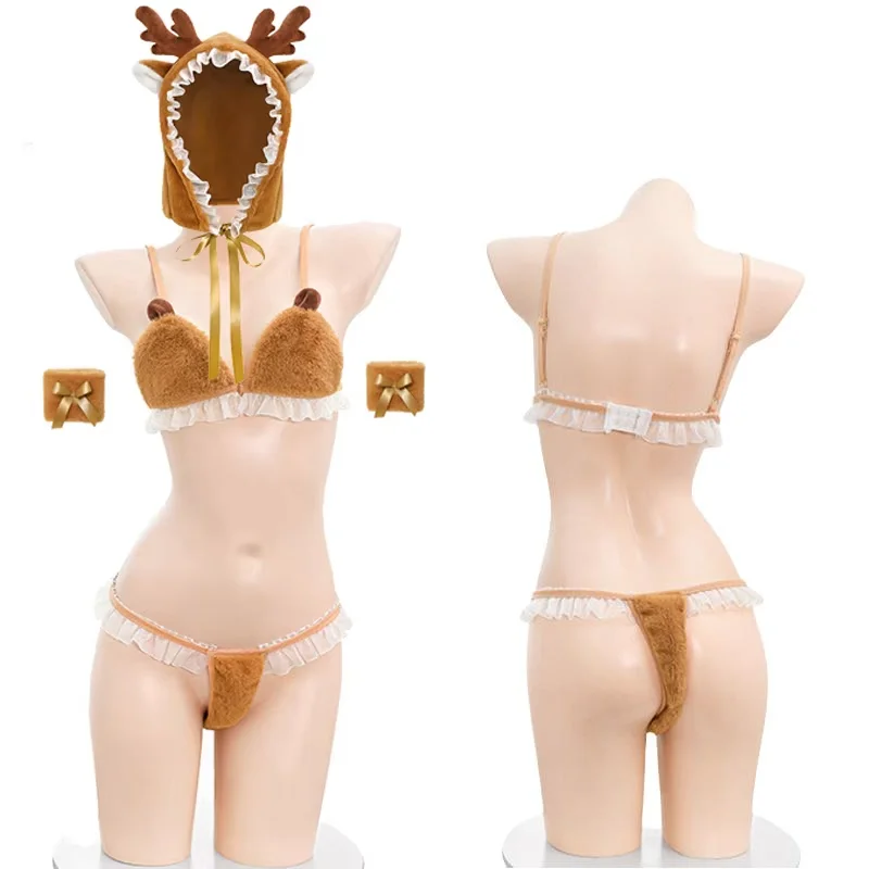 Anime Plush Elk Underwear Set Cosplay Costume Backless Christmas Nightwear Role Play Outfits Lingerie