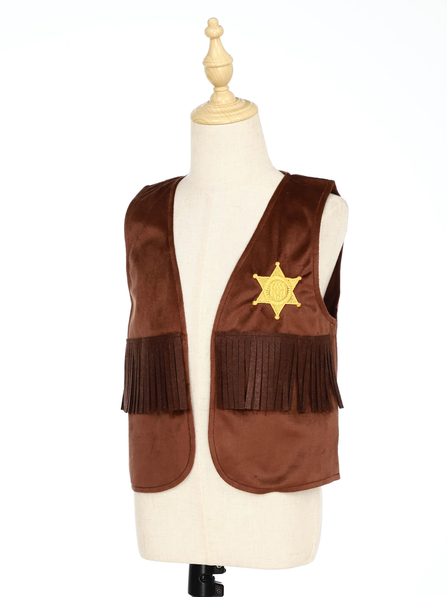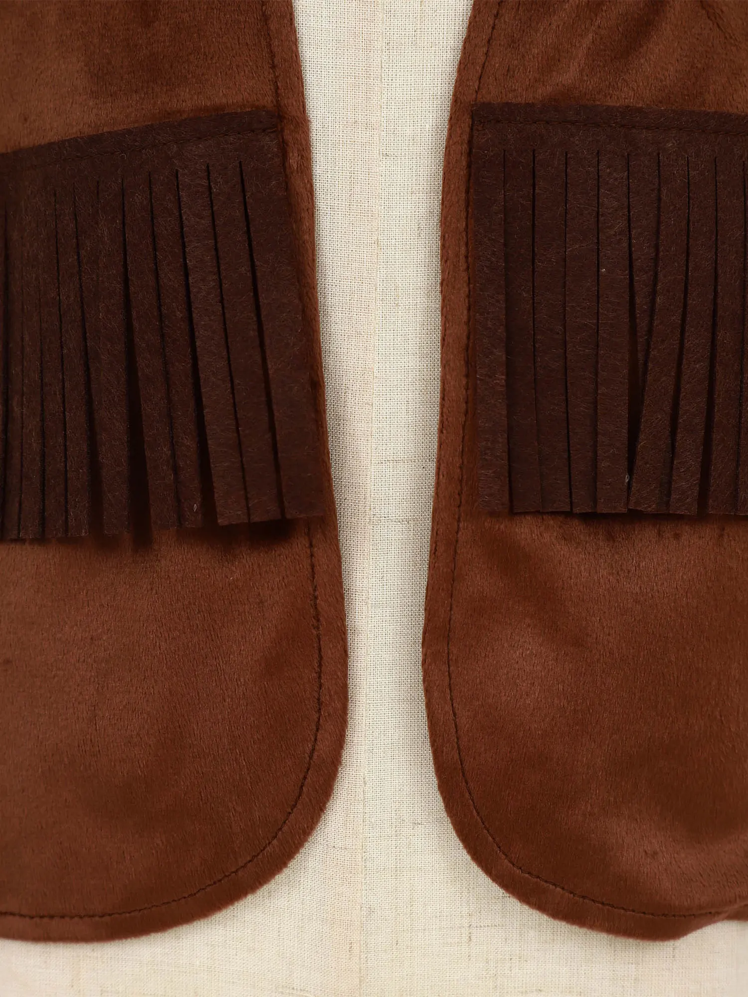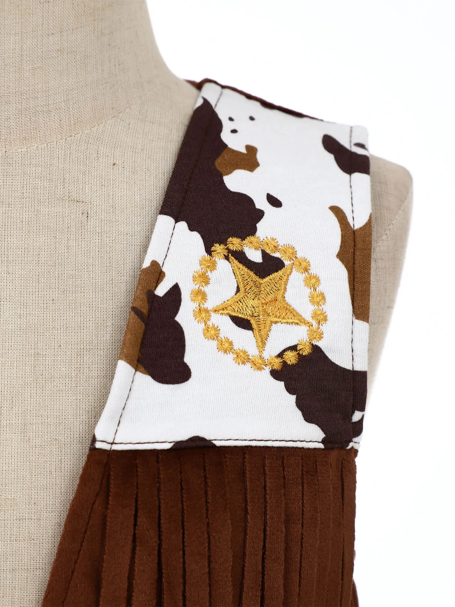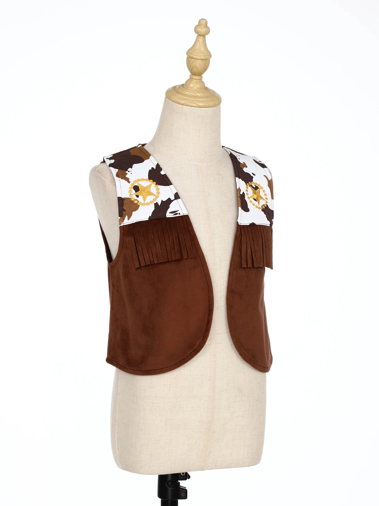 Boys Girls Cowboy Cowgirl Cosplay Costume Open Waistcoat Fringed Star Pattern Vest Tops Waistcoat Halloween Themed Party Costume