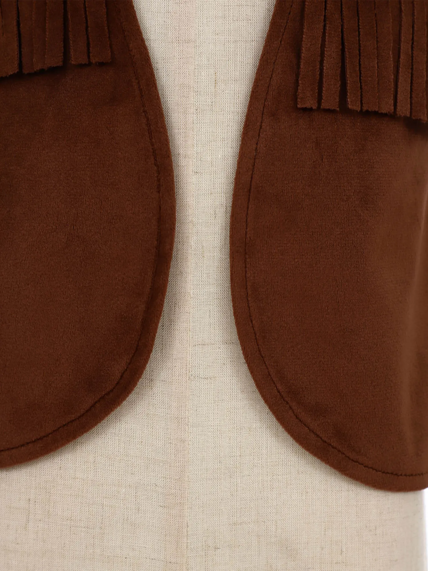 The cowboy-cowgirl style is highly trendy, with the open waistcoat design and fringed star pattern adding a unique and eye-catching element.