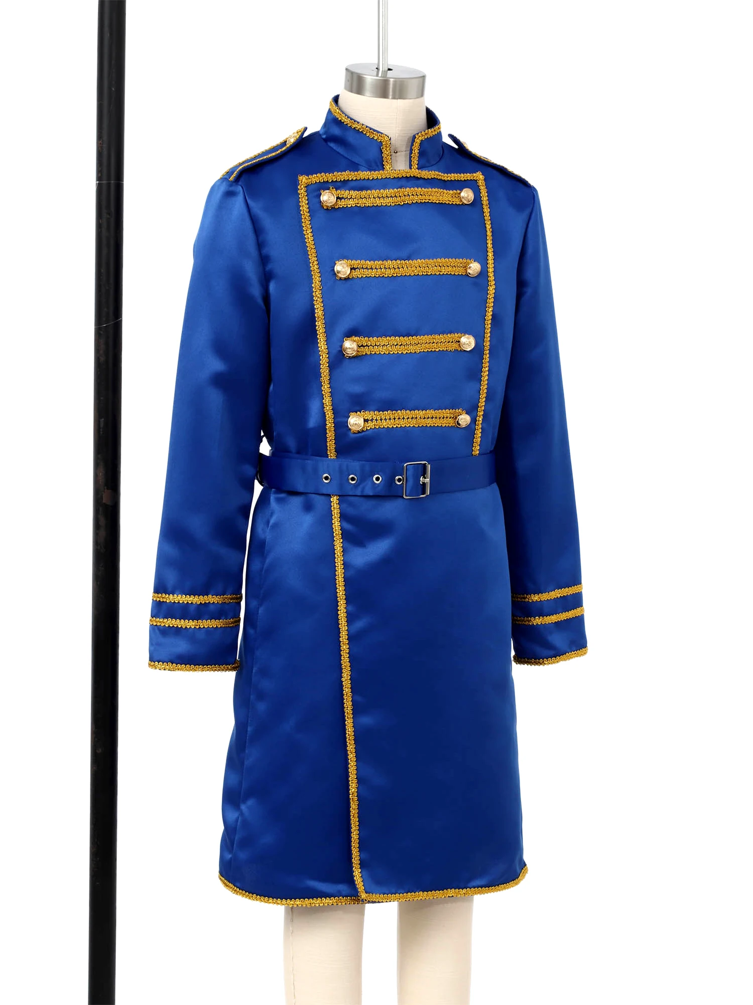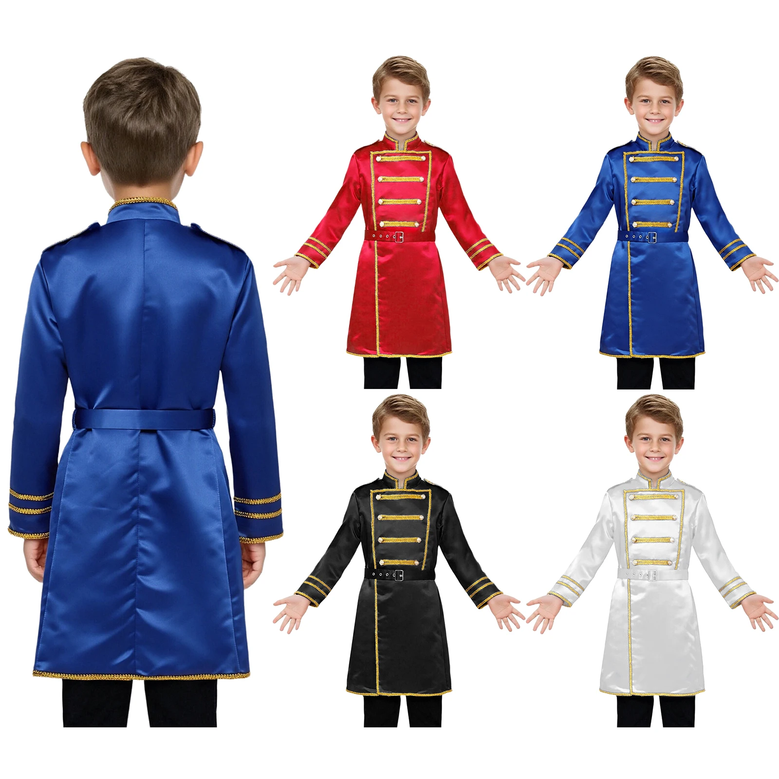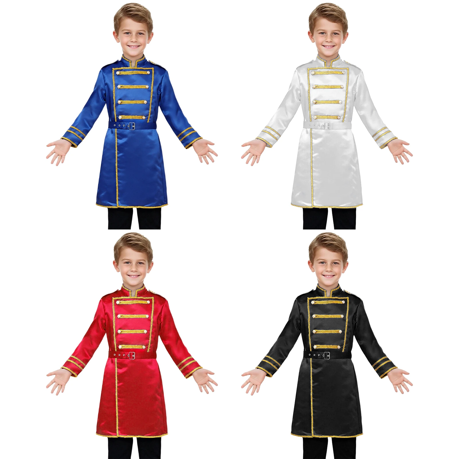 Boys Medieval Renaissance Halloween Cosplay Belt Marching Band Party Costumes Drummer Royal Guard Long Jacket Outwear with Waist