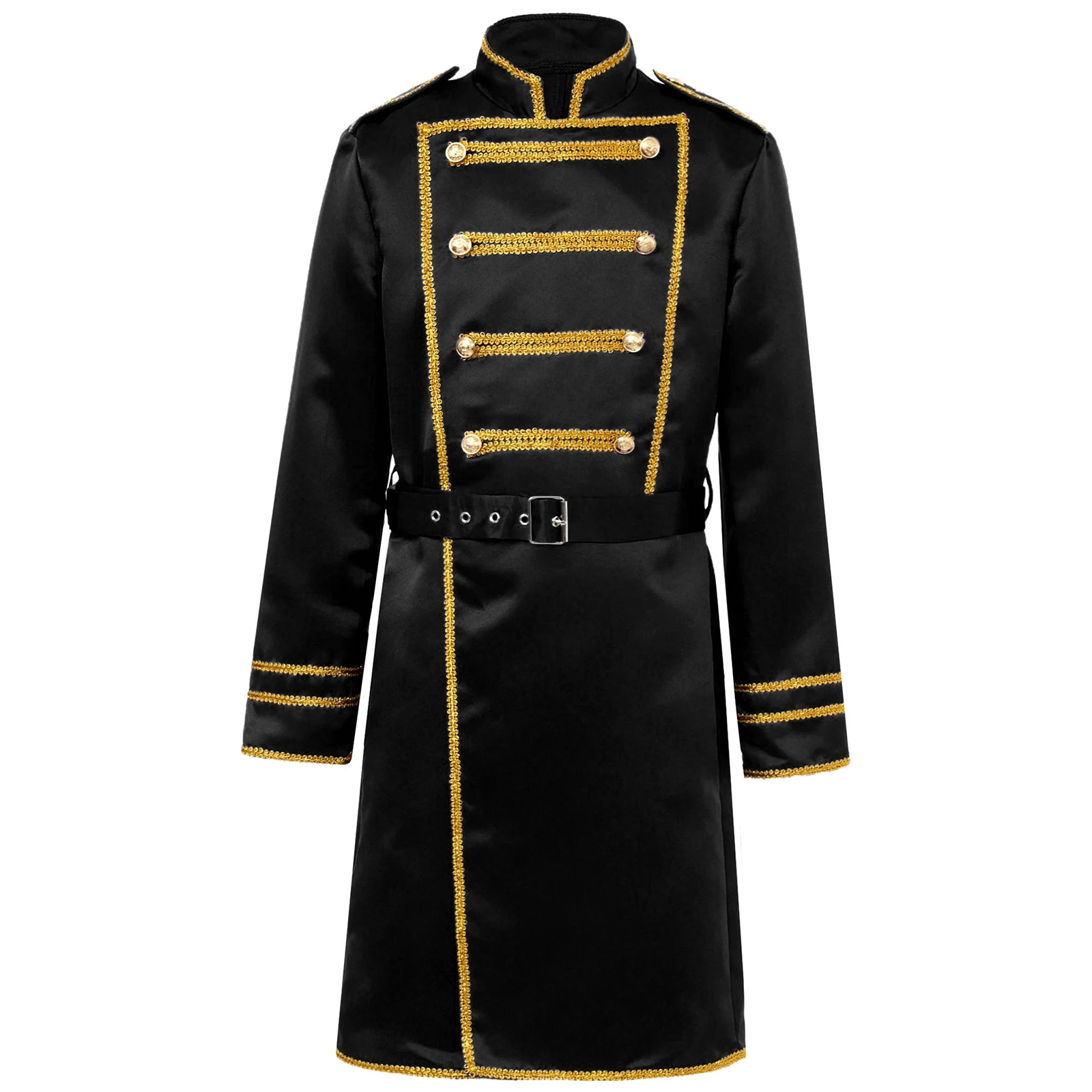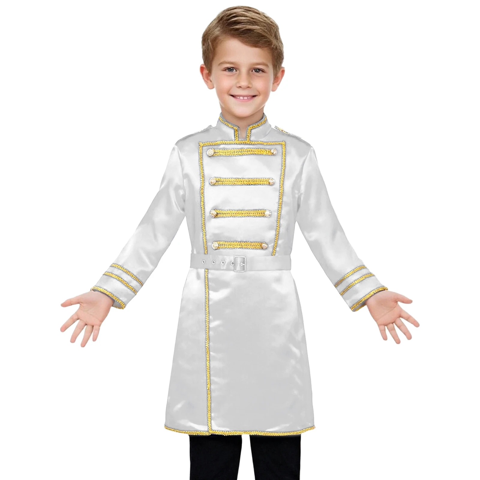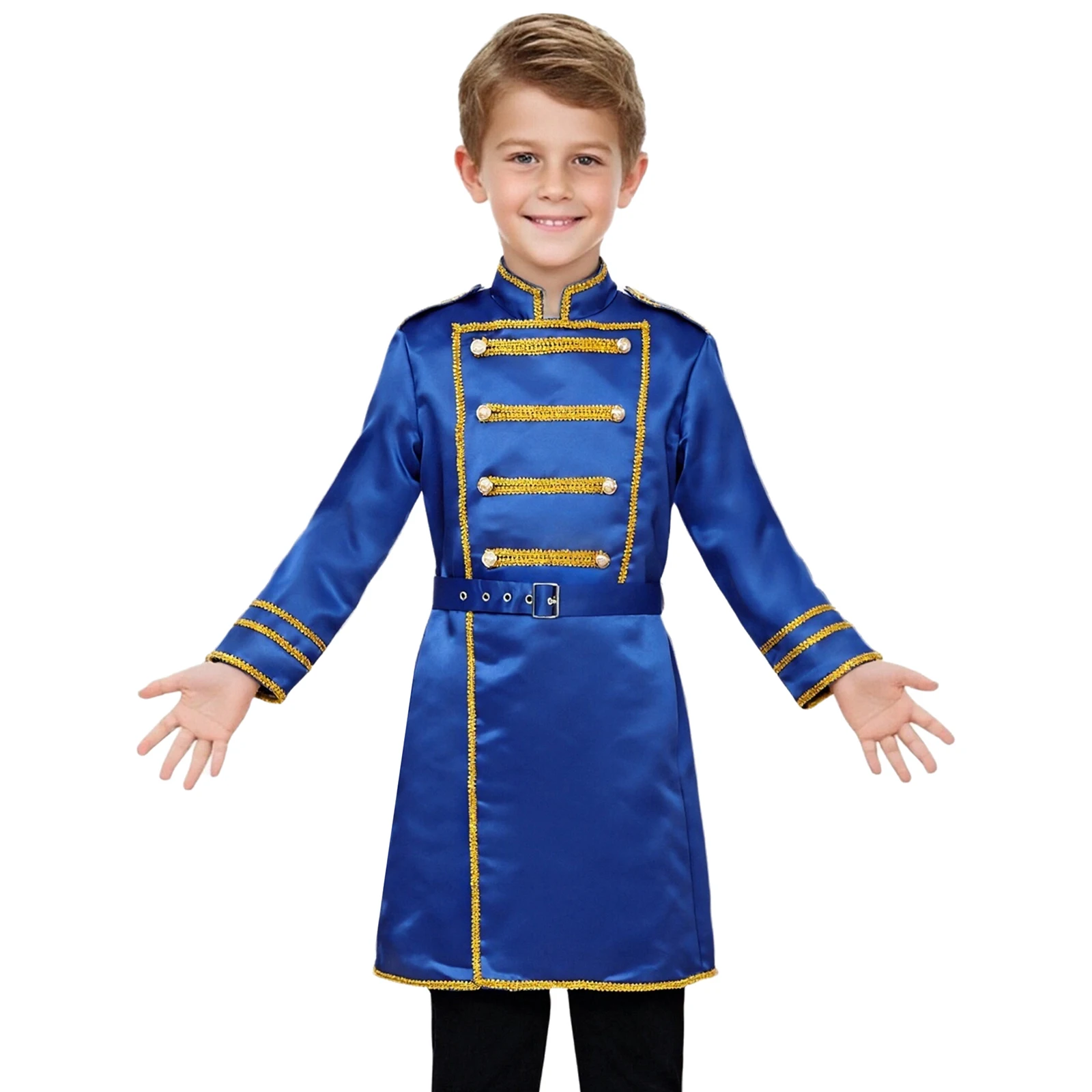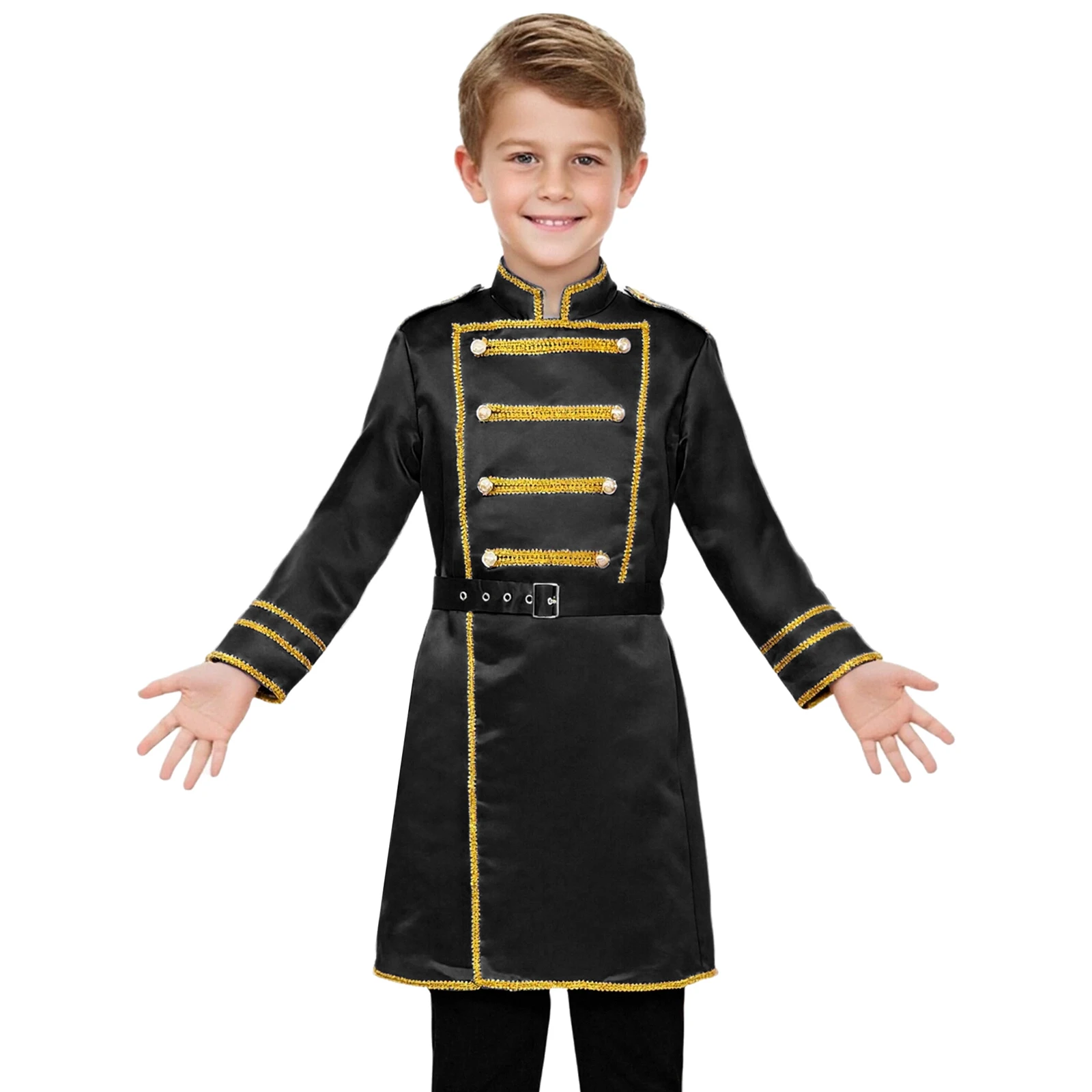 Boys Medieval Renaissance Halloween Cosplay Belt Marching Band Party Costumes Drummer Royal Guard Long Jacket Outwear with Waist