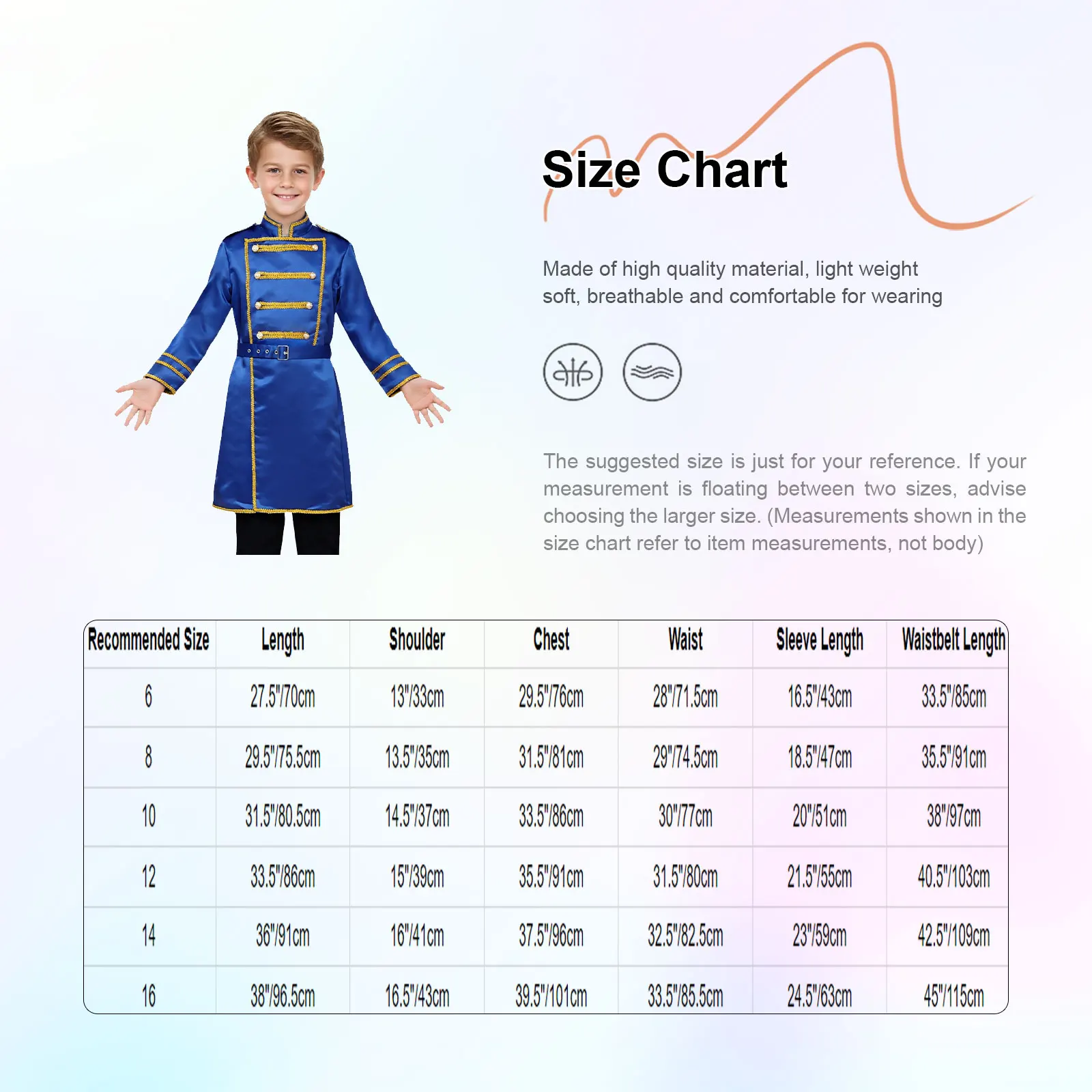 The included waist belt can be adjusted to fit your child’s waist, highlighting the body shape and adding a sense of fashion.