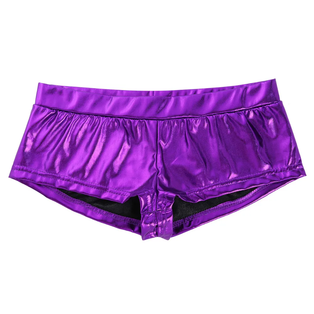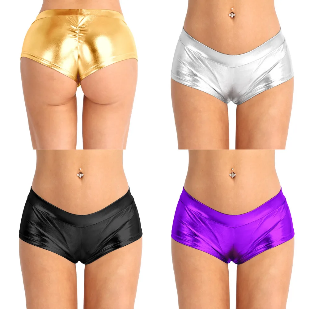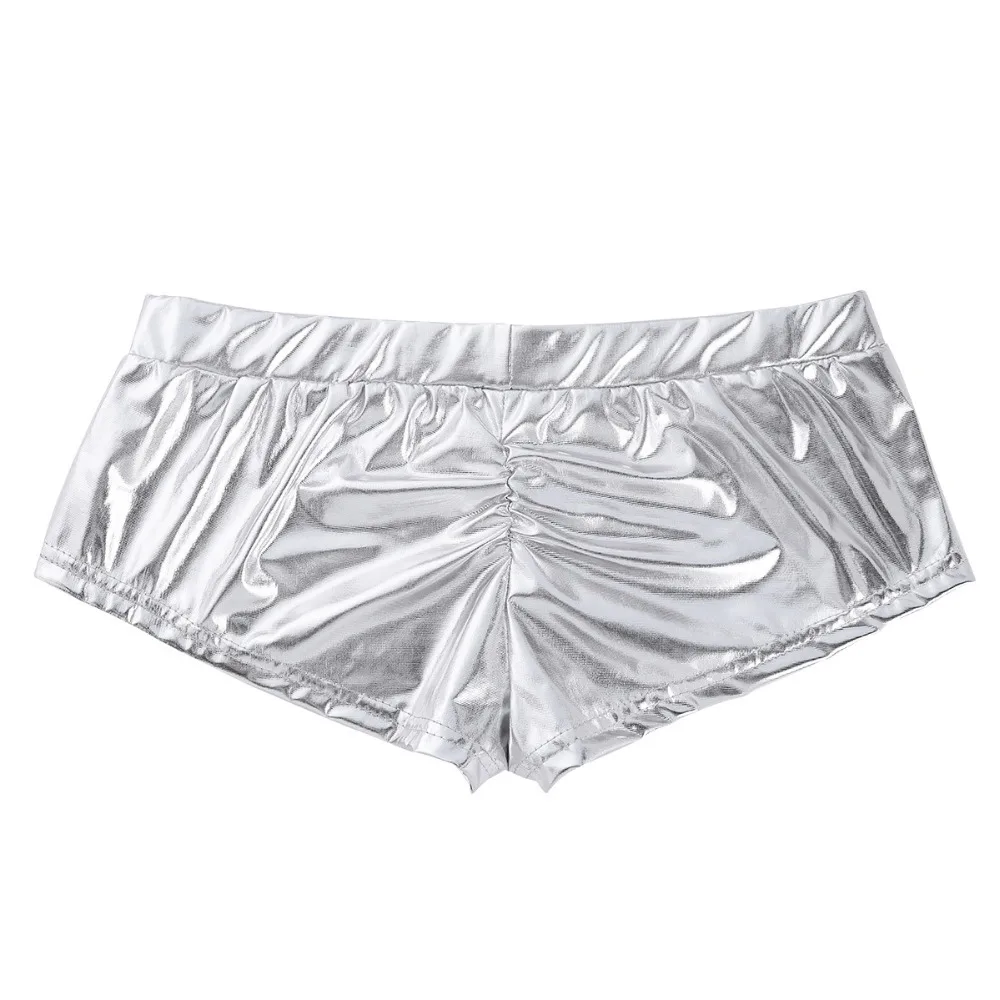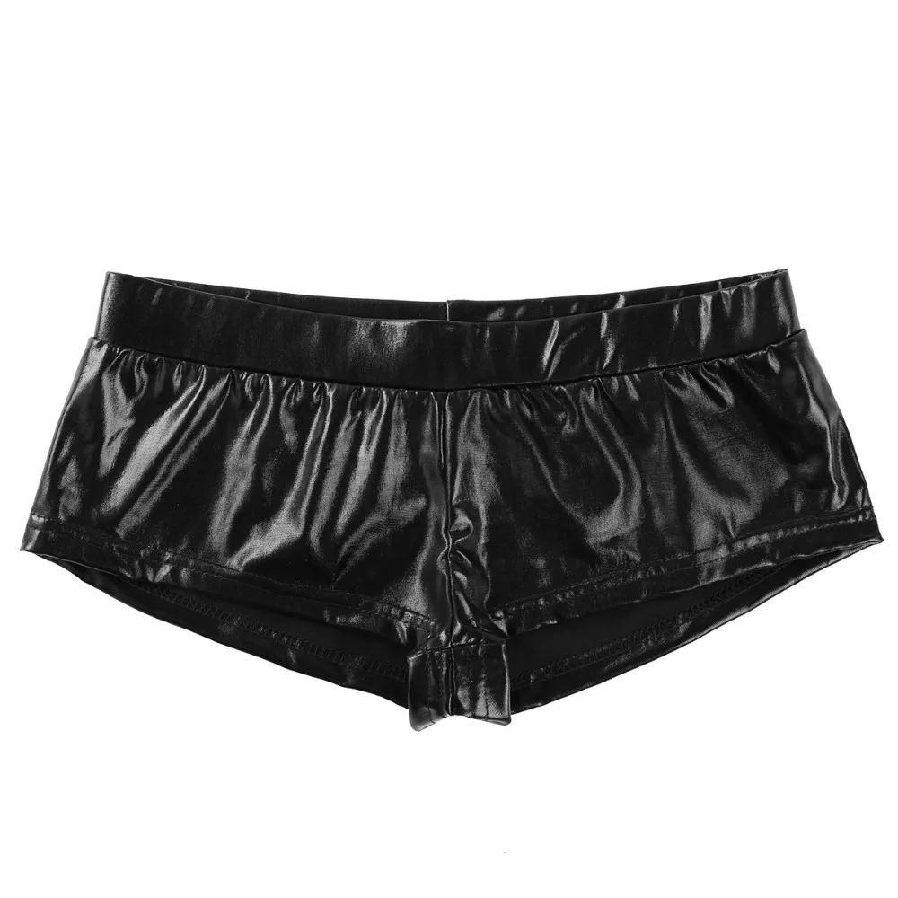 Fashion Womens Shiny Faux Leather Low Waist Rave Shorts Fashion Sexy Night Club Boxer Shorts for Pole Dancing Raves Costumes