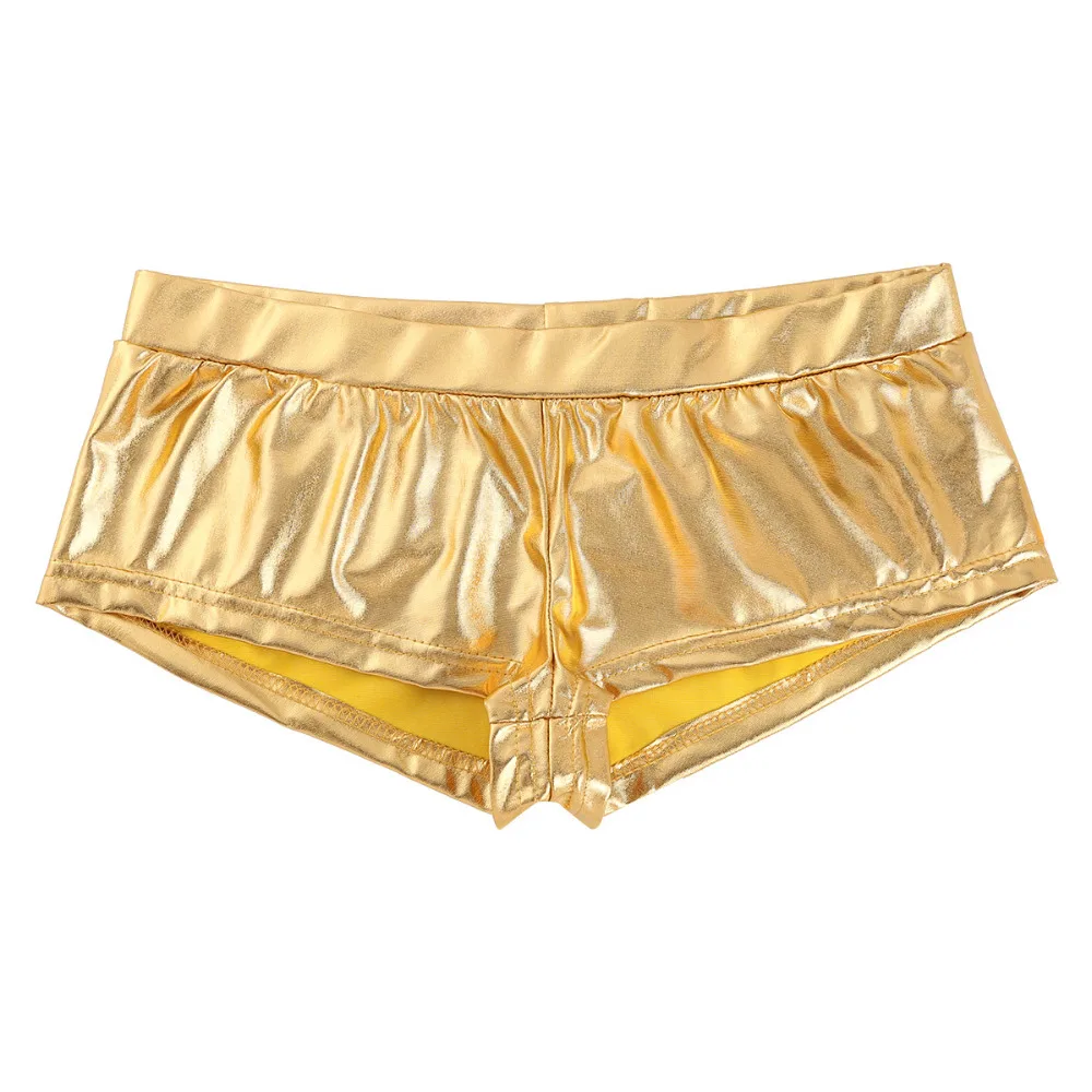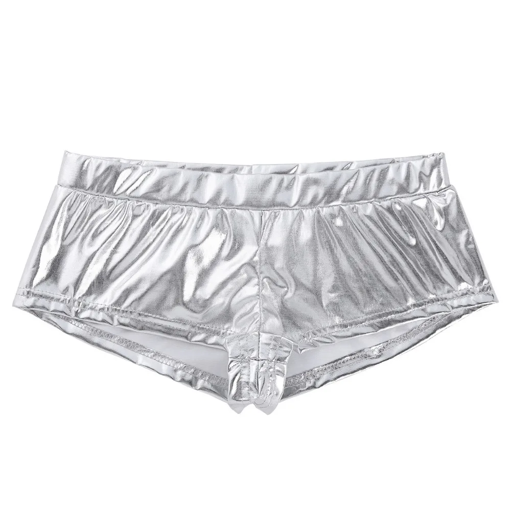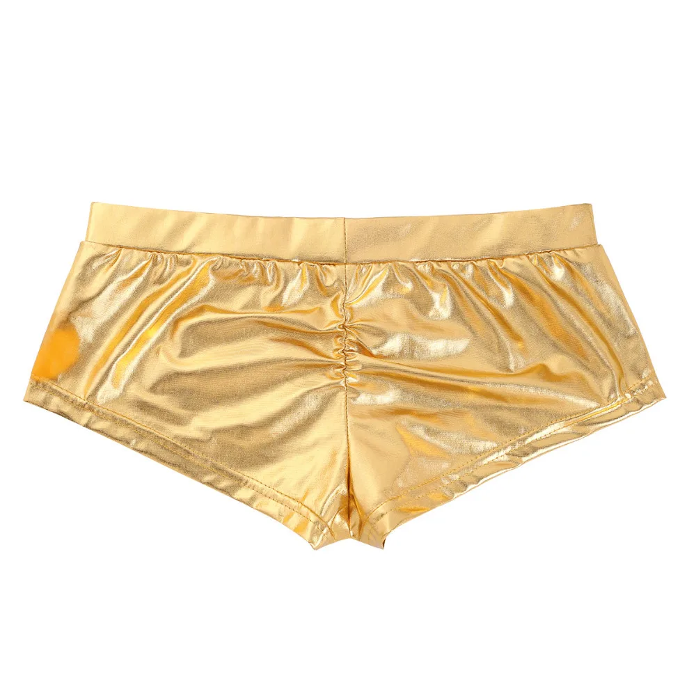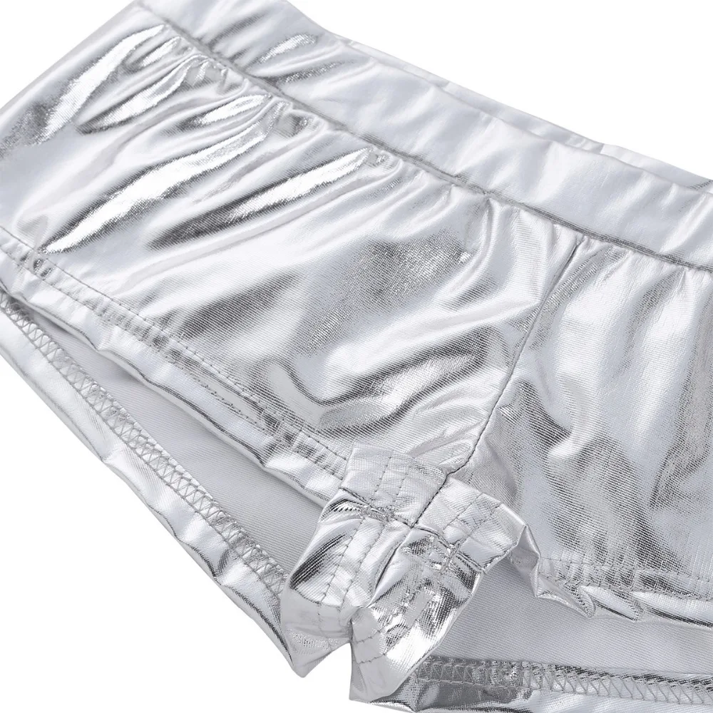 Fashion Womens Shiny Faux Leather Low Waist Rave Shorts Fashion Sexy Night Club Boxer Shorts for Pole Dancing Raves Costumes
