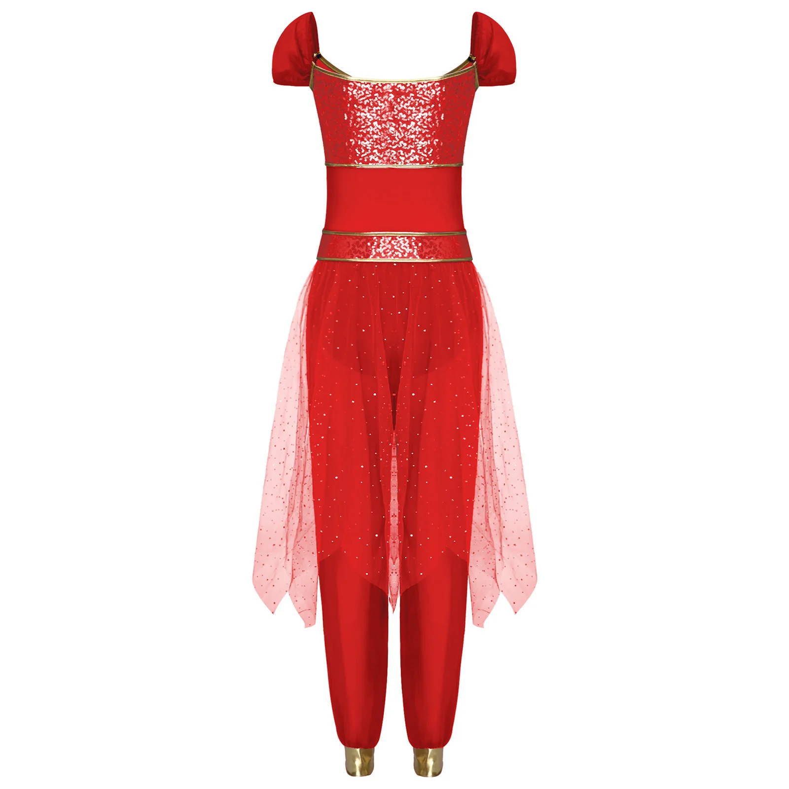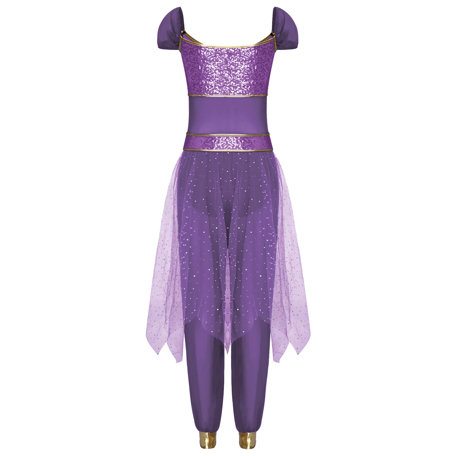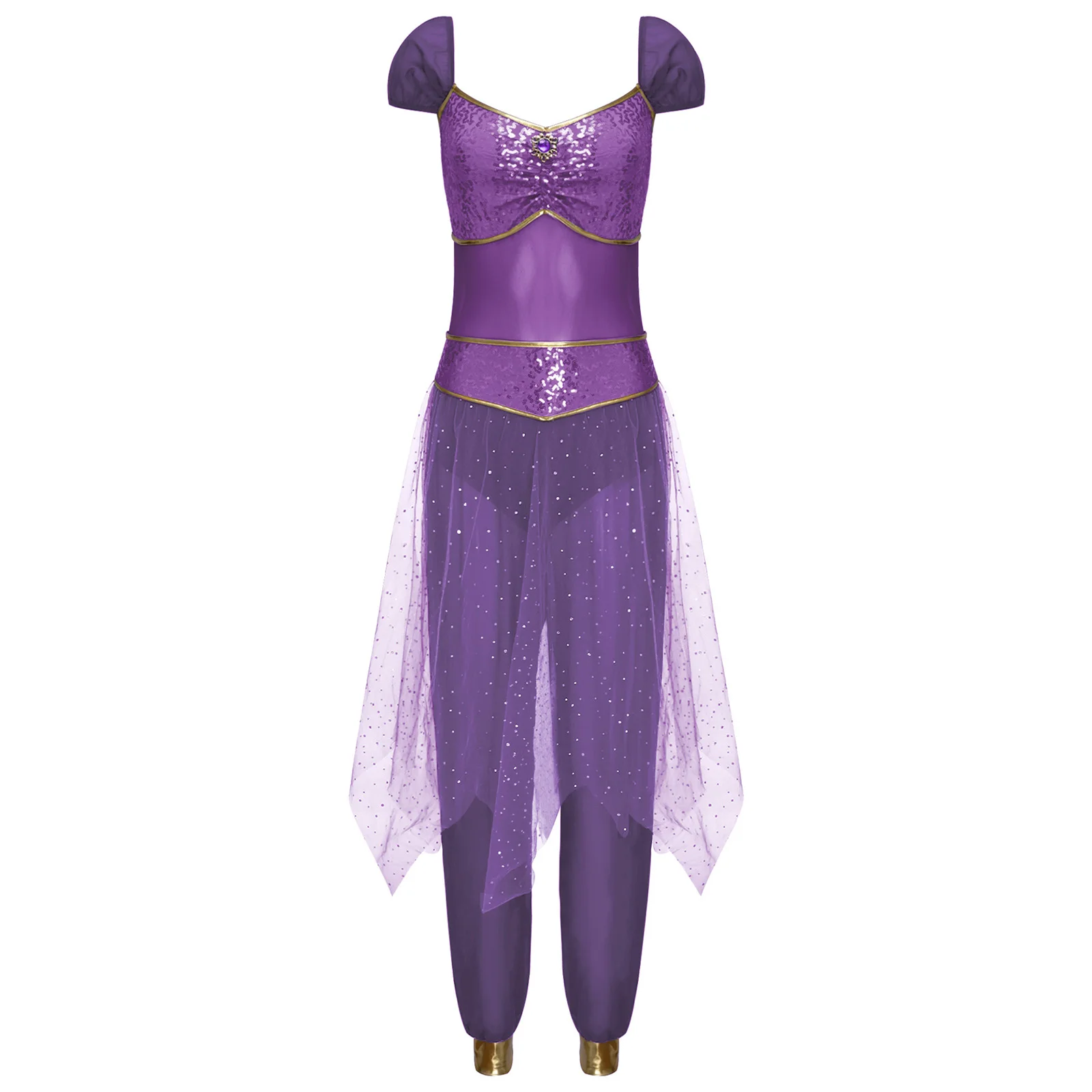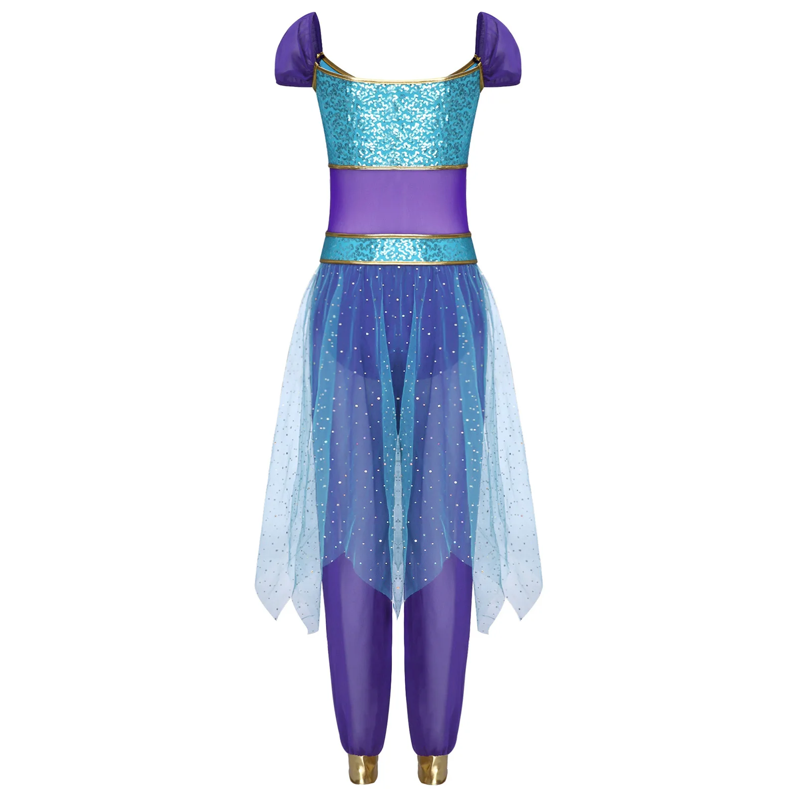 Festival Halloween Arabian Princess Costume Indian Dance Jumpsuit Gem Decor Sequin Tulle Overlay Dresses for Women Cosplay Party