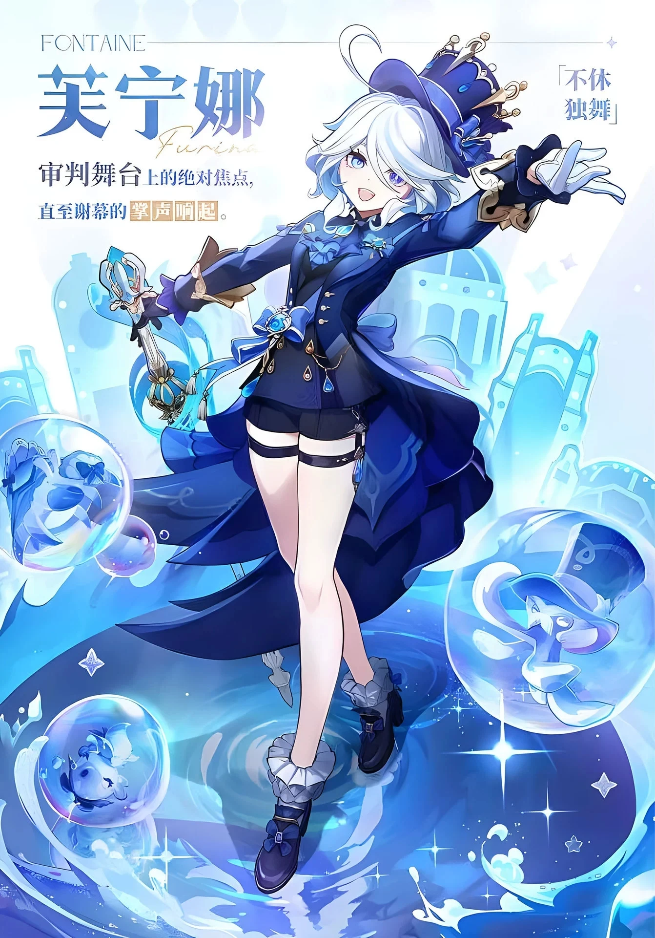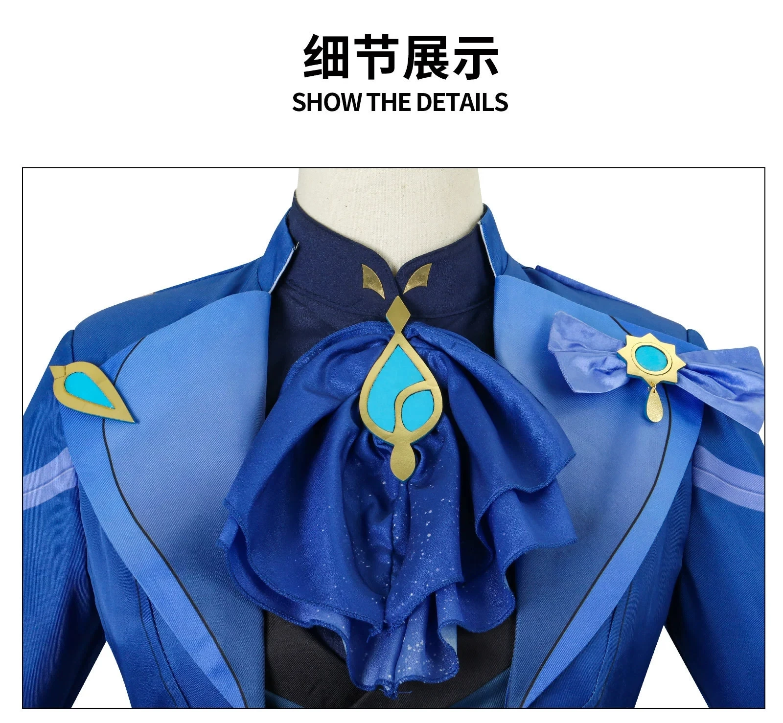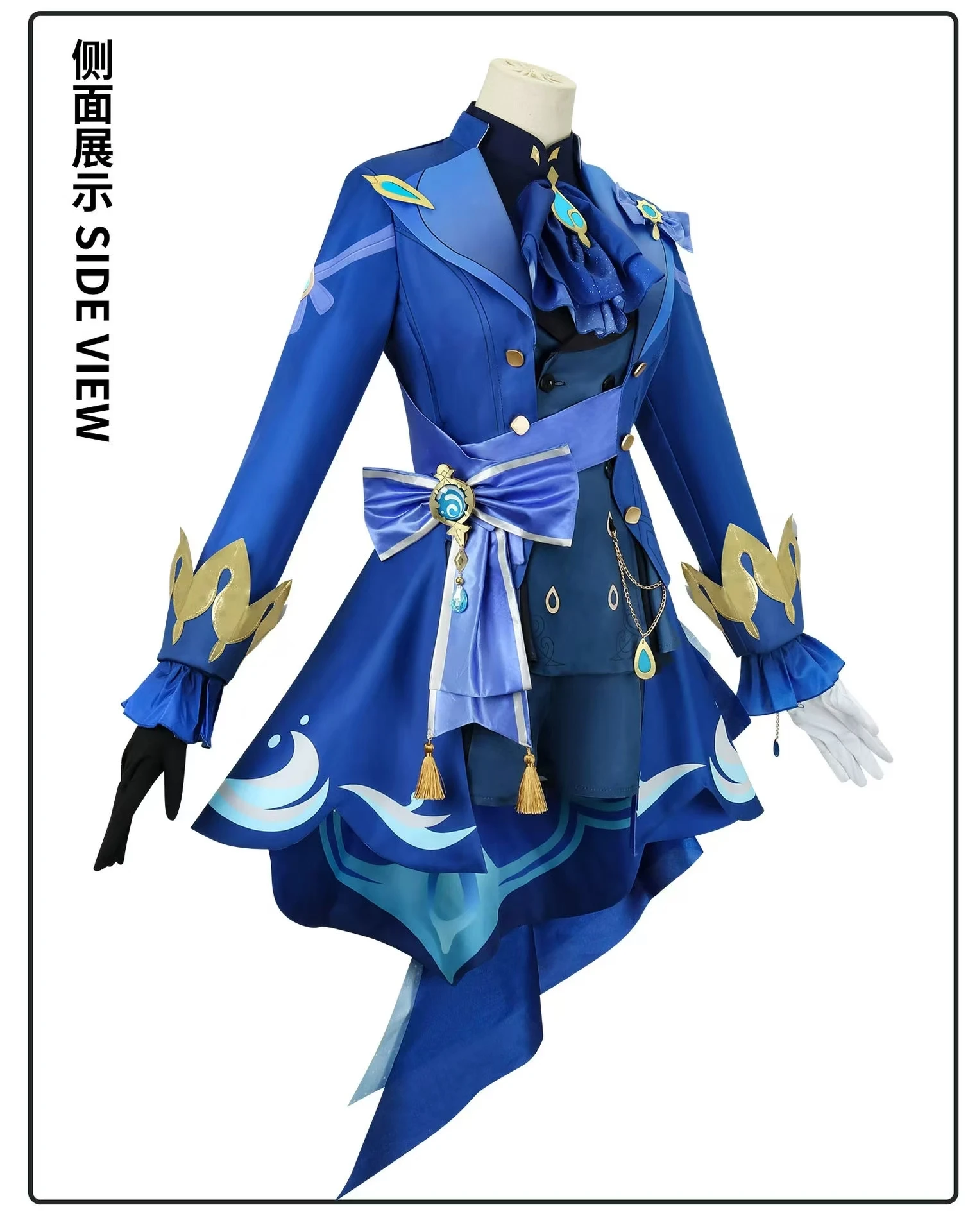 Furina Cosplay Costume Wig Genshin Impact Fontaine Focalors with Hat Black Suits High Heel Cosplay Shoes for Women Outfits