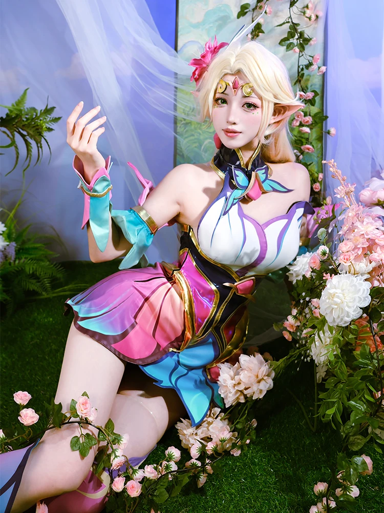 ROLECOS Game LOL Faerie Court Lux Cosplay Costume Game LOL Magical Faerie Lux Cosplay Outfit Halloween Women Suit New Skin