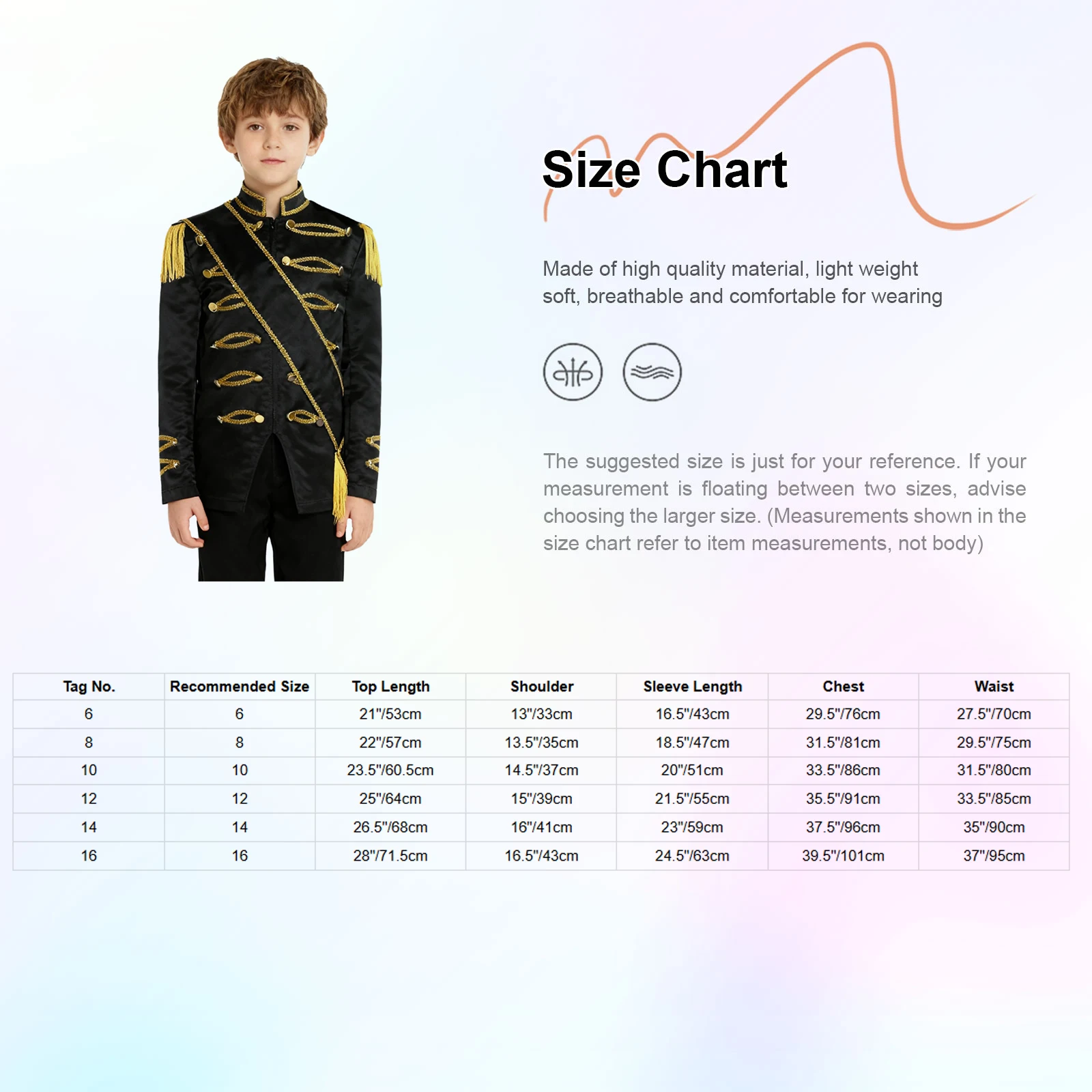 Made of 100% polyester, the jacket is lightweight and easy to move in, ideal for kids’ energetic performances.