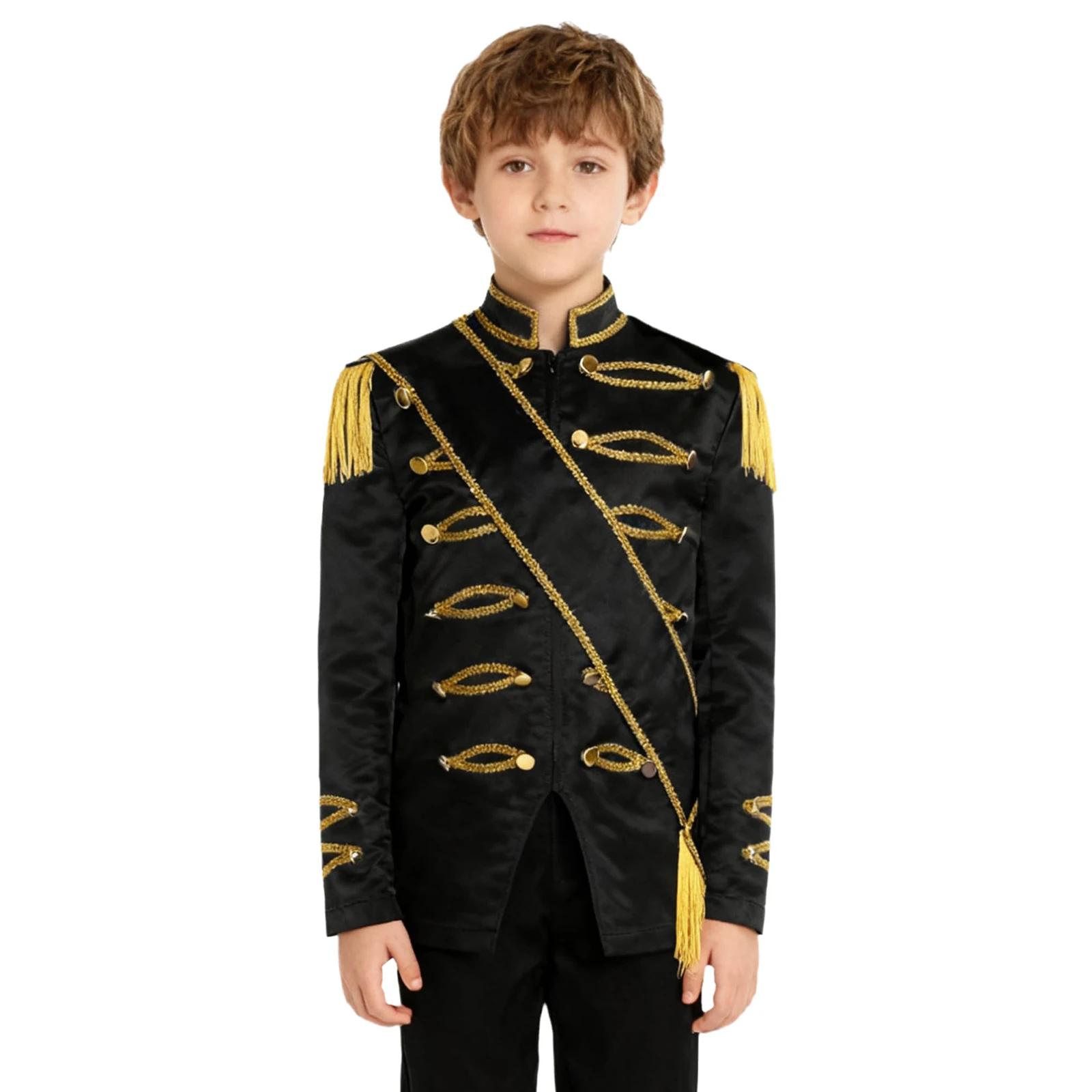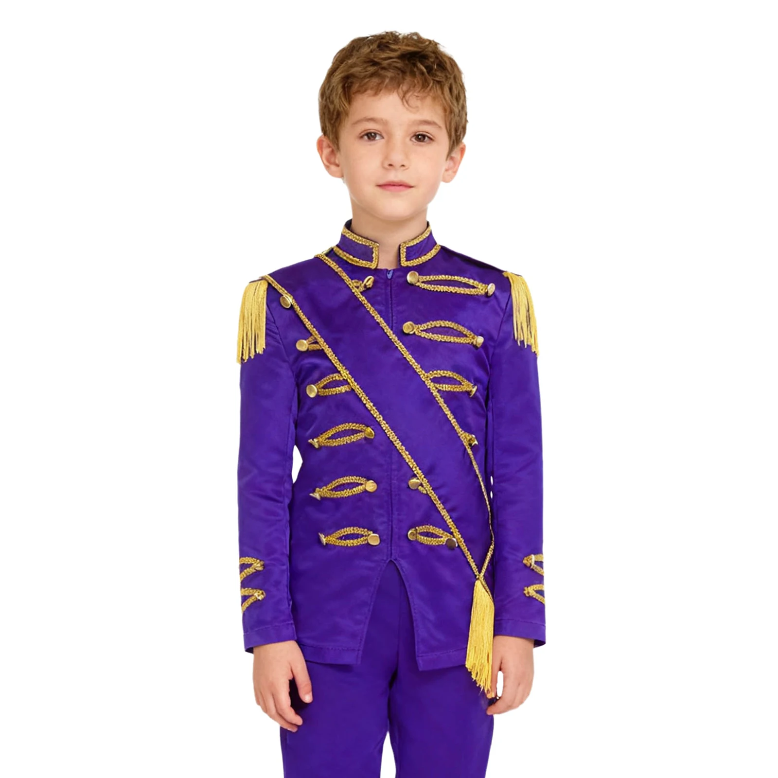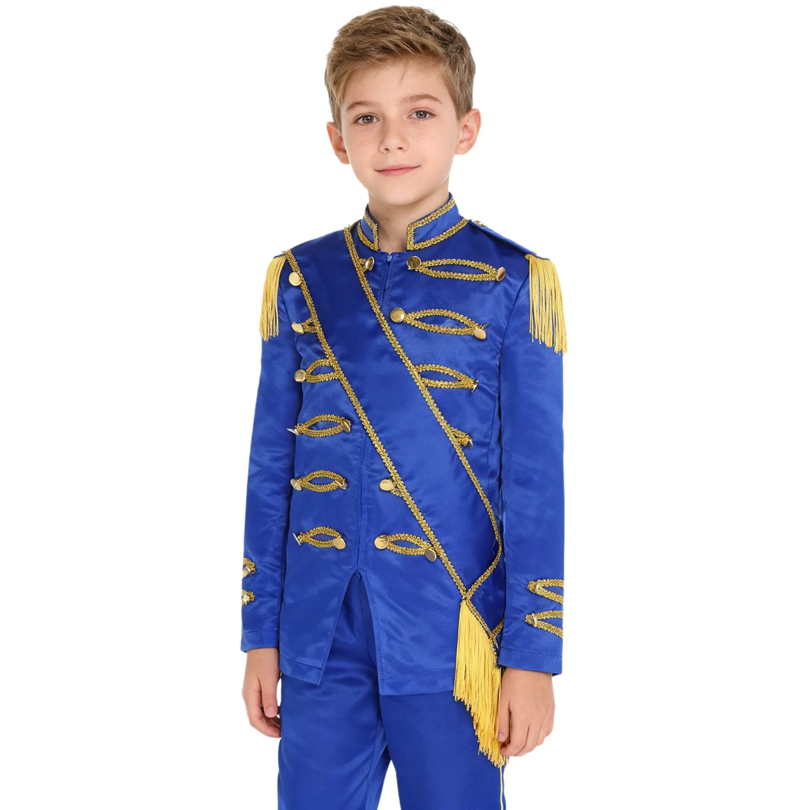 Tassel and golden braided tape details add a touch of glamour and elegance, making the kids stand out on the stage, following the current trend of eye-catching costumes.