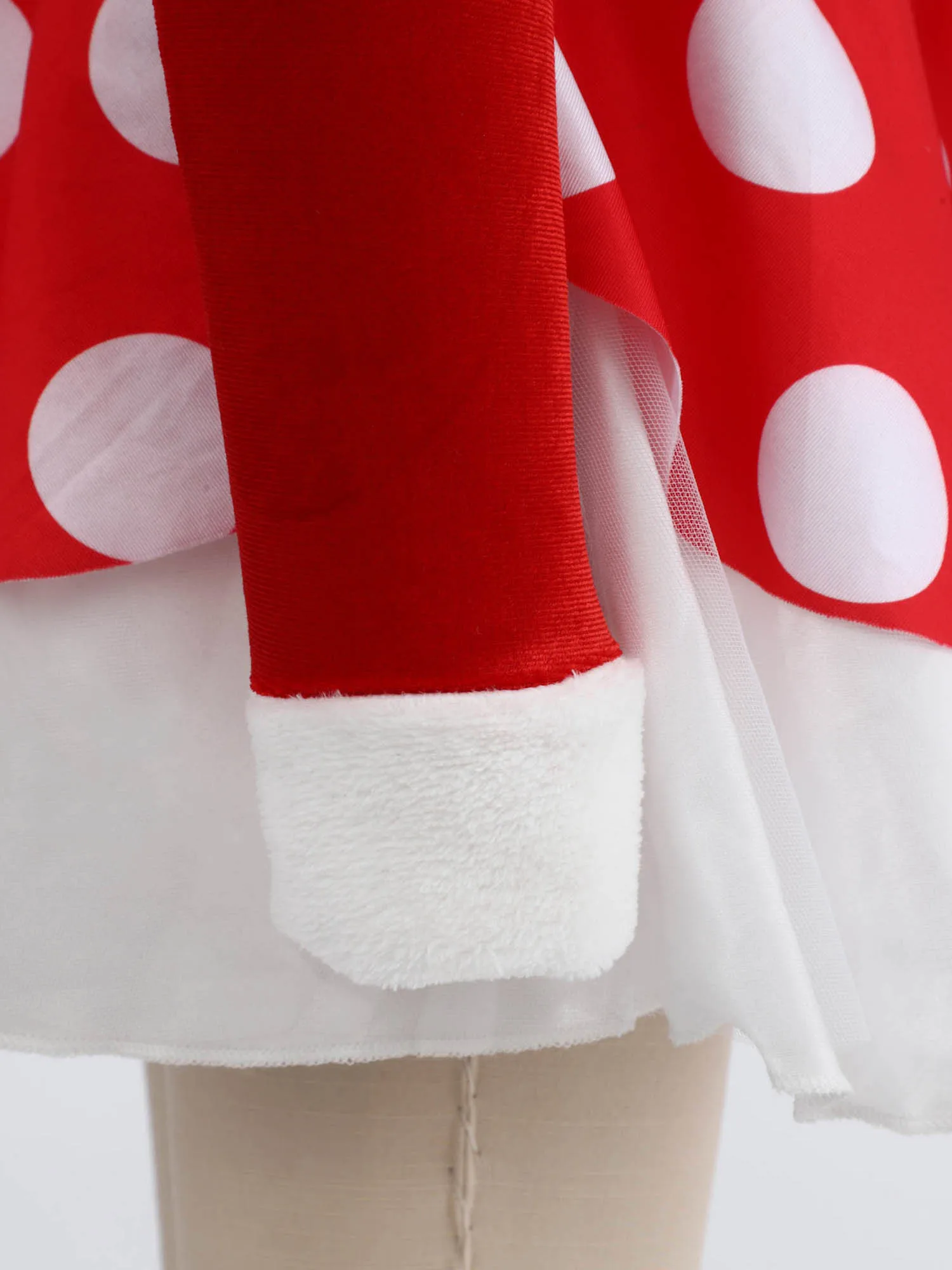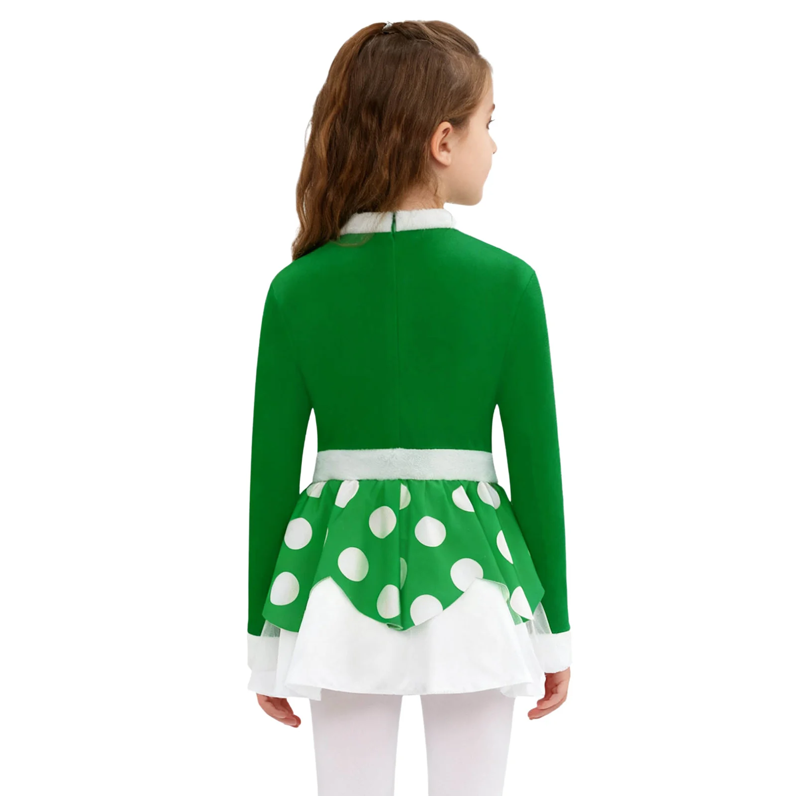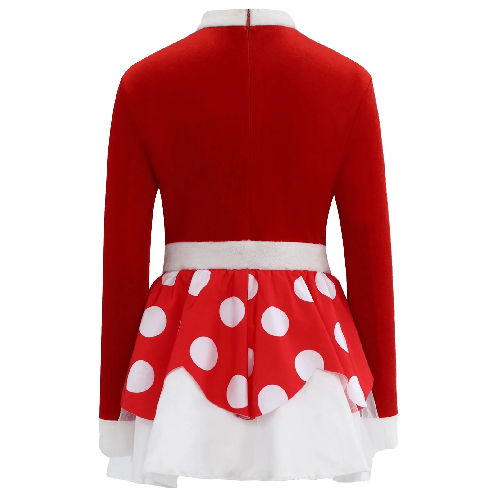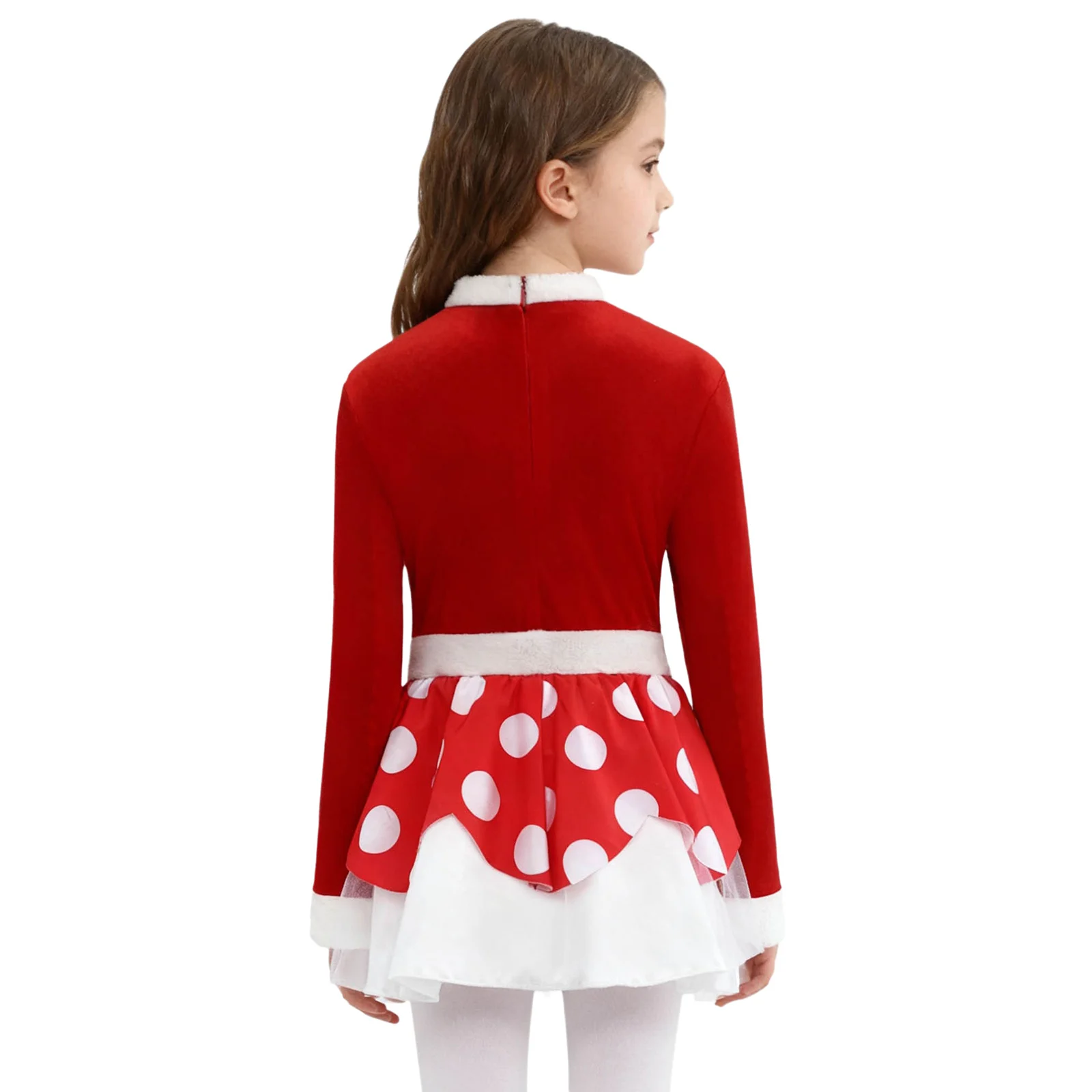Girls Candy Cane Christmas Cosplay Costume Ballet Tutu Dress Striped Santa Dress Long Sleeve Pompom Back Invisible Zipper Dress