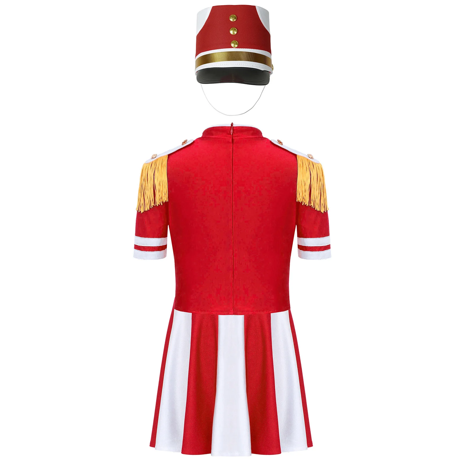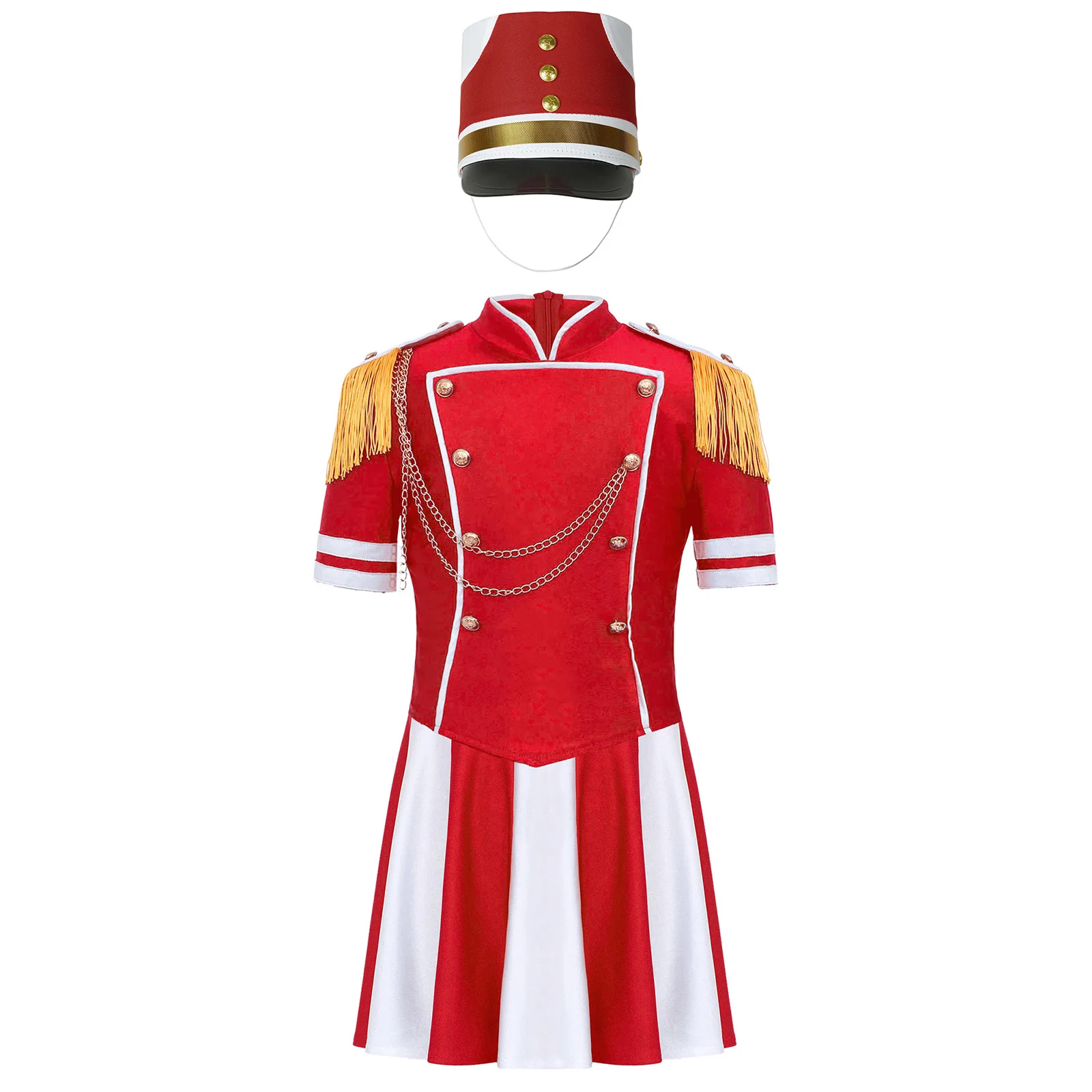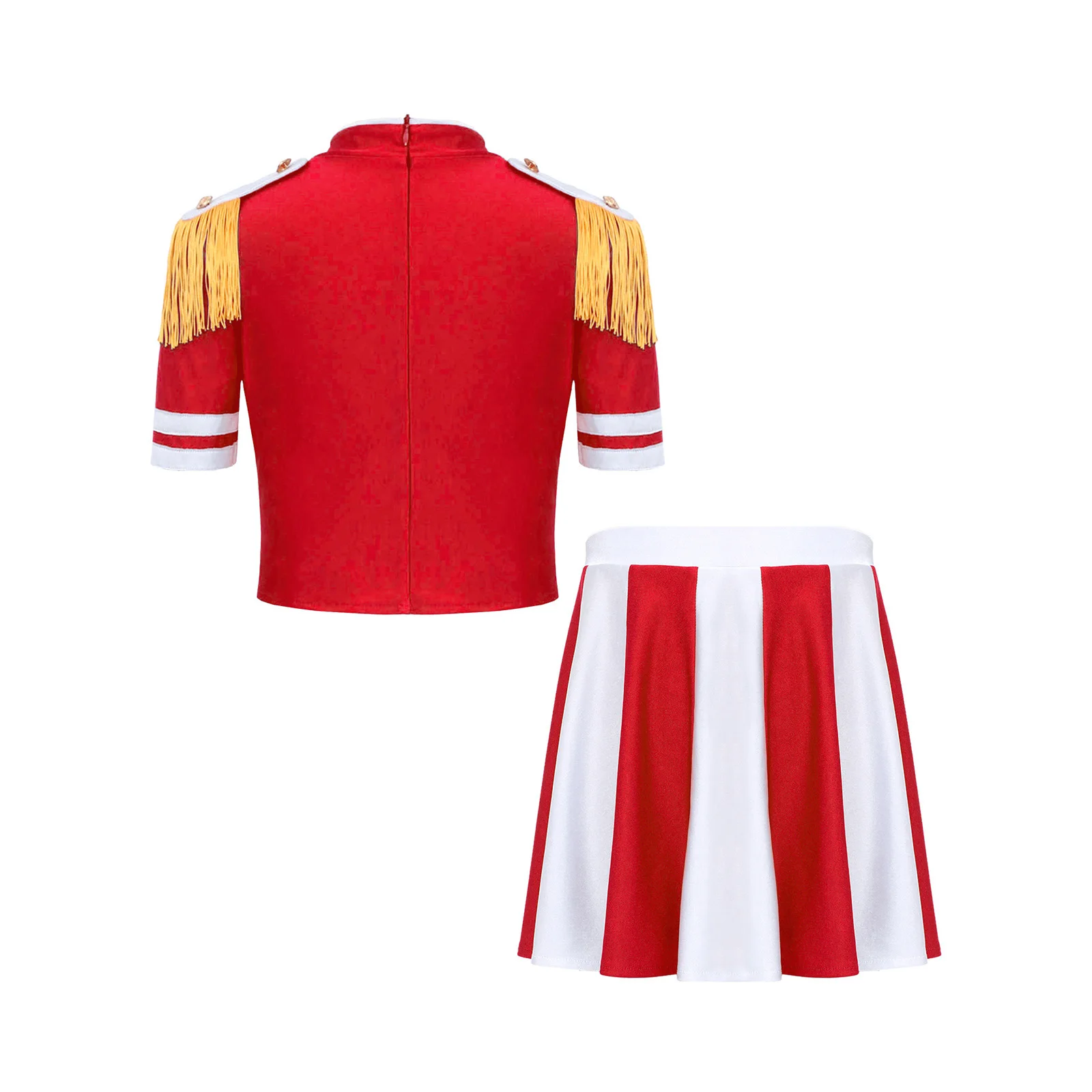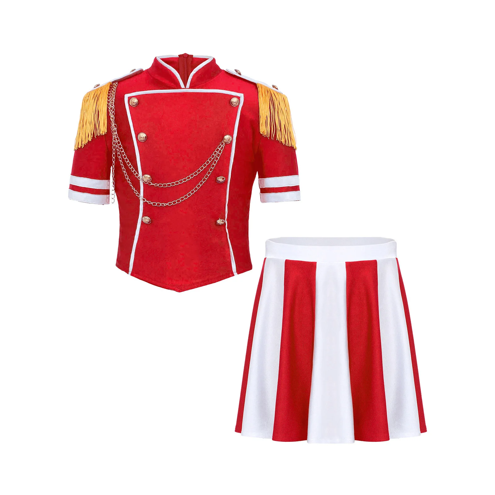 Girls Drum Majorette Uniform Marching Band Drummer Team Uniform Top with Skirt And Hat Circus Cosplay Costume Epaulette Tassels