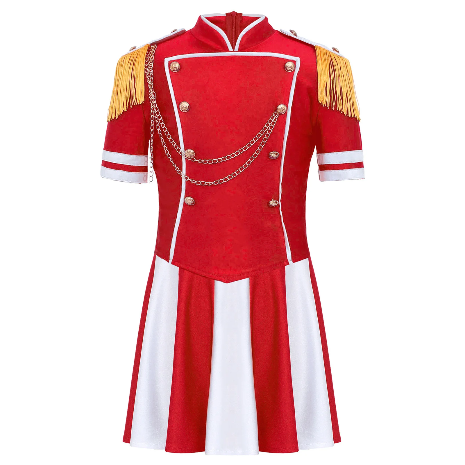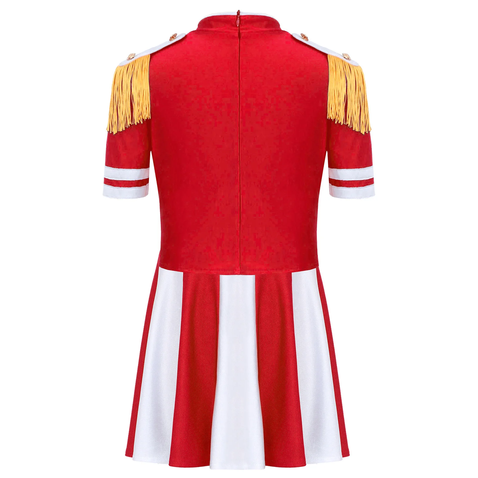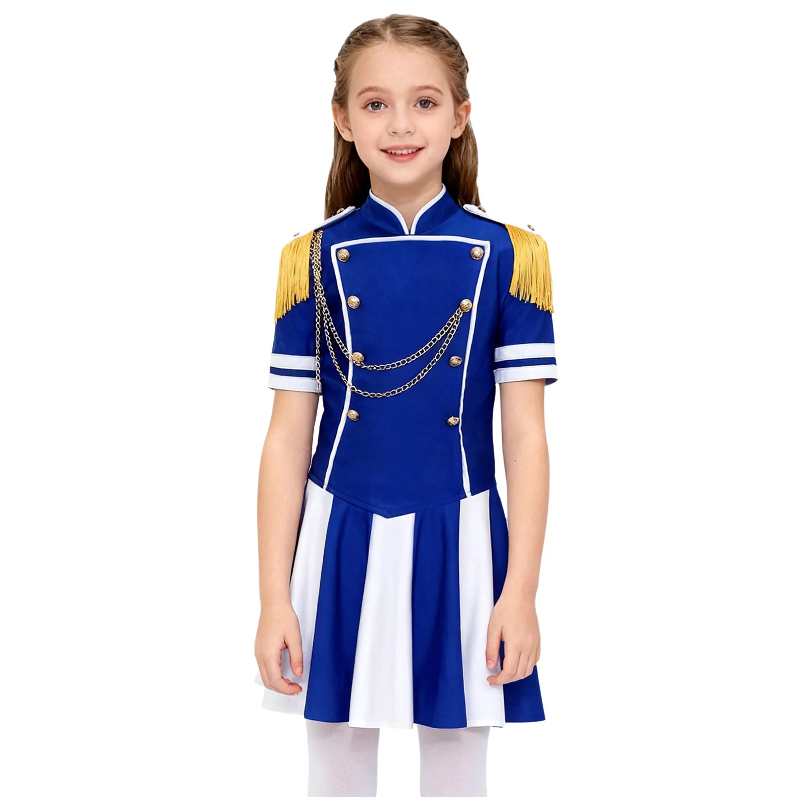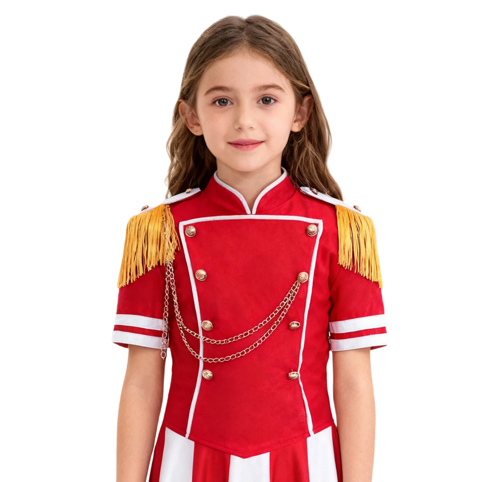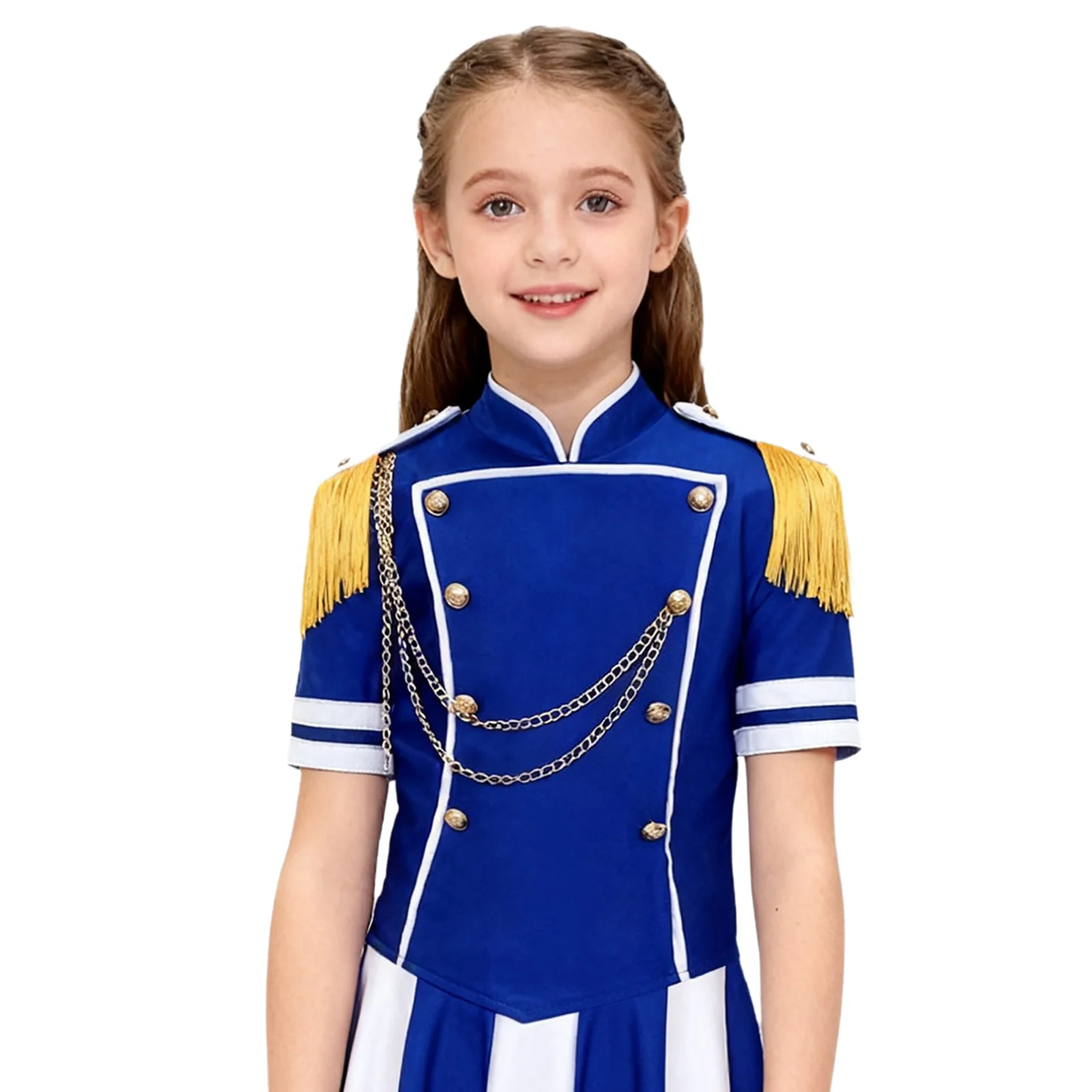 The short-sleeve top with epaulette tassels adds a touch of elegance and style, making the girl stand out in the marching band.
