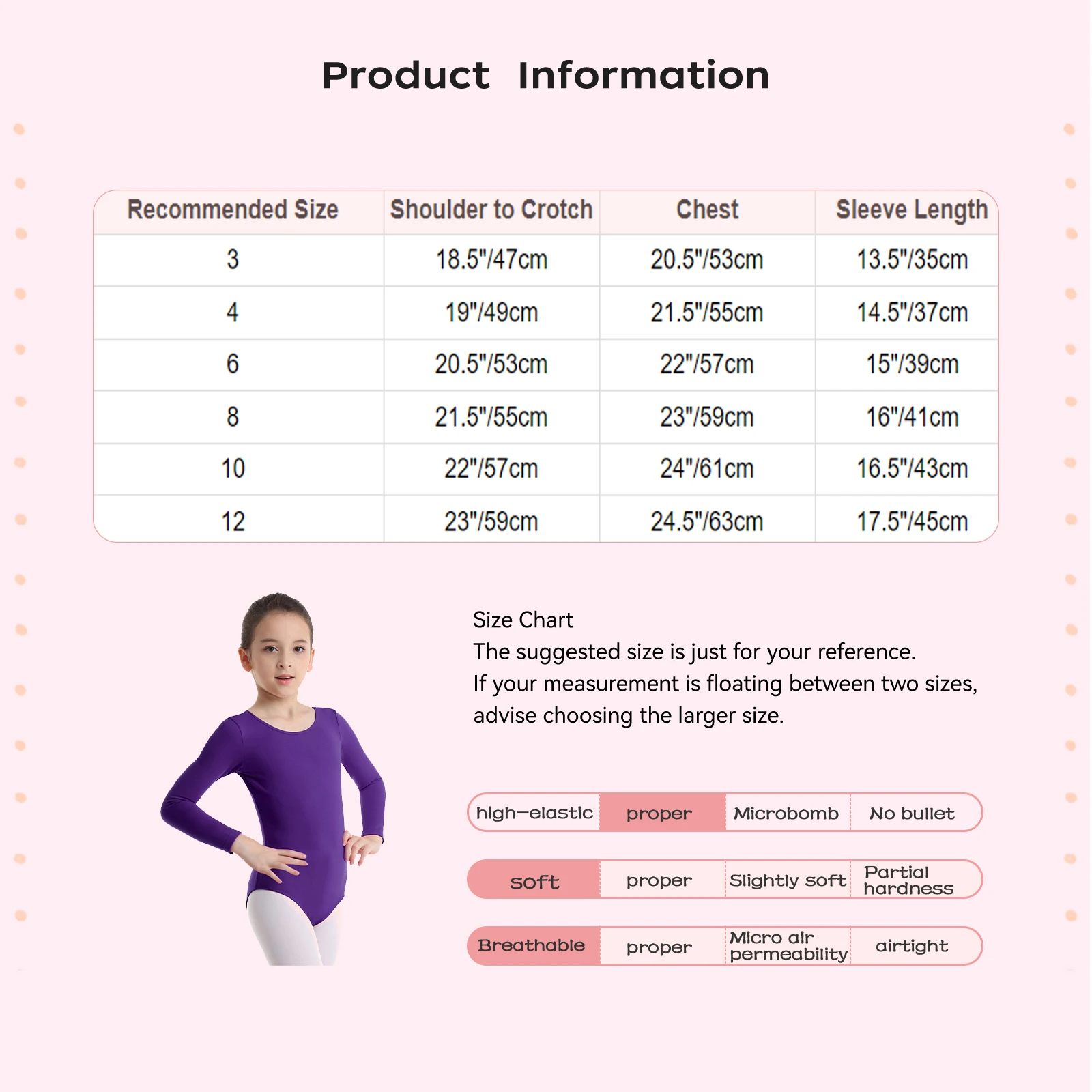 Girls Gymnastic Ballet Jersey Leotard Costume Long Sleeve Solid Color Dance Leotard Bodysuit Ballet Dancer Leotard Bodysuit