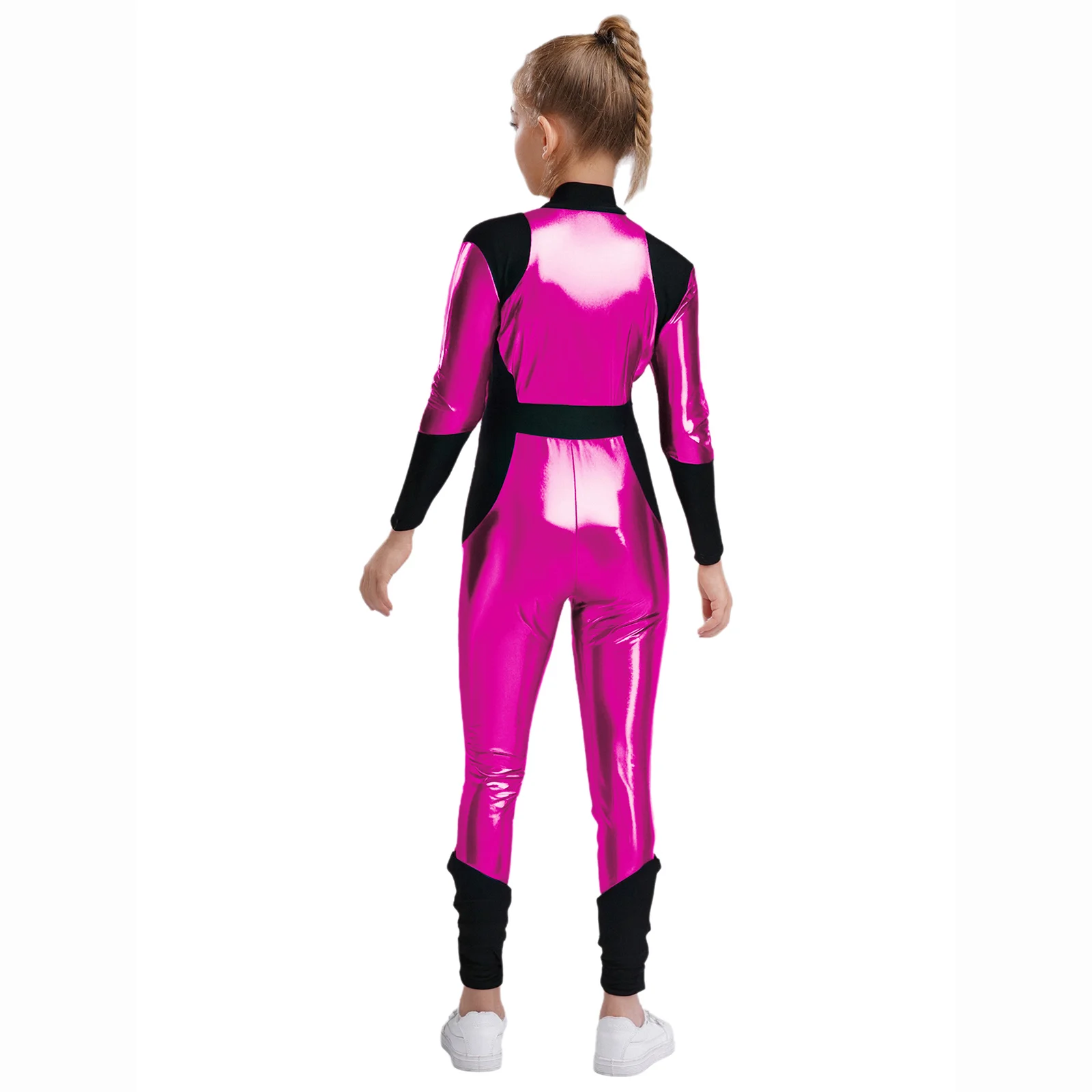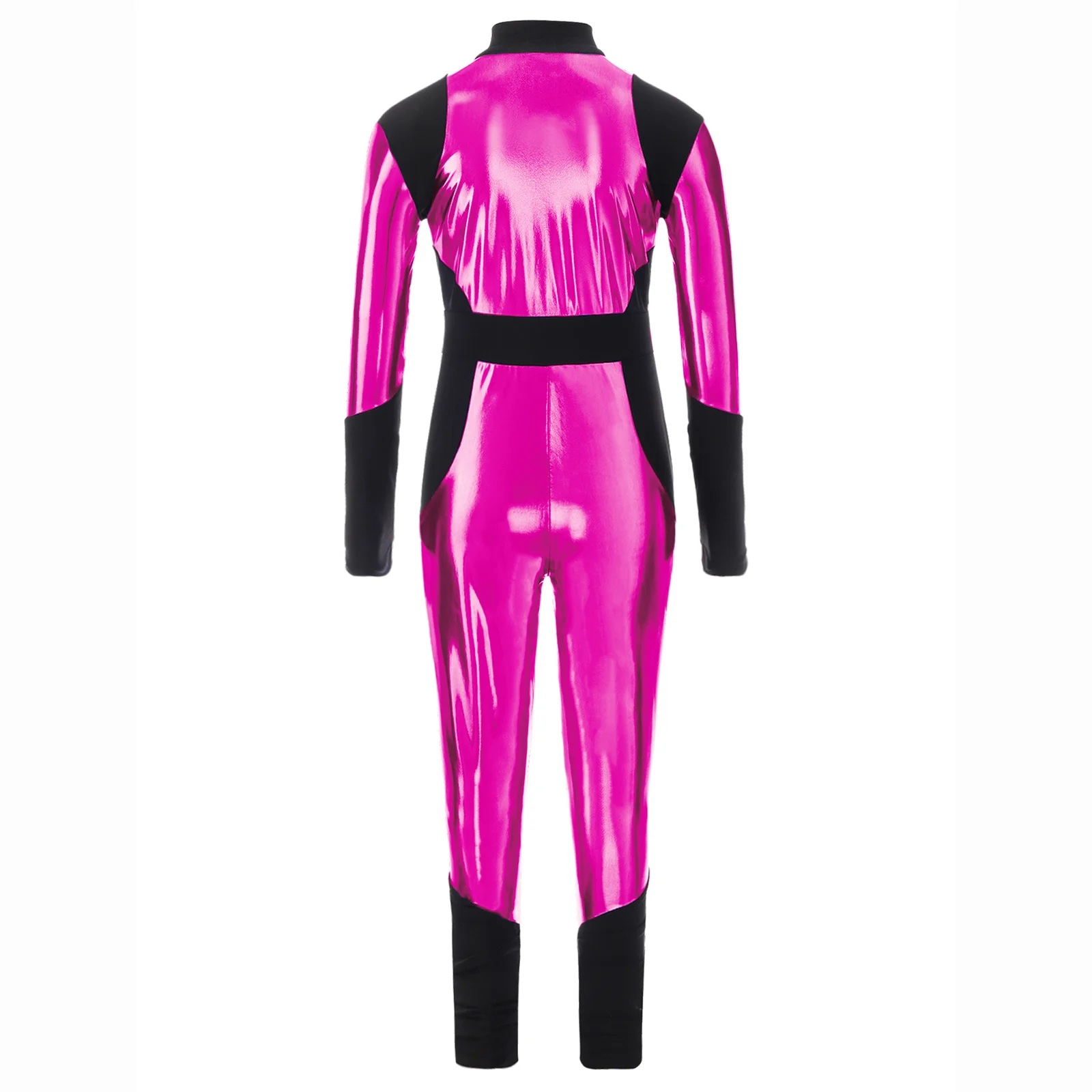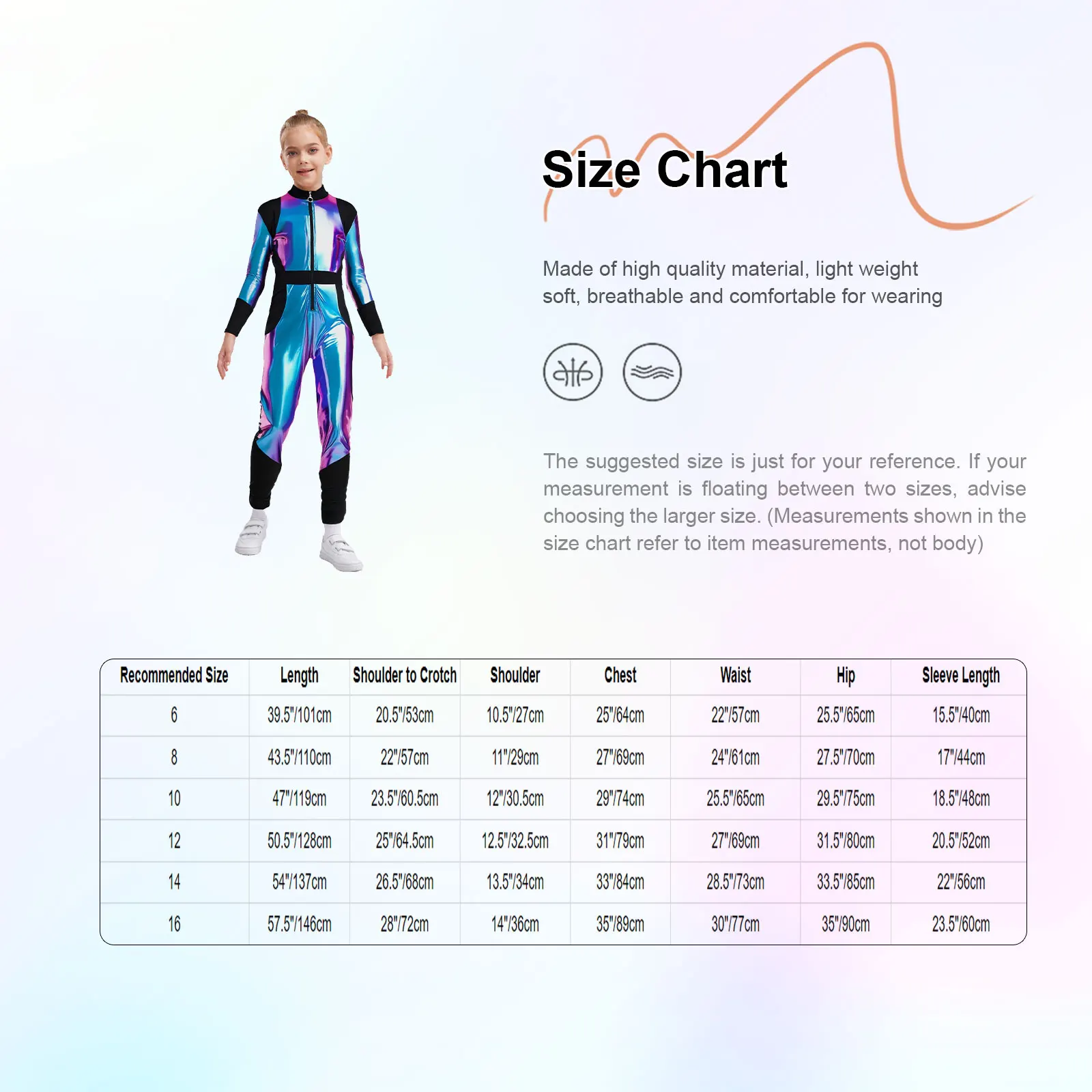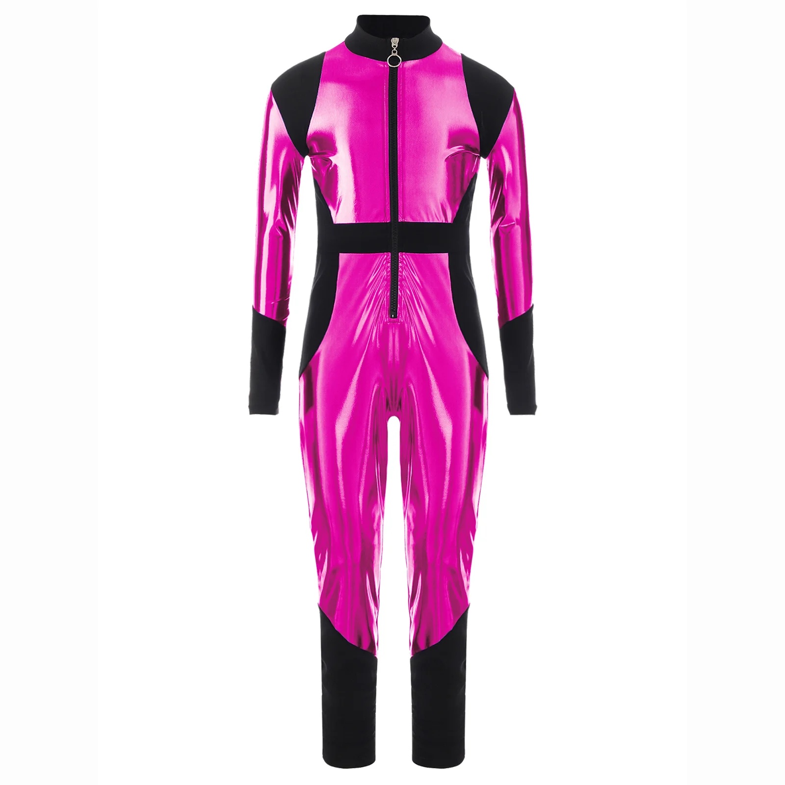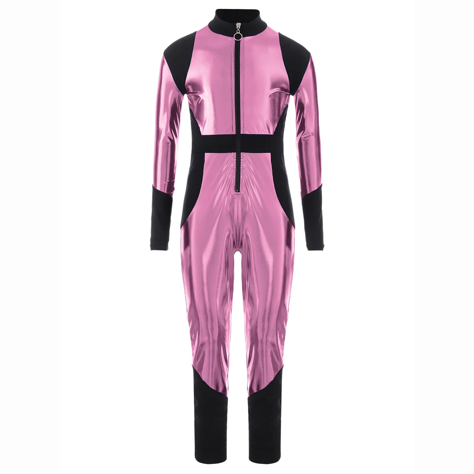 Girls Halloween Alien Outer Space Cadet Cosplay Costume Shiny Metallic Zipper Astronaut Jumpsuit Athletic Robot Bodysuit