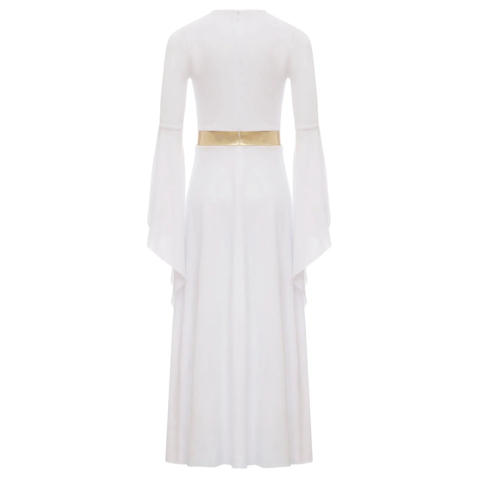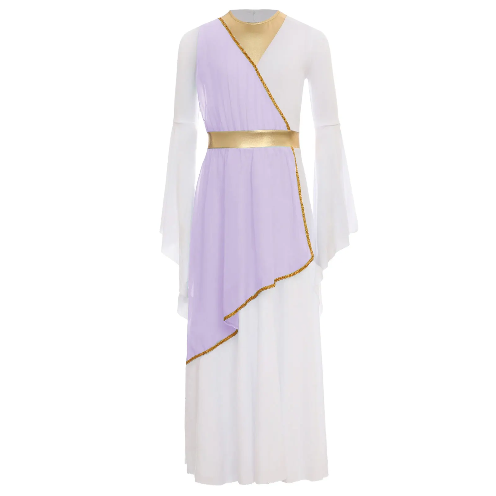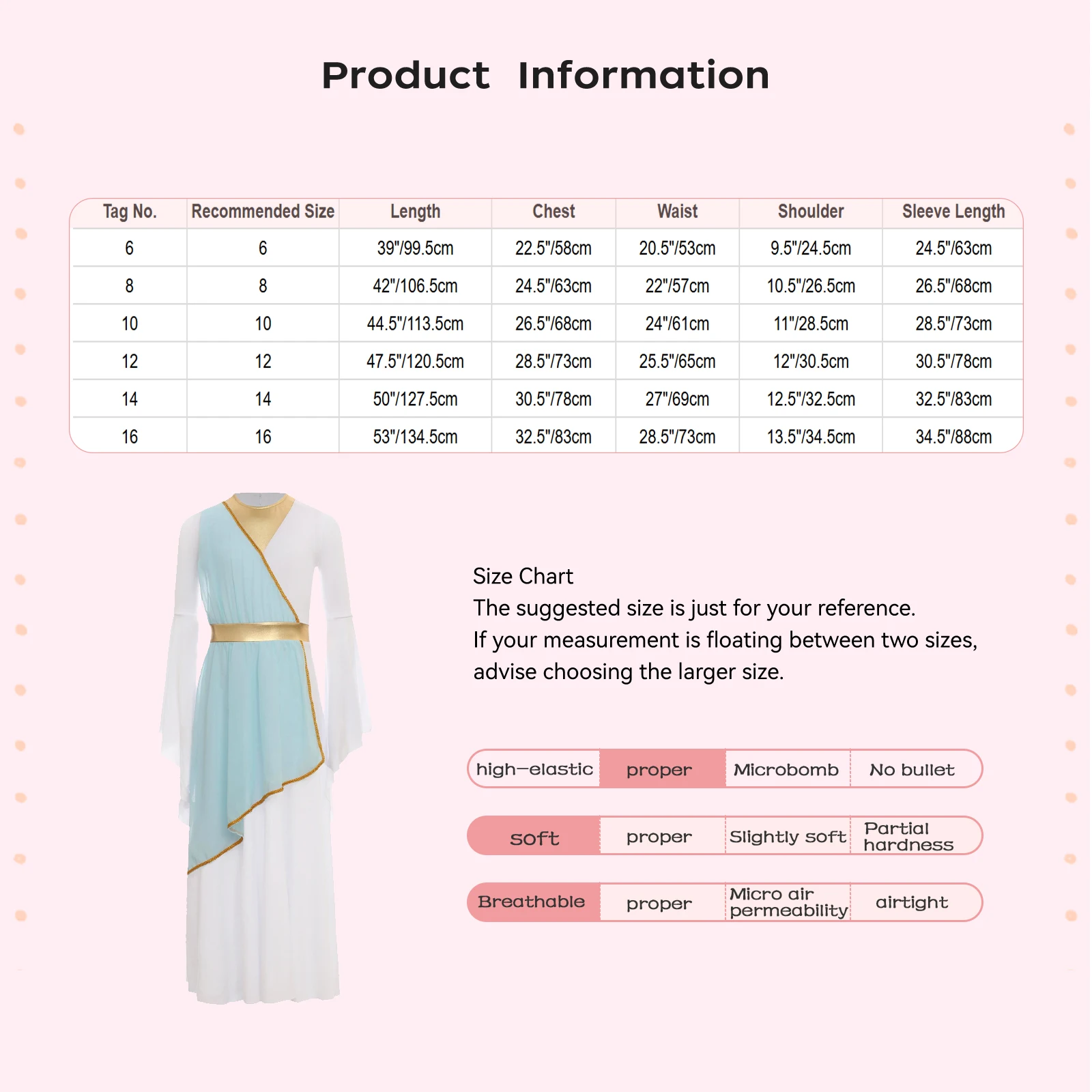 Girls Halloween Ancient Greek Princess Roman Toga Dress Cosplay Costume Long Sleeve Church Choir Robe Tunic Overlay Dress