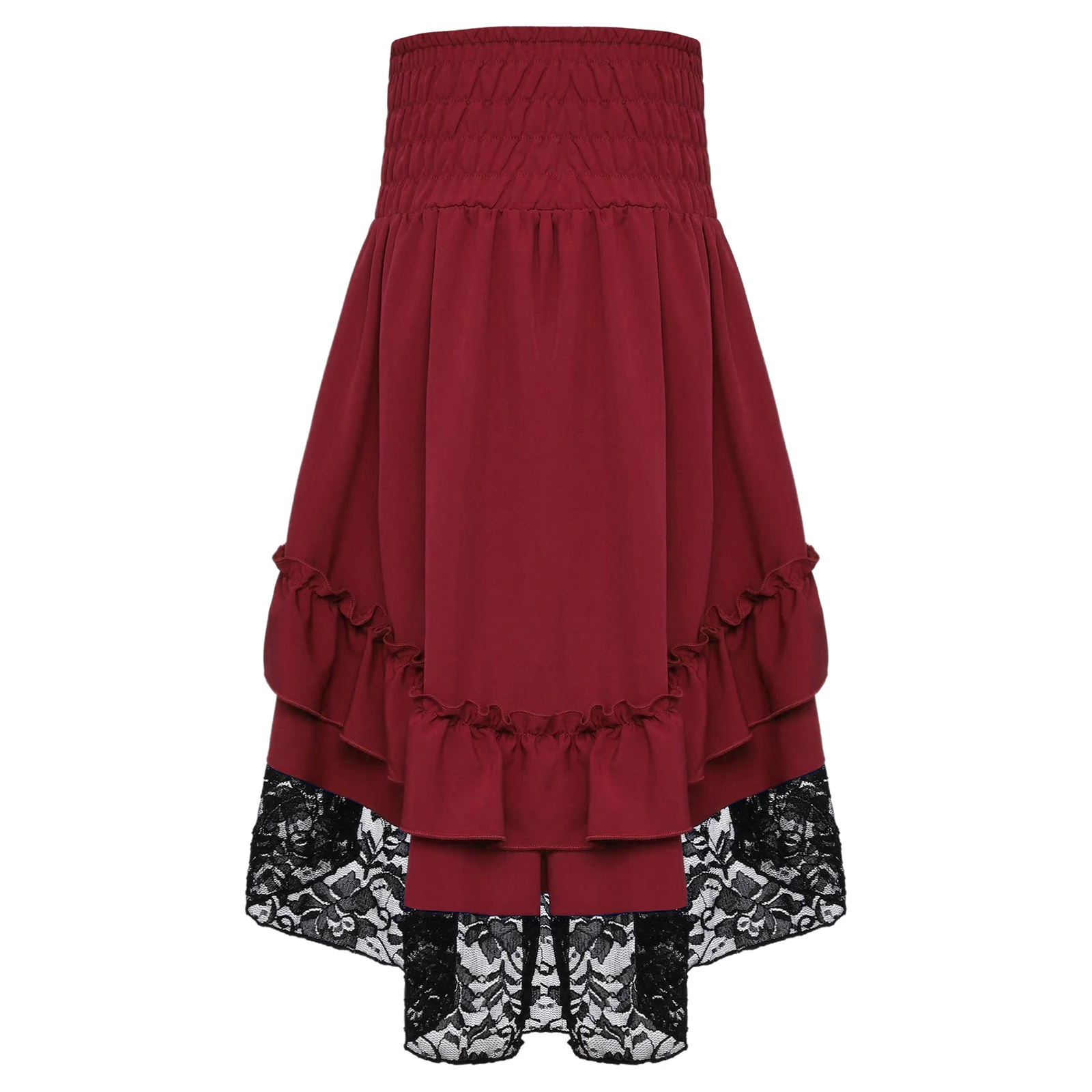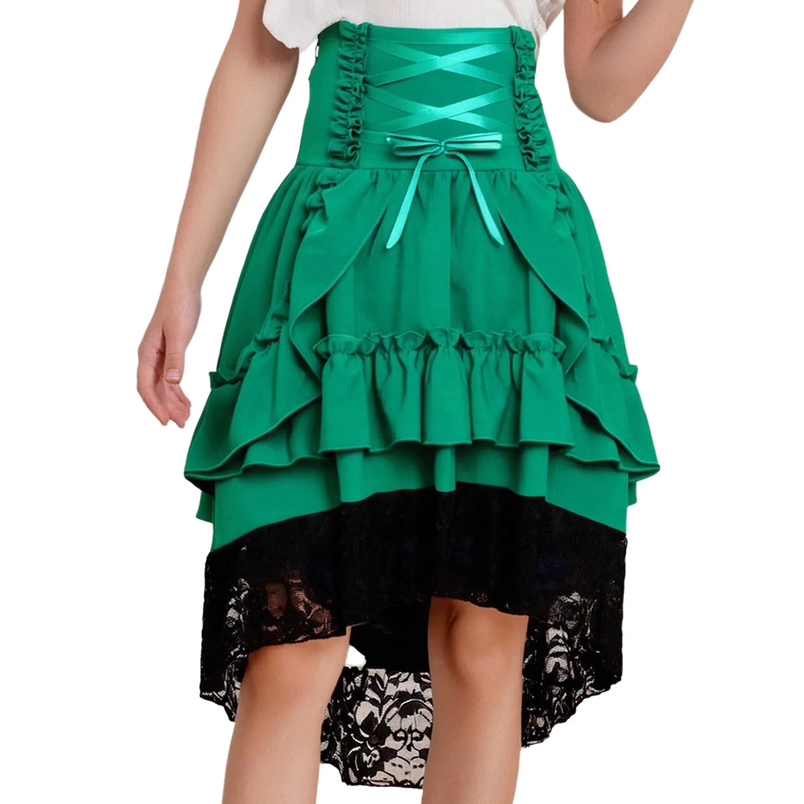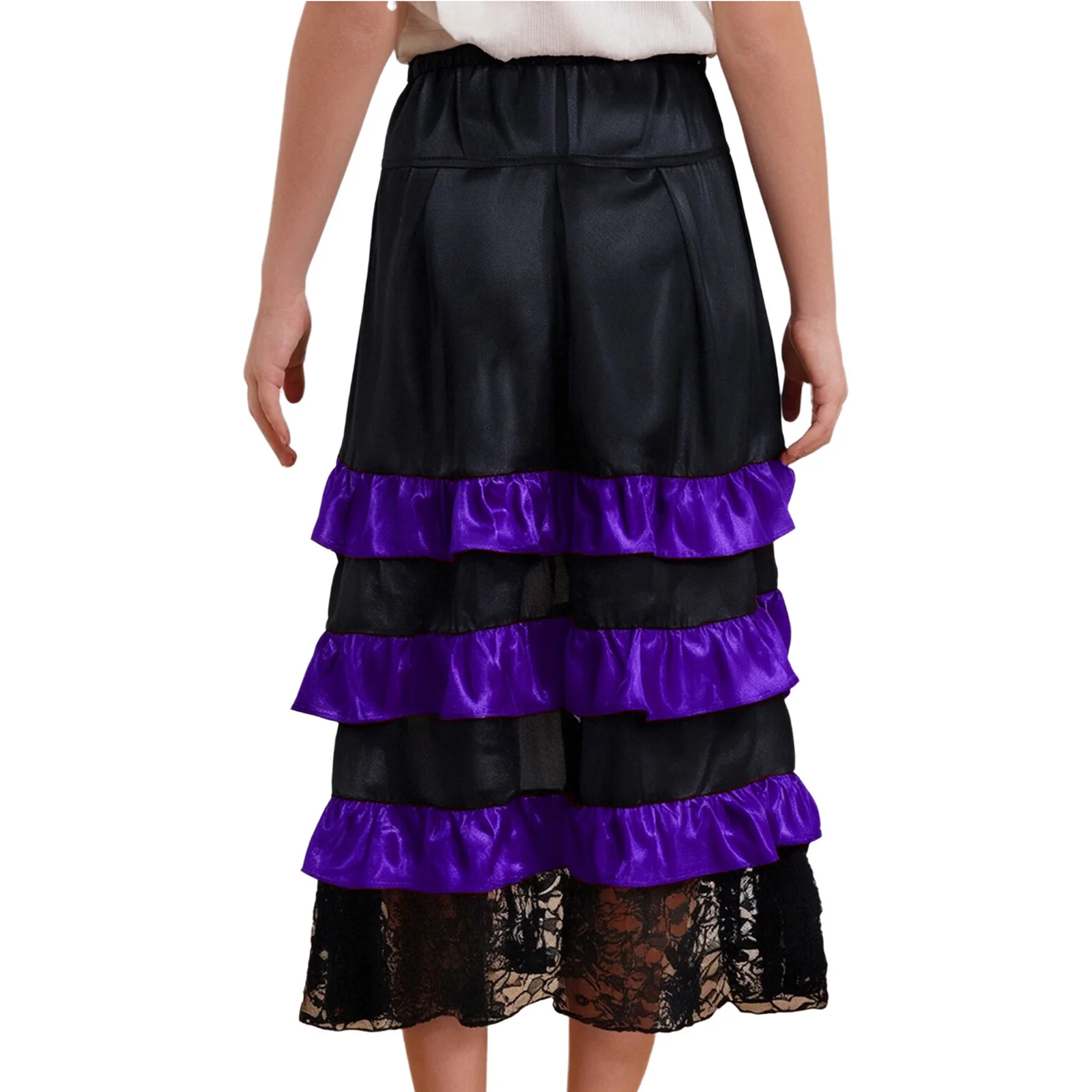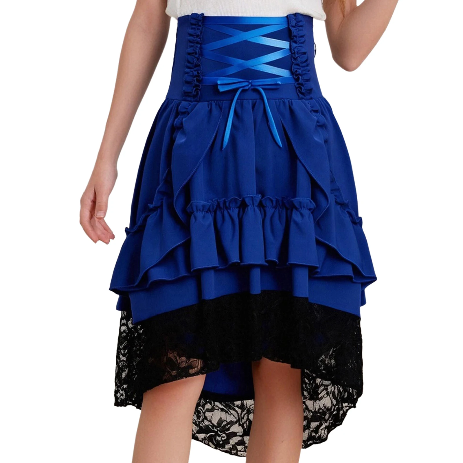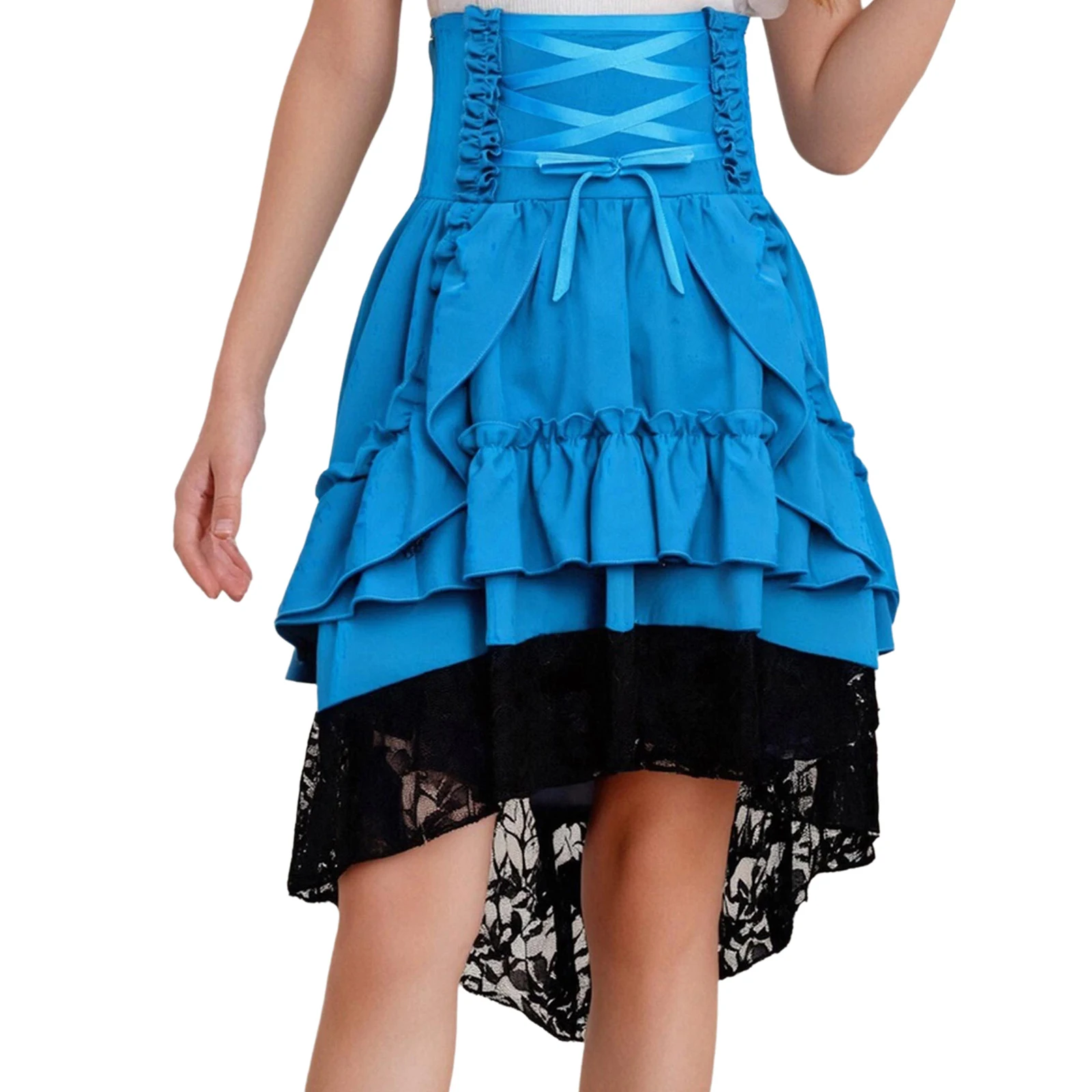 Girls Medieval Skirt Cosplay Costume Halloween Outfit Tiered Ruffle Skirt Ruched Flounce Lace Skirt Victorian Skirt