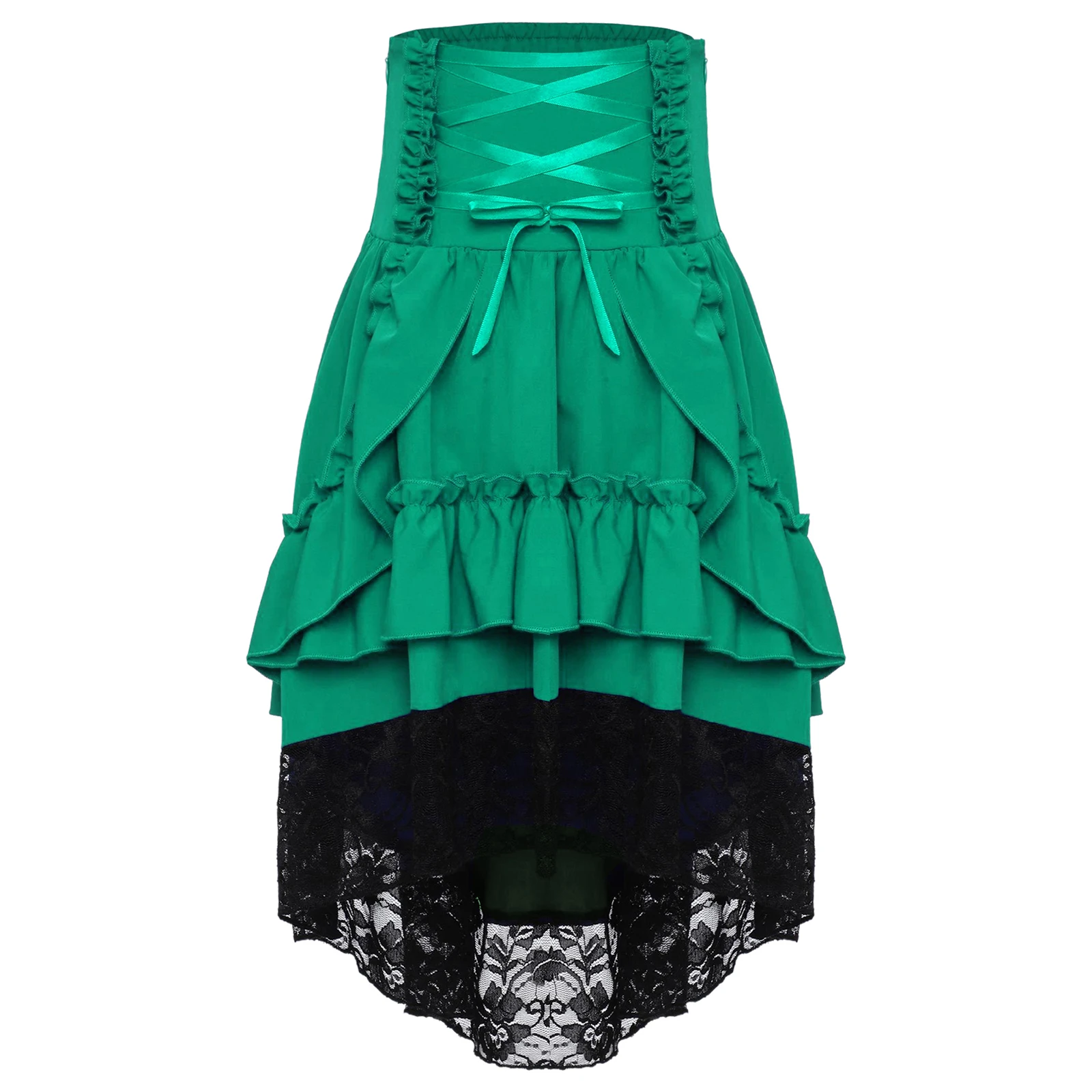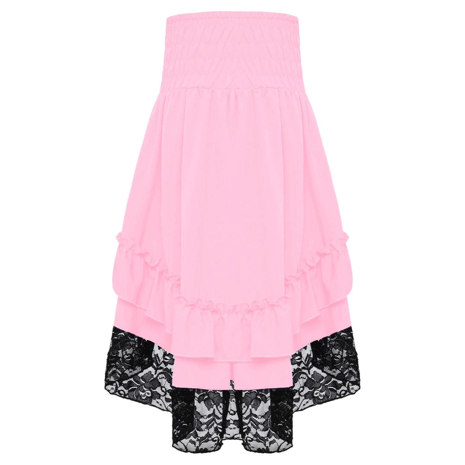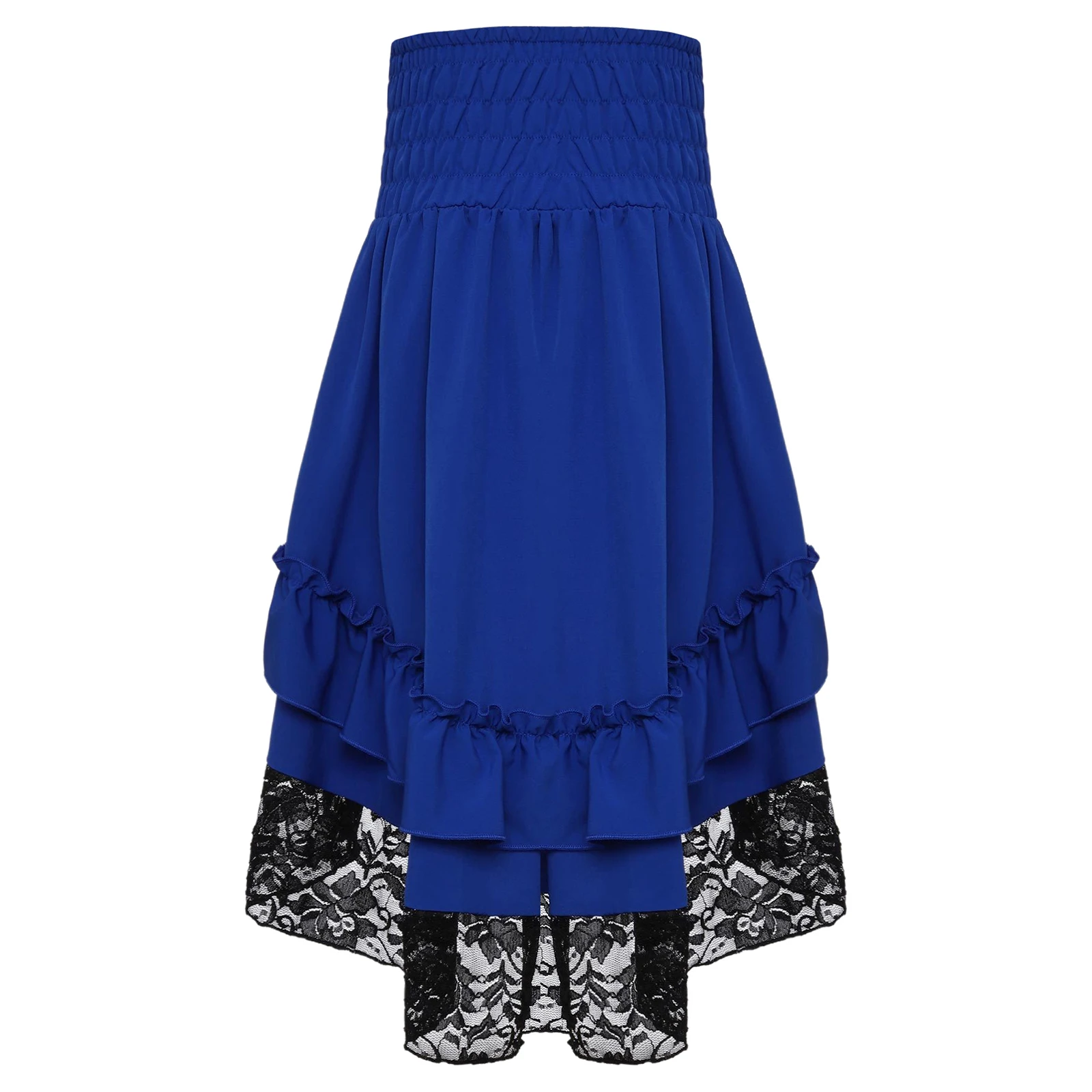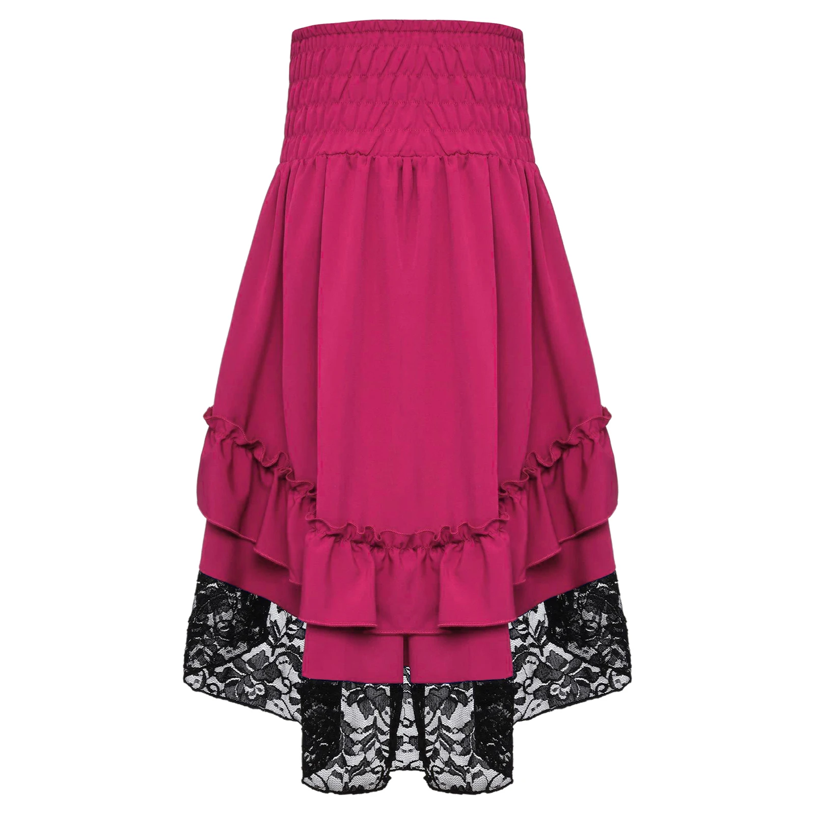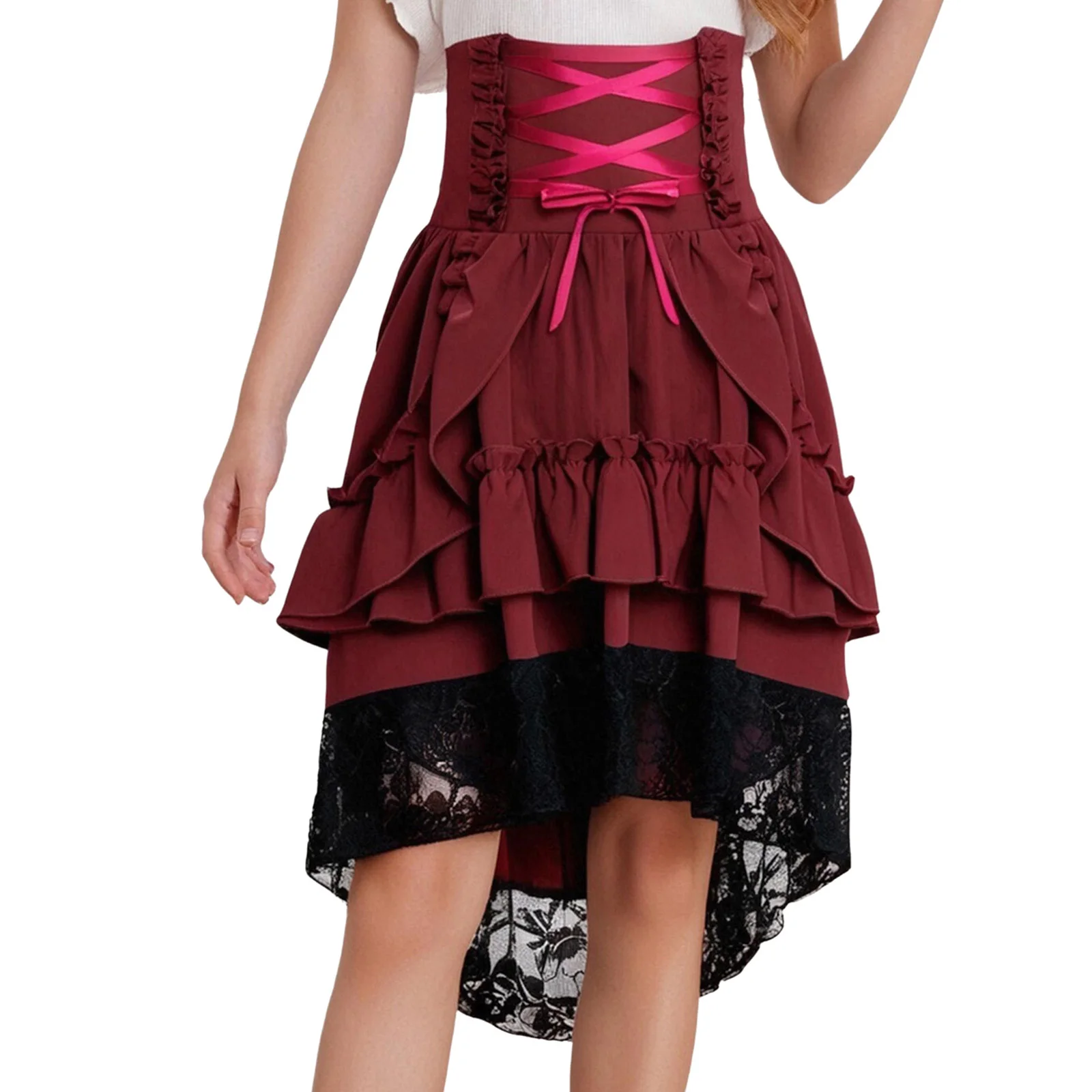 Girls Medieval Skirt Cosplay Costume Halloween Outfit Tiered Ruffle Skirt Ruched Flounce Lace Skirt Victorian Skirt