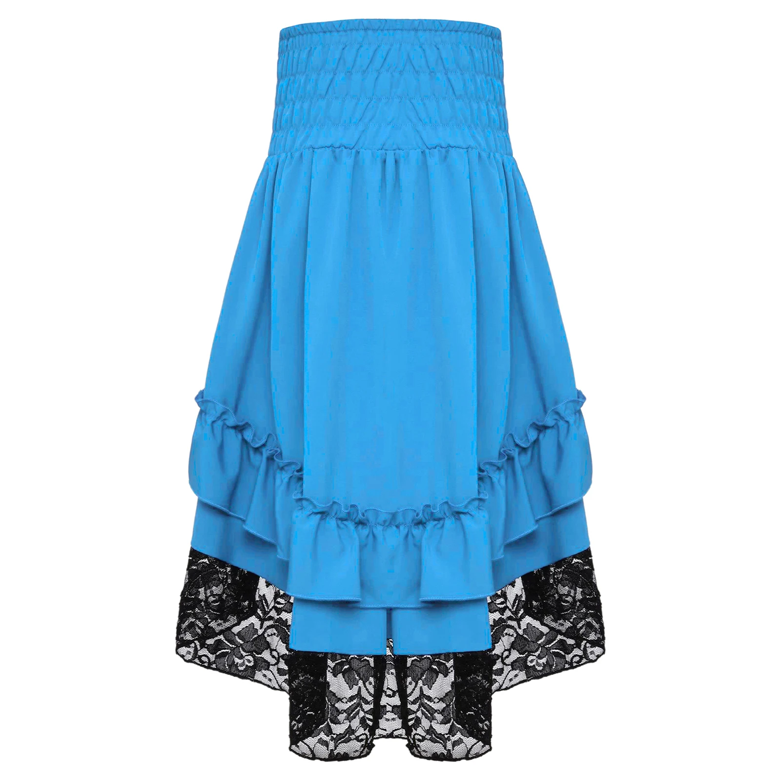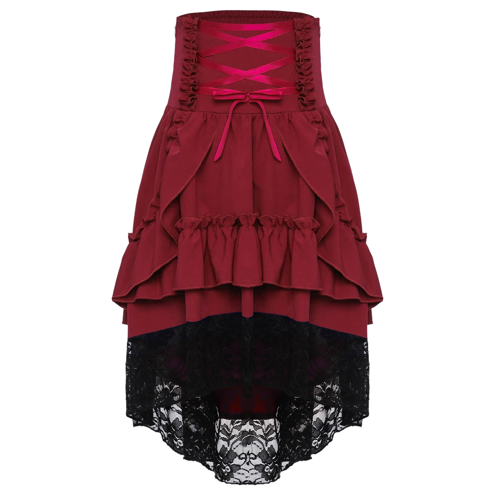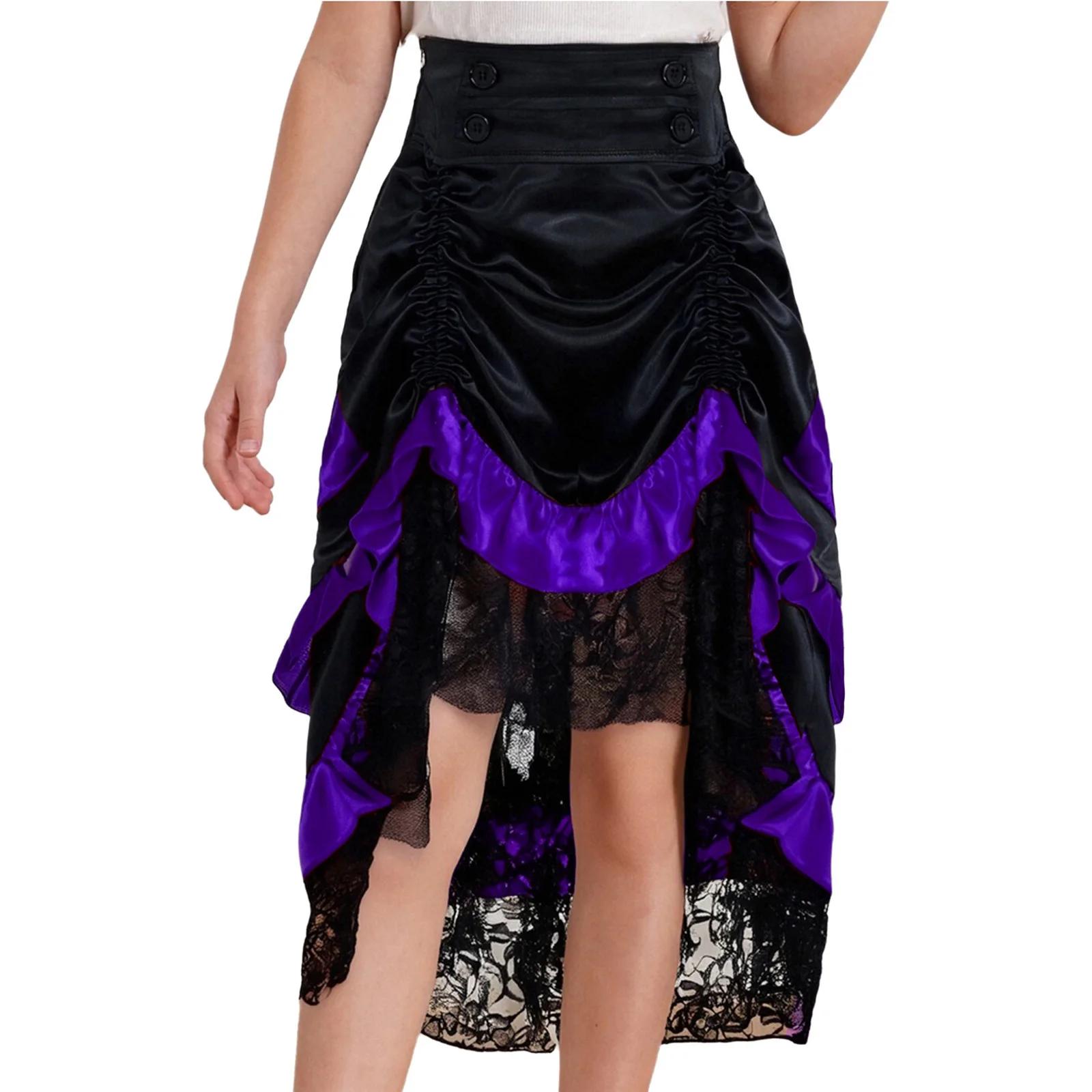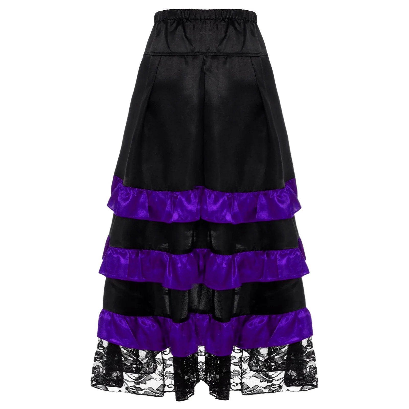 Girls Medieval Skirt Cosplay Costume Halloween Outfit Tiered Ruffle Skirt Ruched Flounce Lace Skirt Victorian Skirt