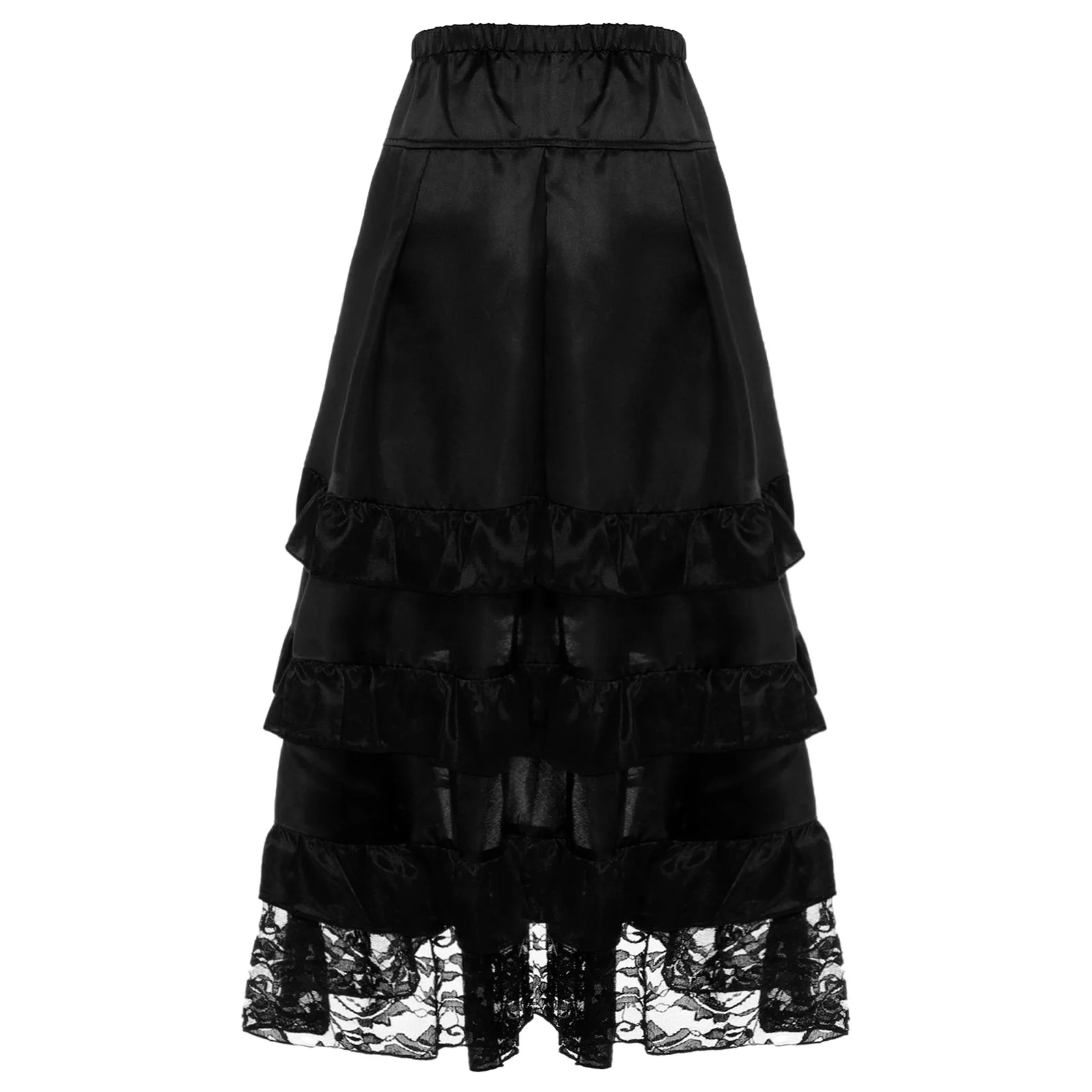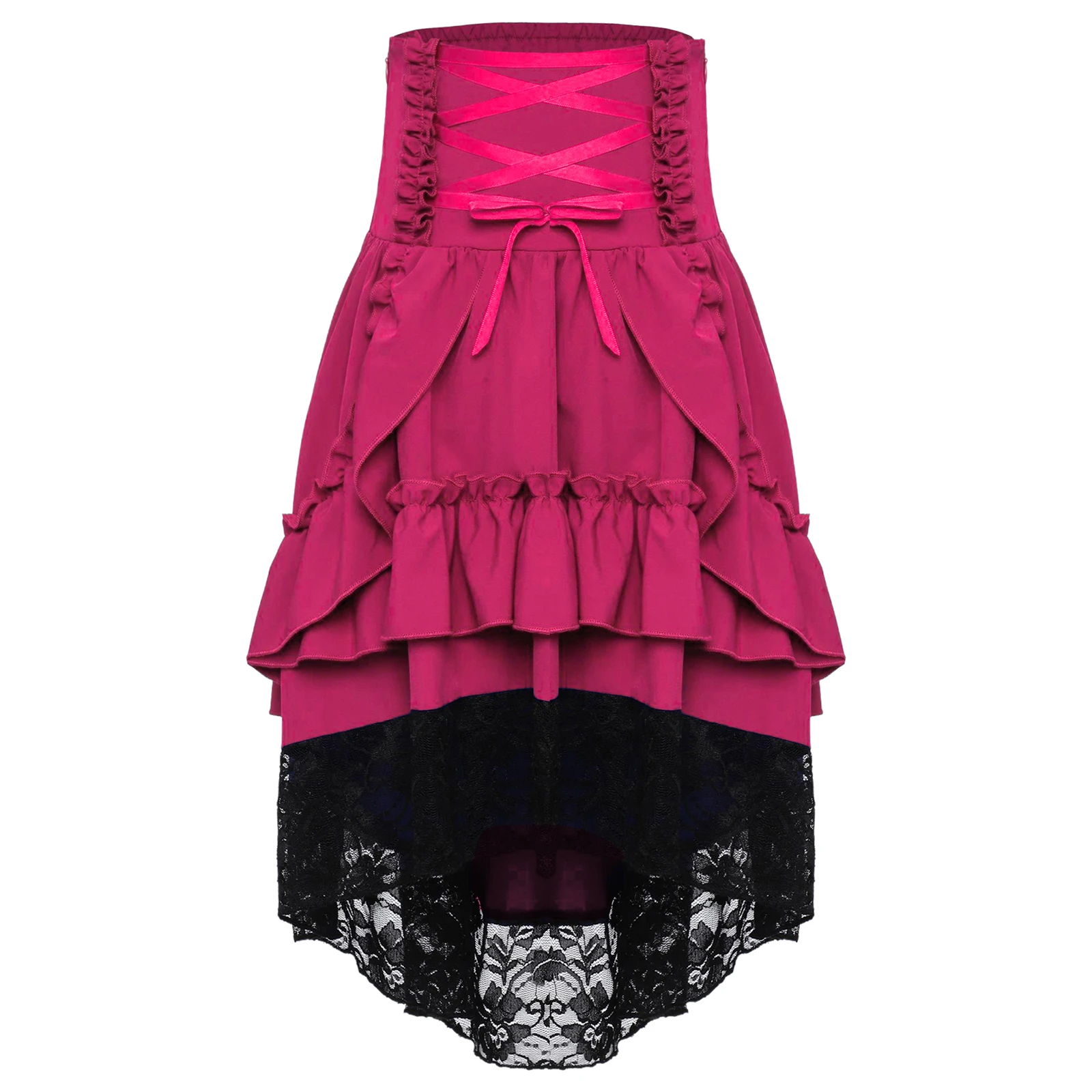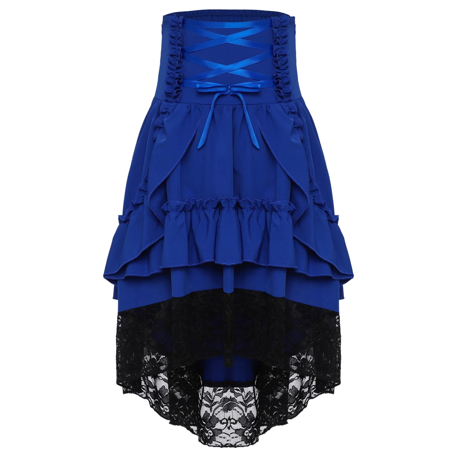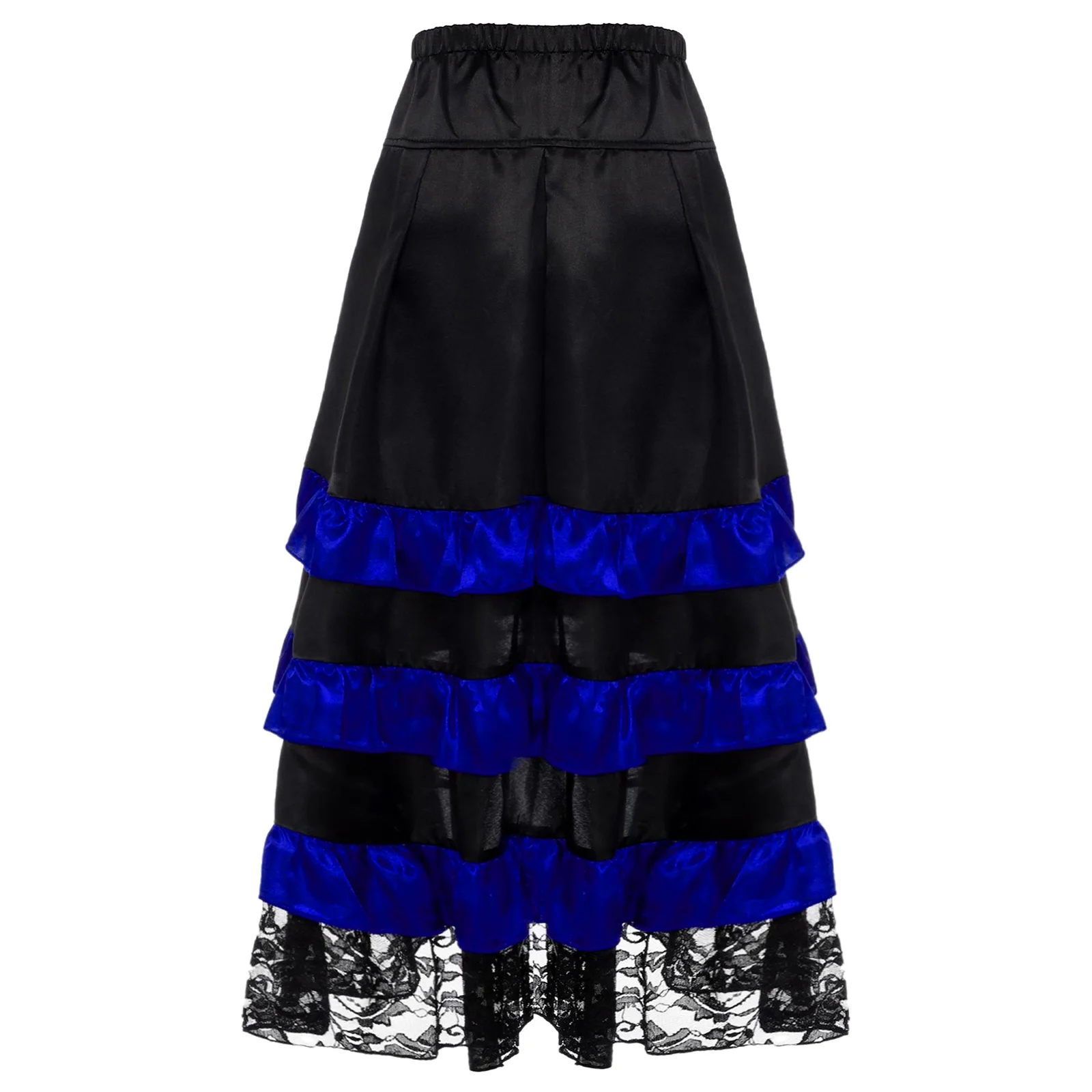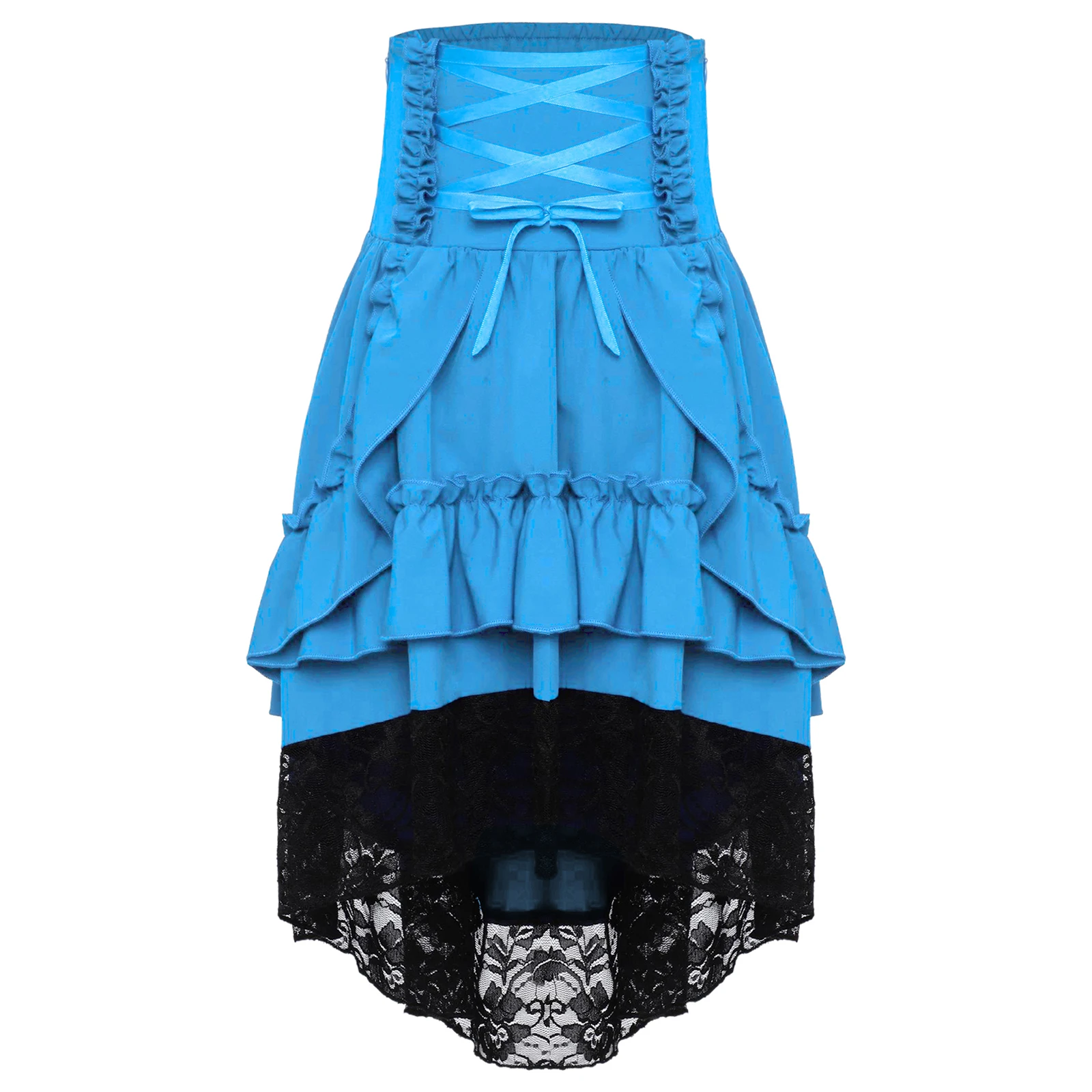 Girls Medieval Skirt Cosplay Costume Halloween Outfit Tiered Ruffle Skirt Ruched Flounce Lace Skirt Victorian Skirt