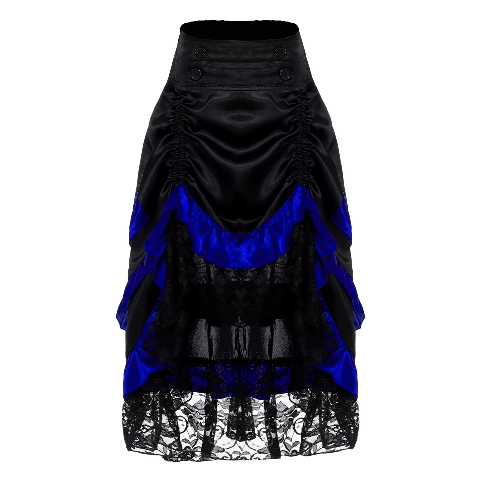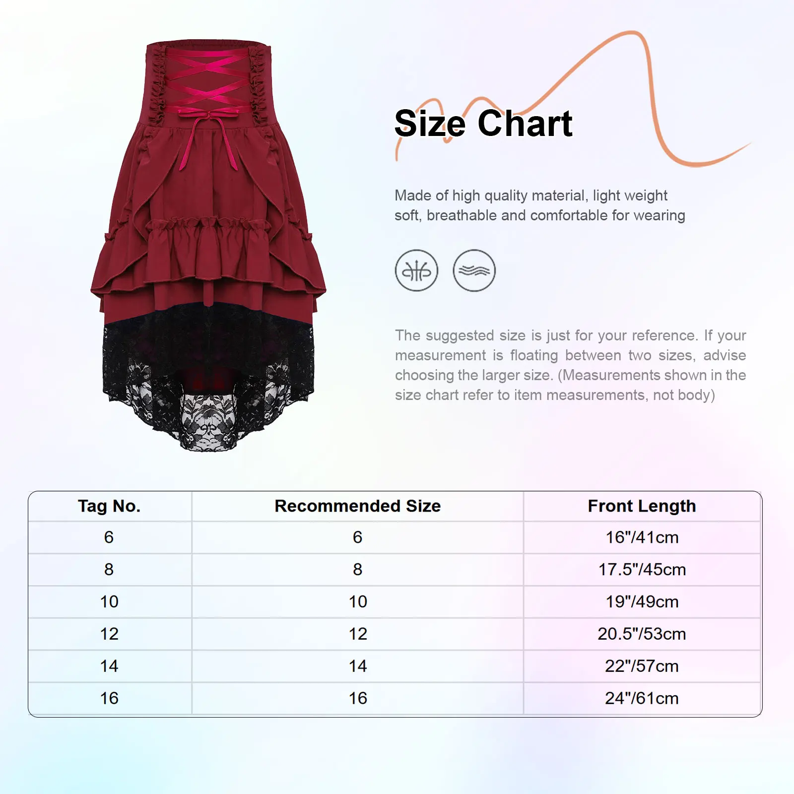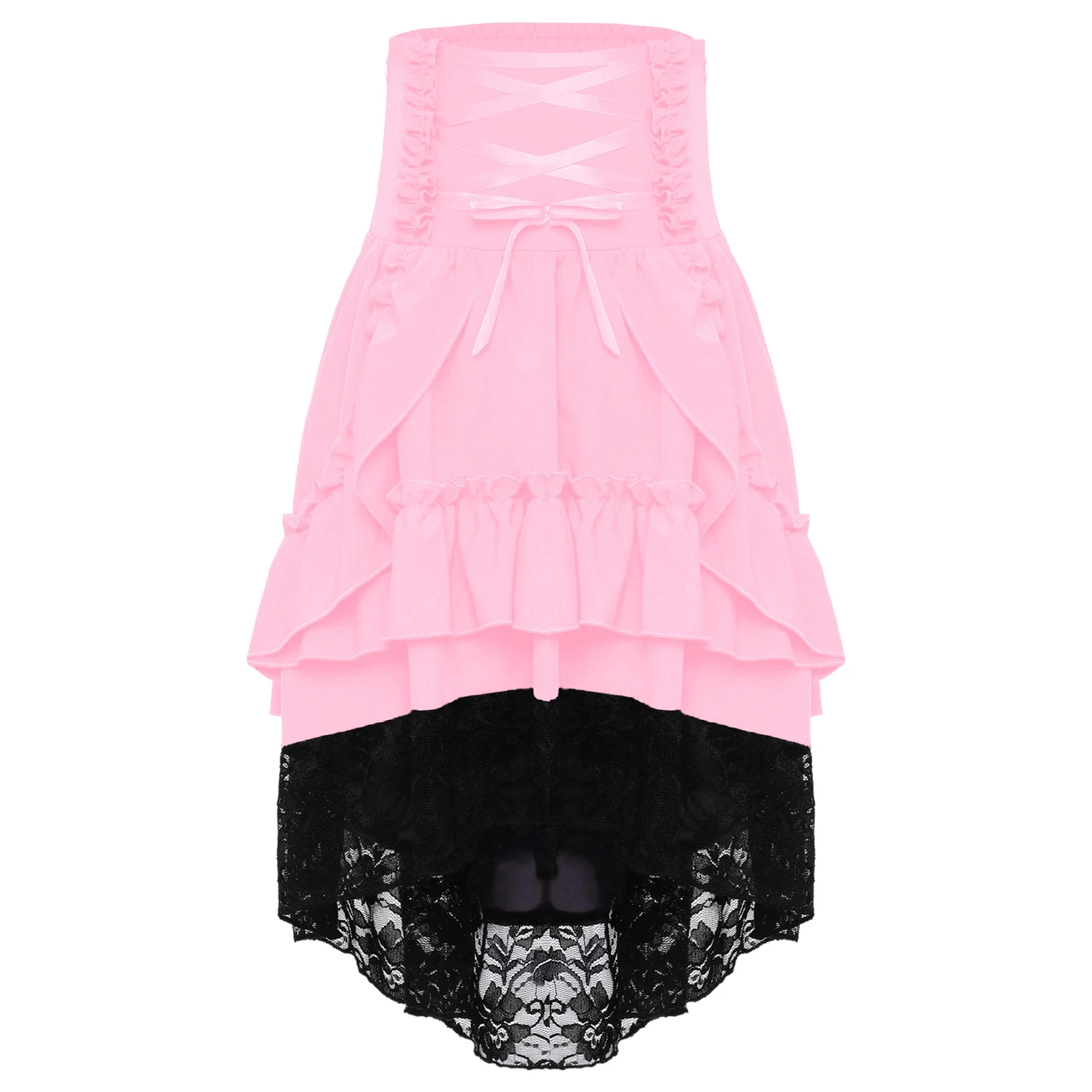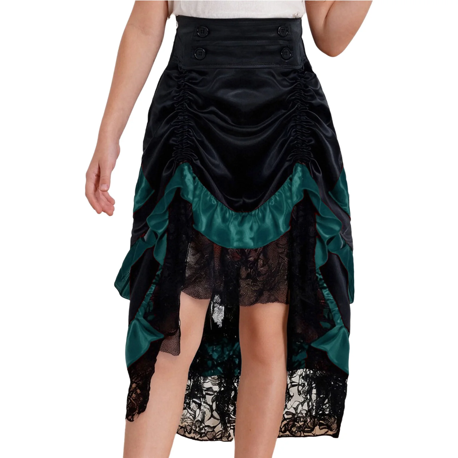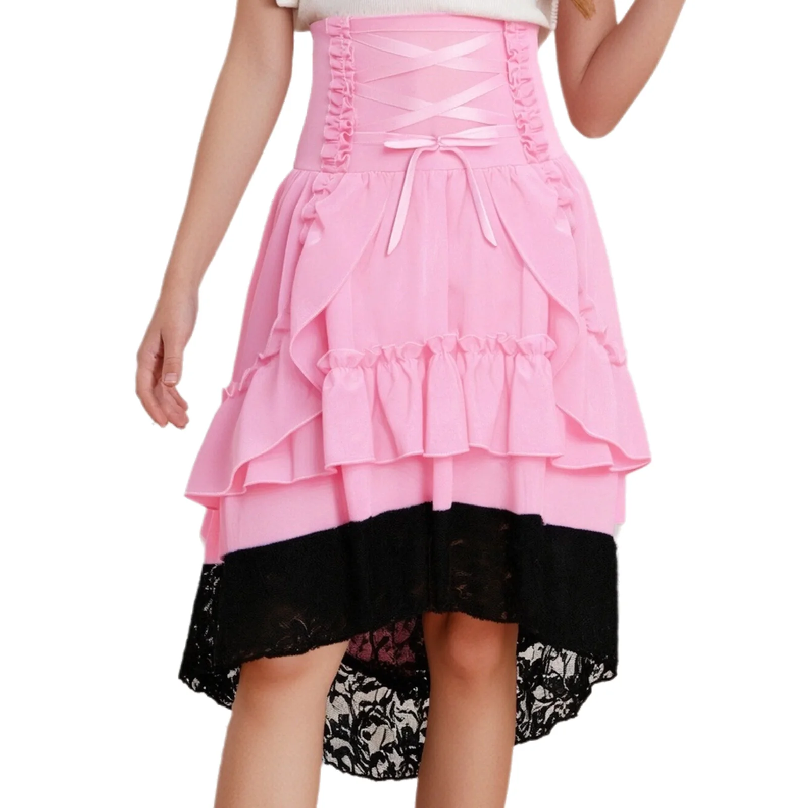 Girls Medieval Skirt Cosplay Costume Halloween Outfit Tiered Ruffle Skirt Ruched Flounce Lace Skirt Victorian Skirt