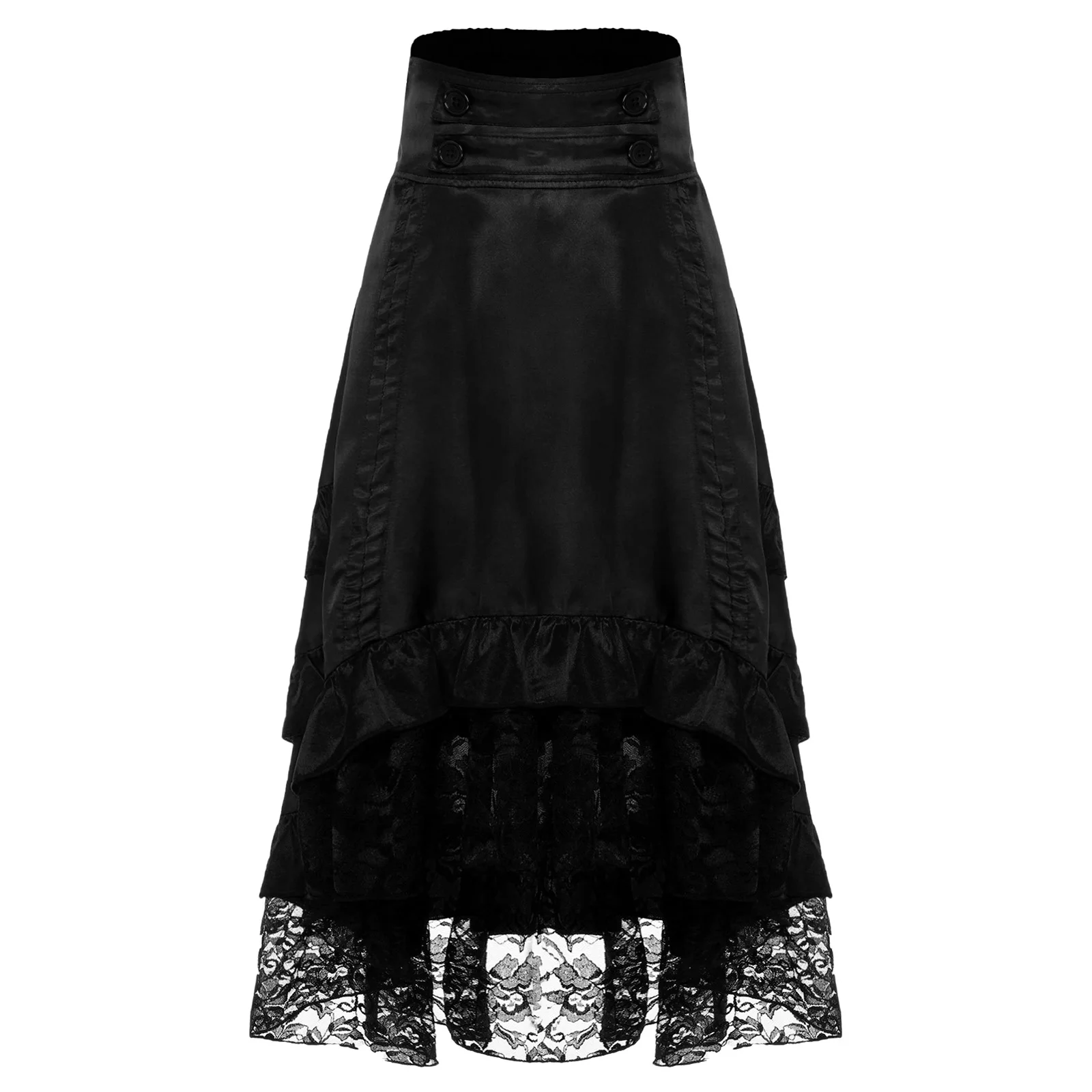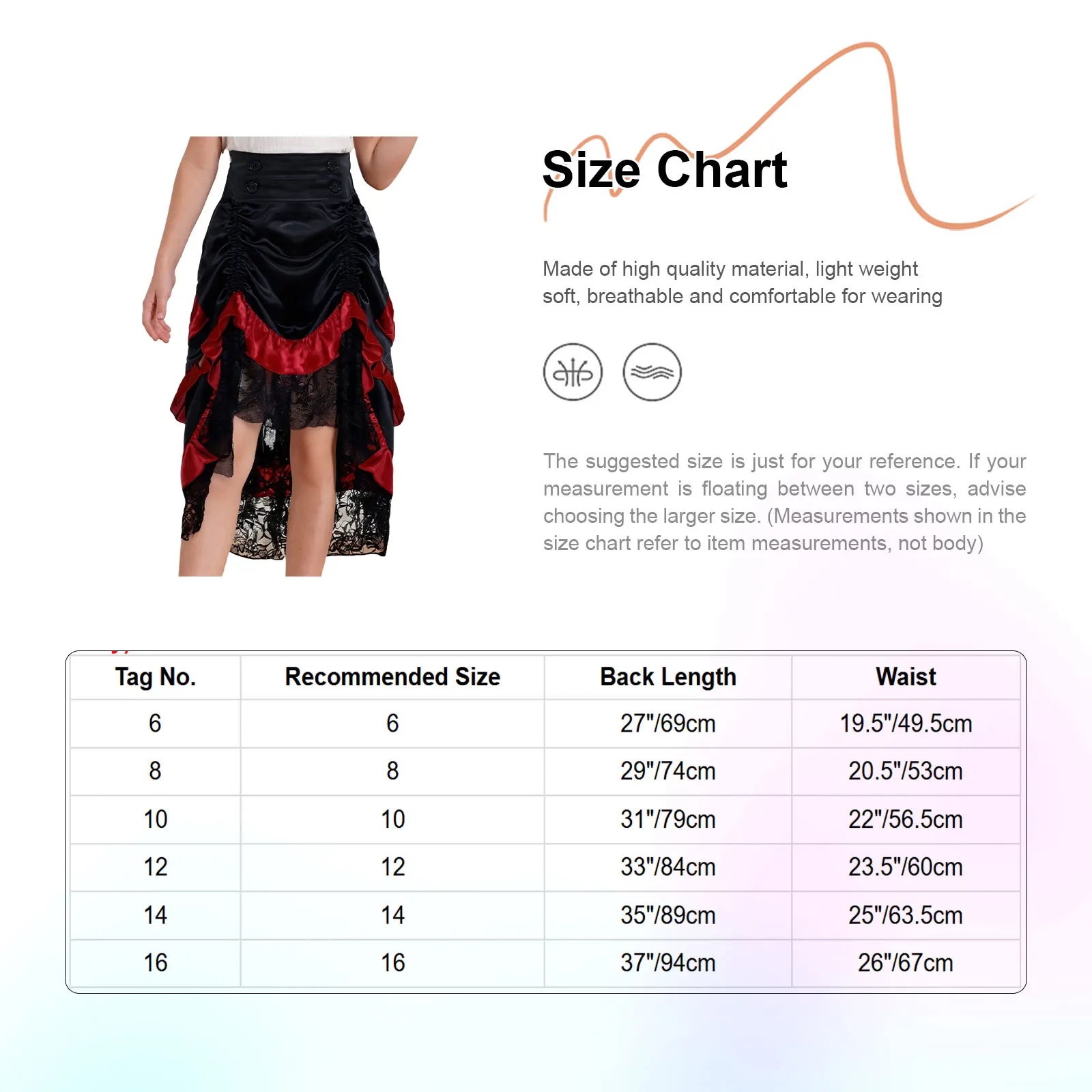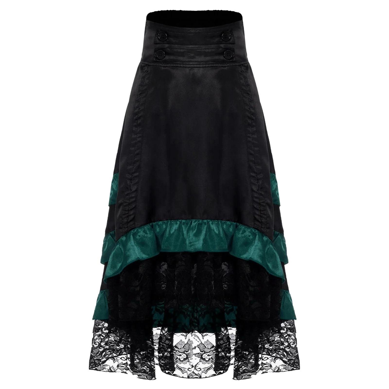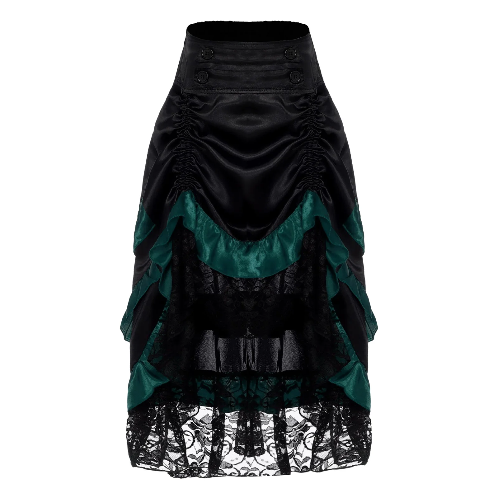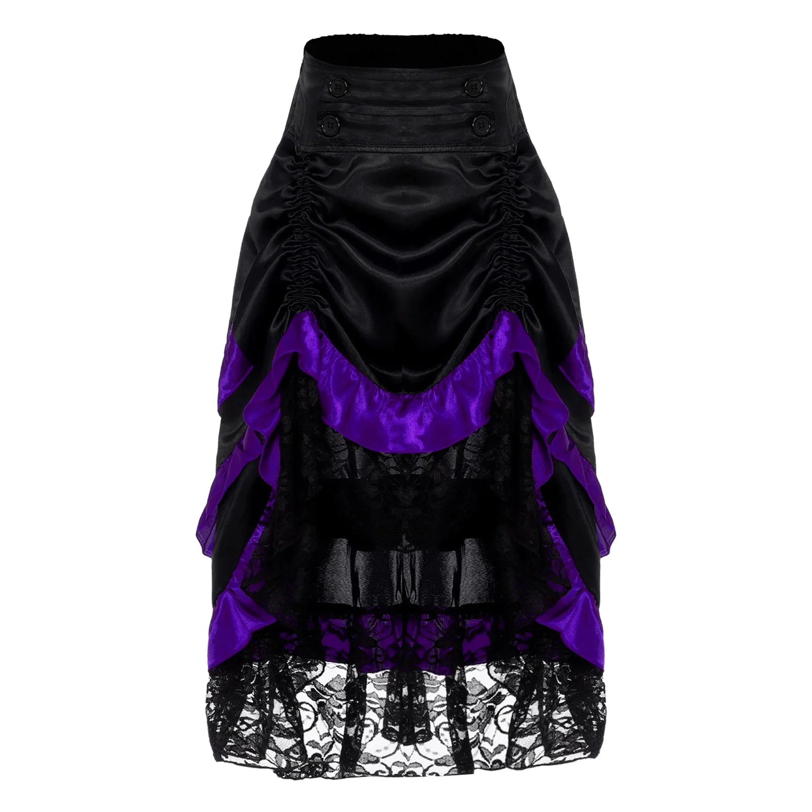 Girls Medieval Skirt Cosplay Costume Halloween Outfit Tiered Ruffle Skirt Ruched Flounce Lace Skirt Victorian Skirt