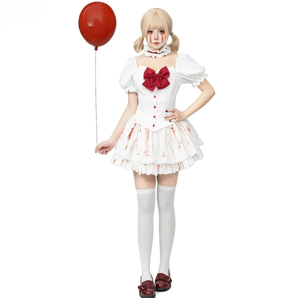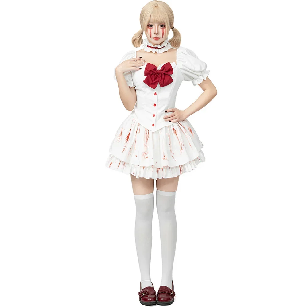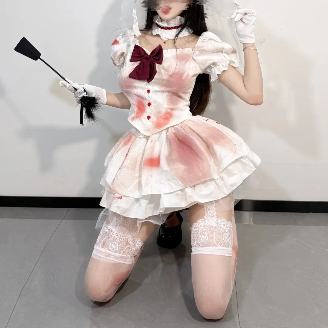 Halloween DIY Ghost Doll Dress Cosplay Costume Student Bloodstain Uniform Gothic Bloody Doll Performance Lolita Maid Outfits