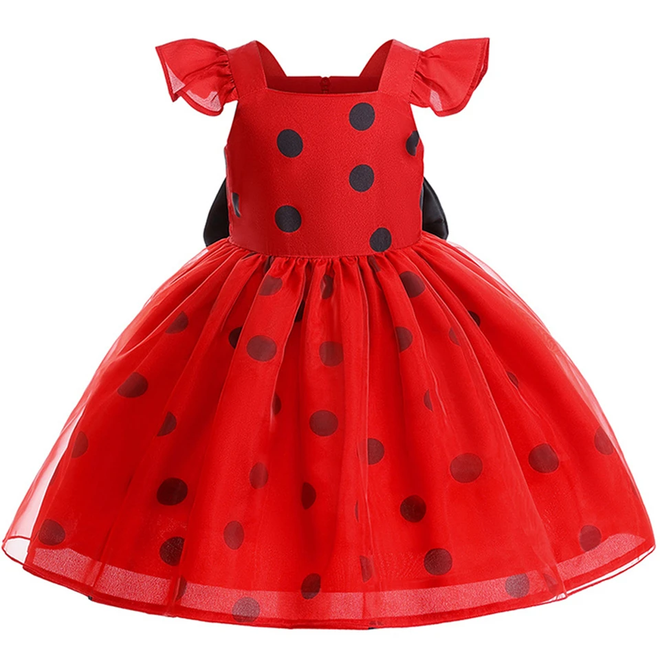 Halloween Party Girls Ladybug Costume Festive Toddler Bow Red Polka Dot Tulle Tutu Dress Ladybug Wings Mask Gloves Girl Outfits