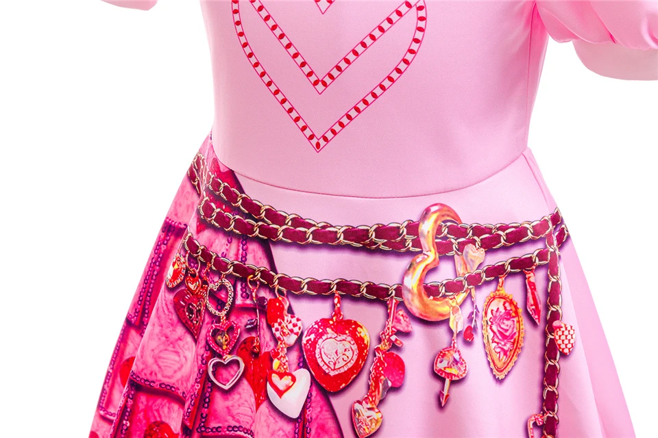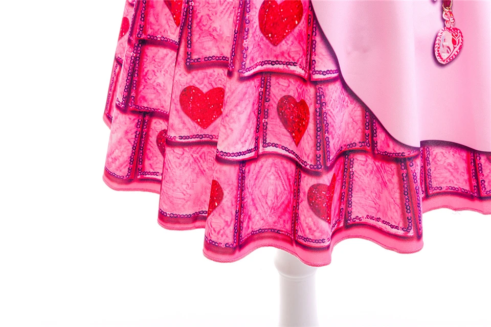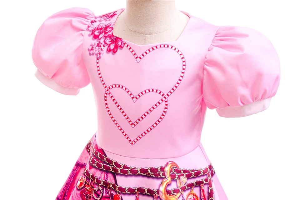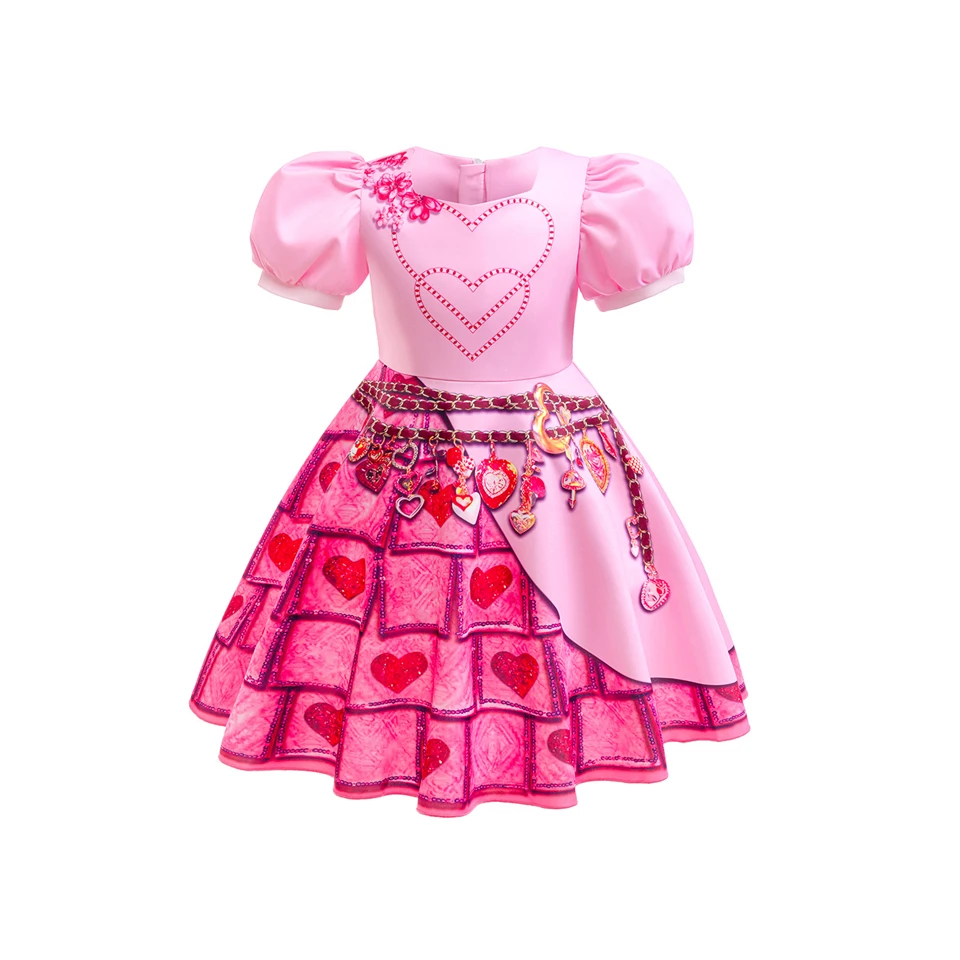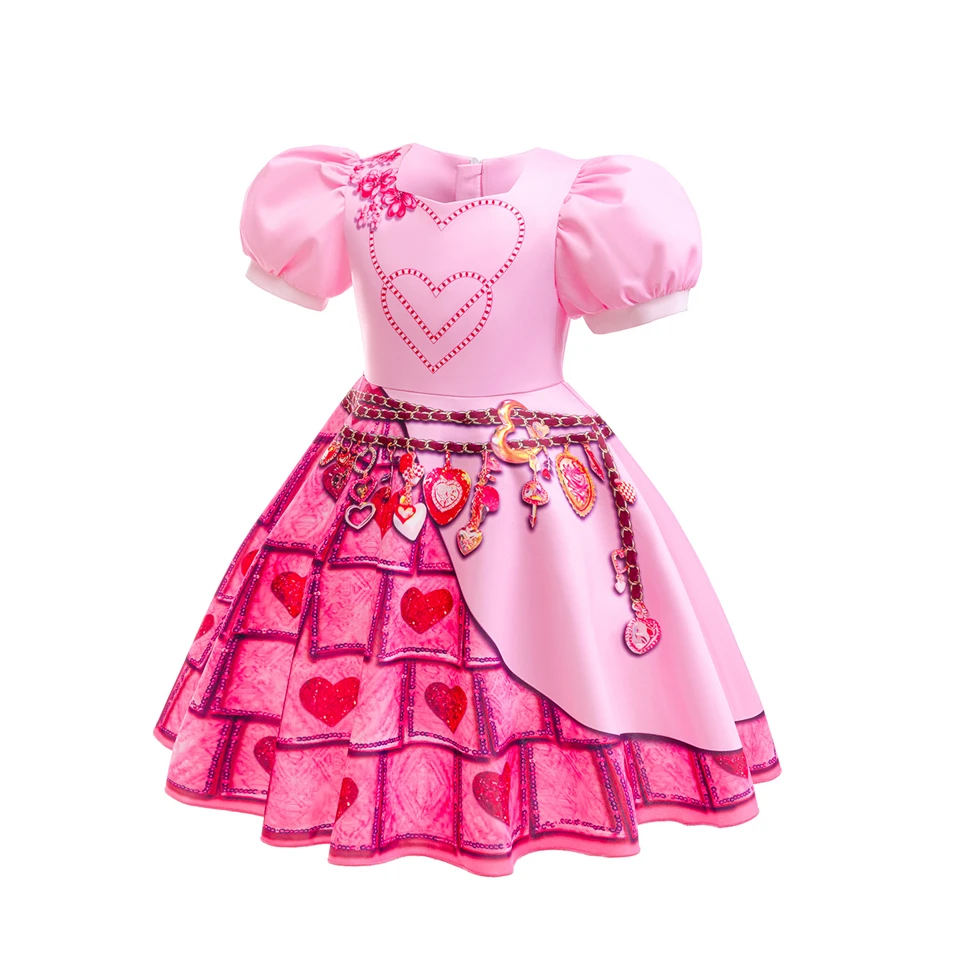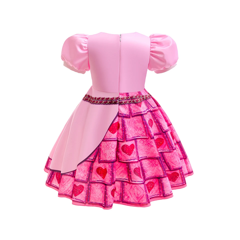 Halloween Party Queen of the Hearts Girls Bridget Cosplay Costume Descendants 4 the Rise of Red Pink Puff Sleeve Princess Dress