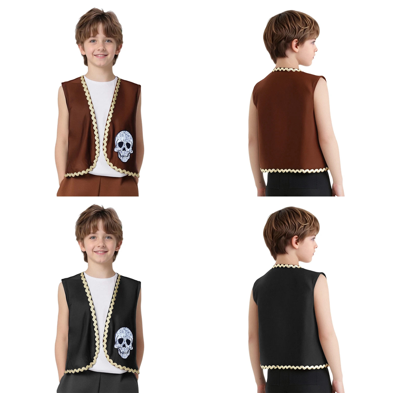 Kids Boys Girls Pirate Medieval Waistcoat Captain Cosplay Costume Open-Front Vest Pirate Fairy Tale Tank Tops Halloween Outfits