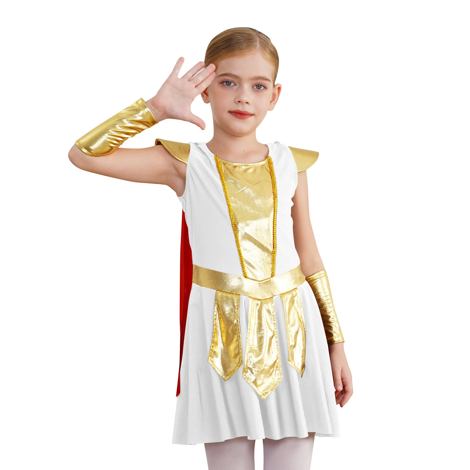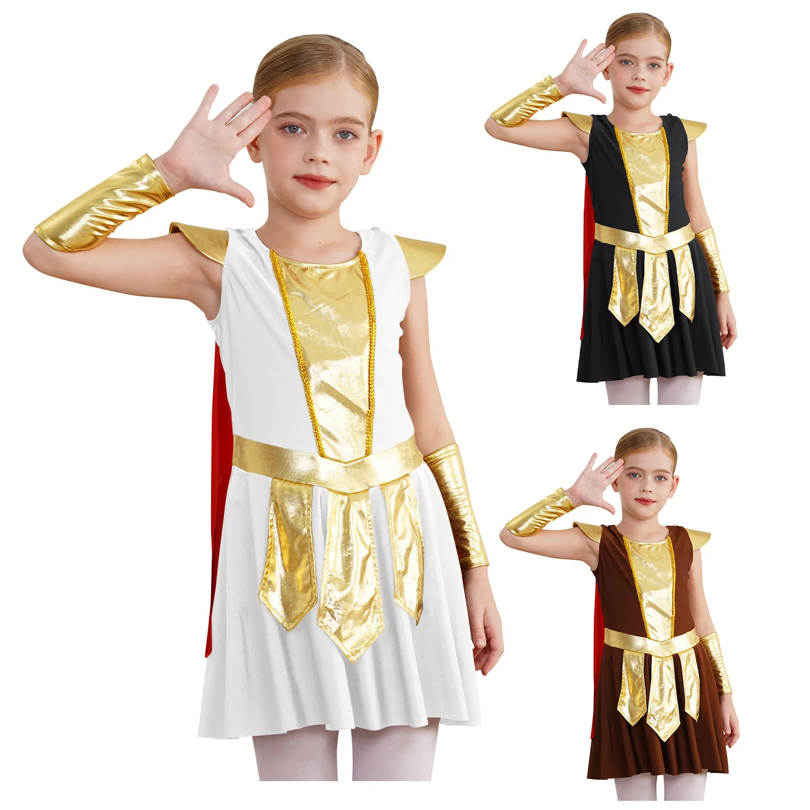 Kids Girl Ancient Roman Warrior Cosplay Outfits Medieval Soldier Gladiator Historical Dress Role Play Halloween Costume
